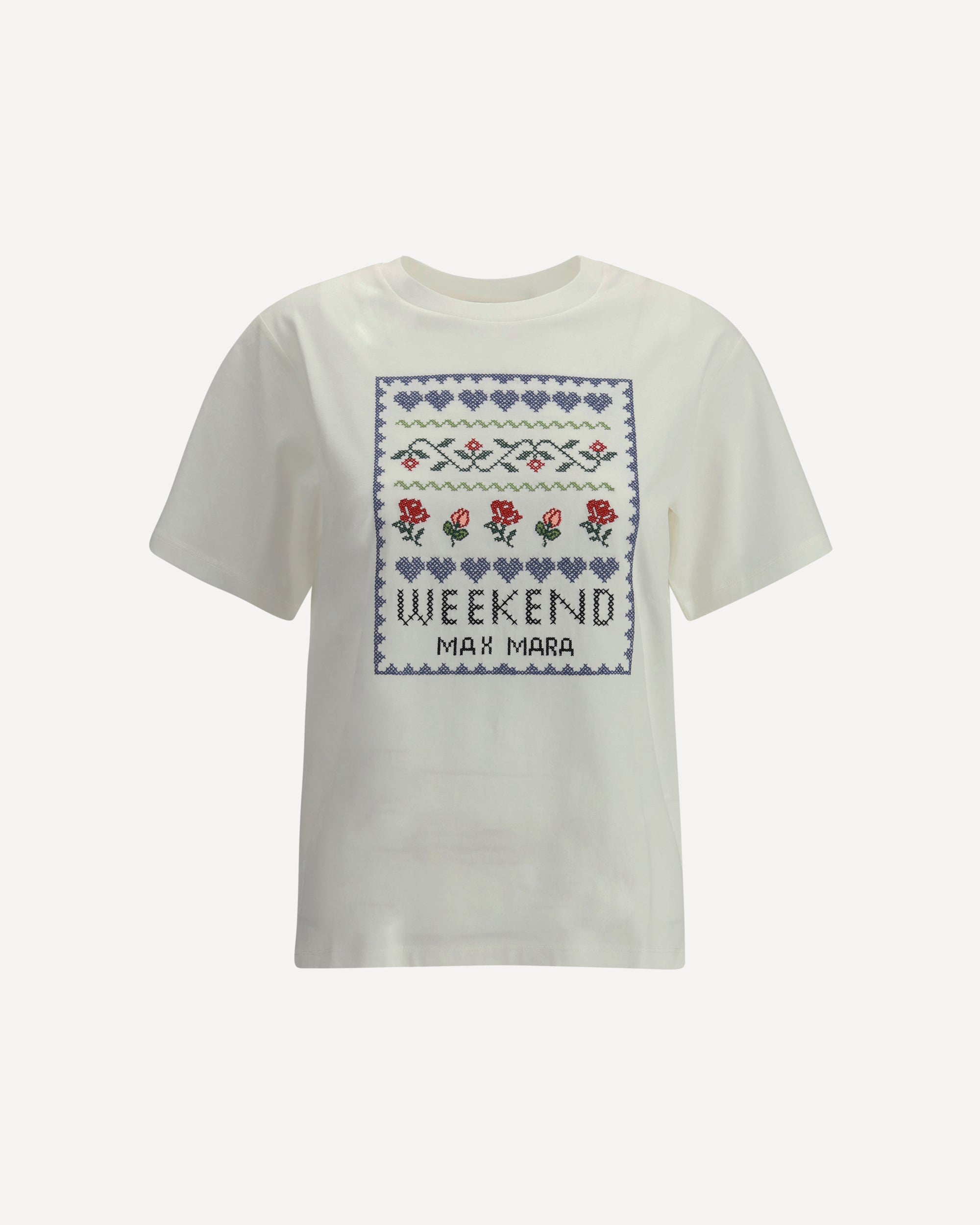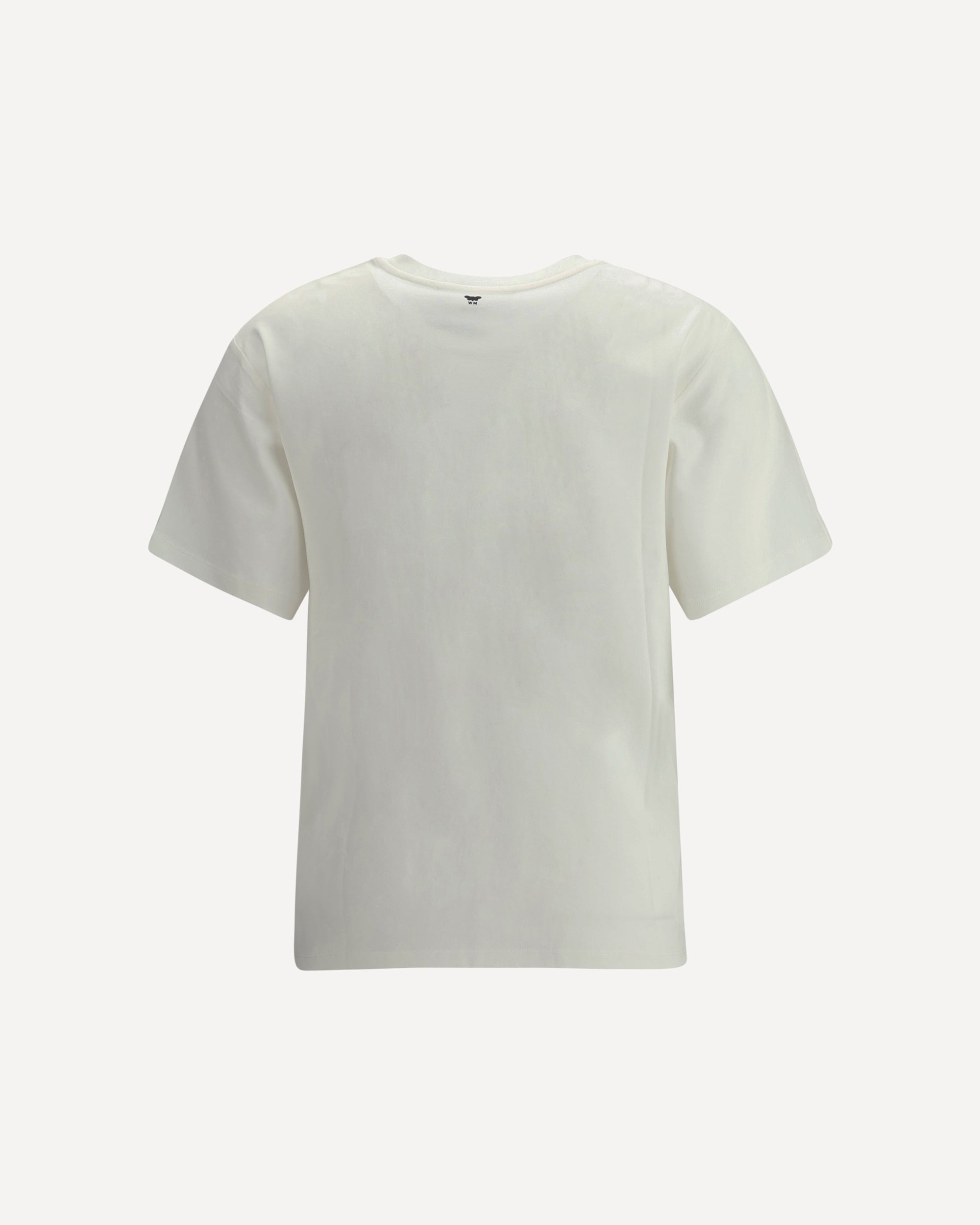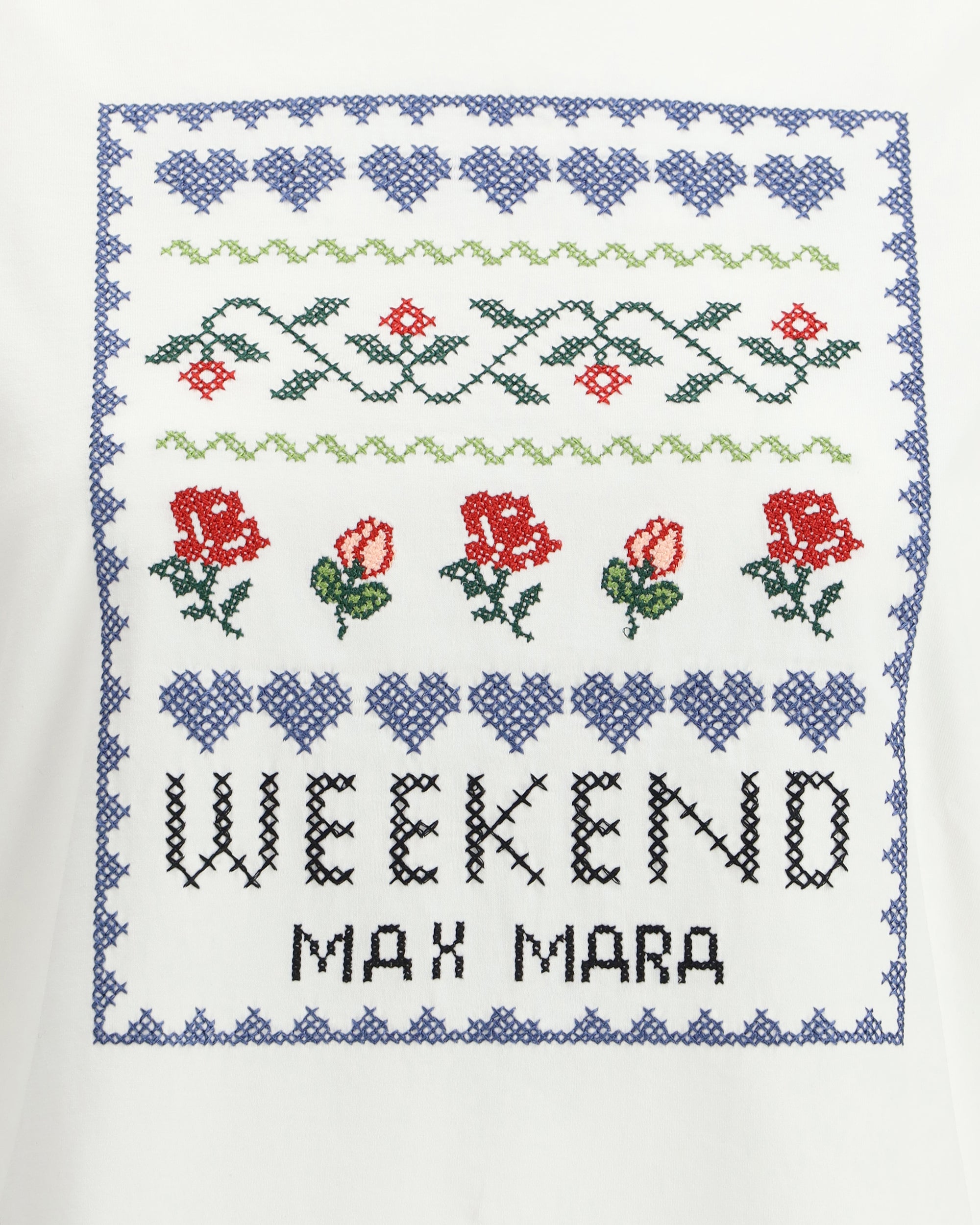 Max Mara Weekend's Cabina T-shirt is a casual yet sophisticated piece, perfect for a contemporary chic look. The ribbed crew neck ensures a comfortable fit, while the reproduced "1983" sequin lettering on the front adds a light touch and distinctive detail to the design. The brand's iconic signature printed on the front completes the look with an accent of elegance.