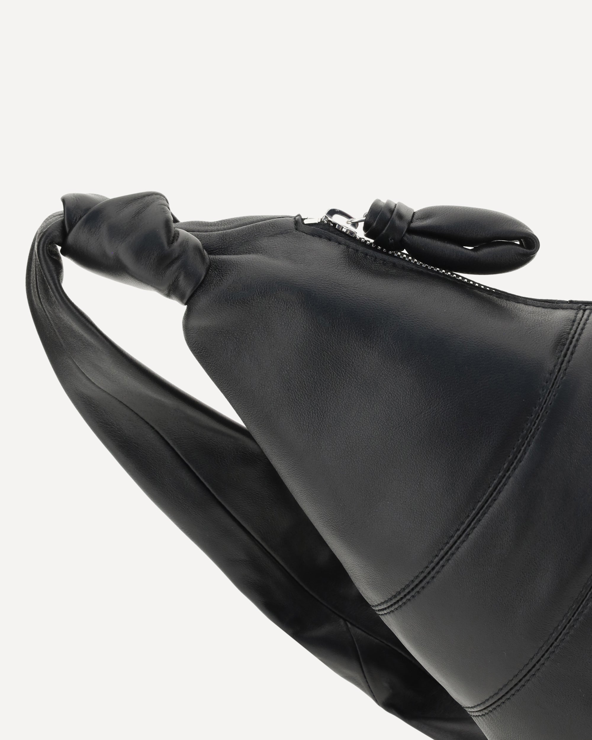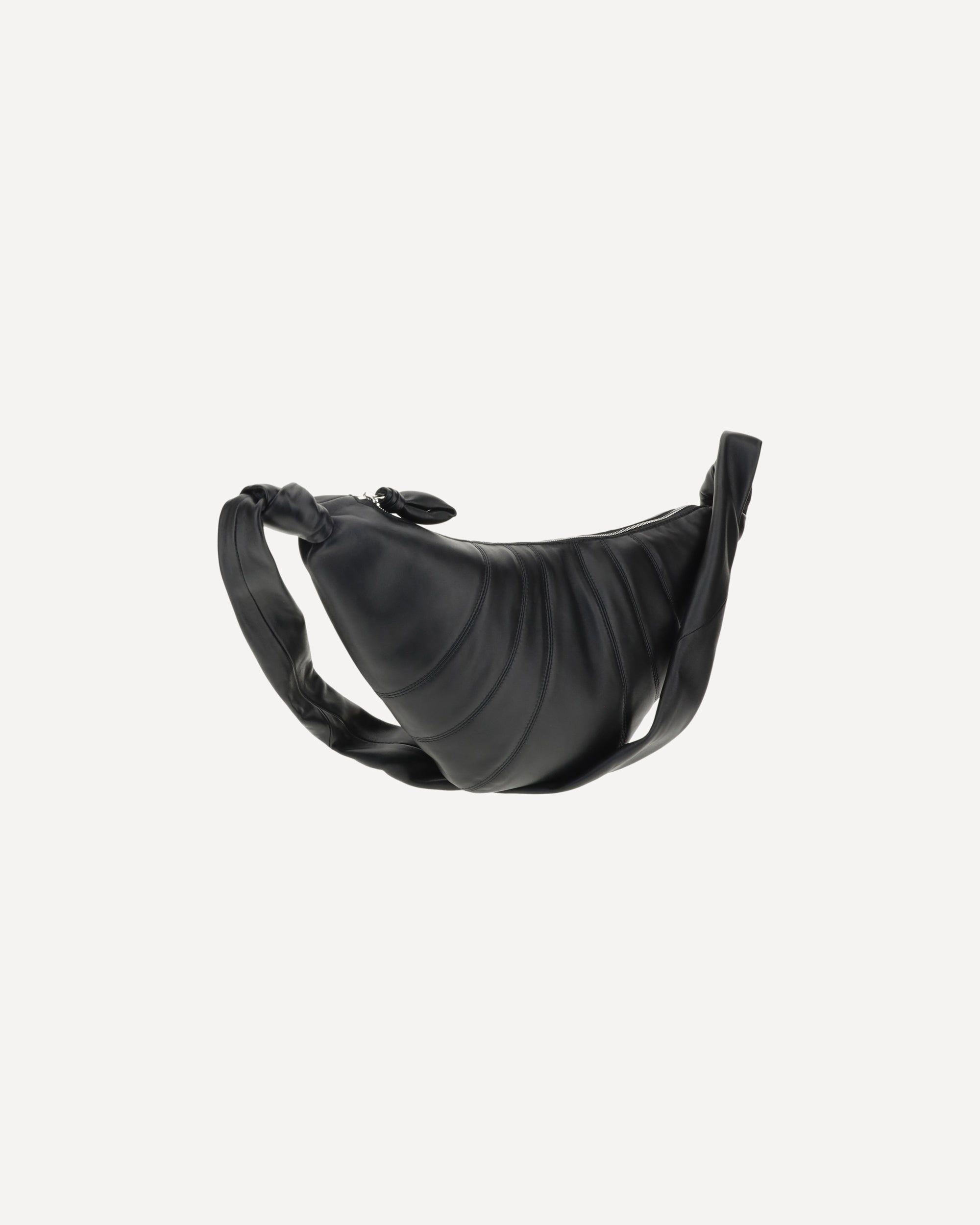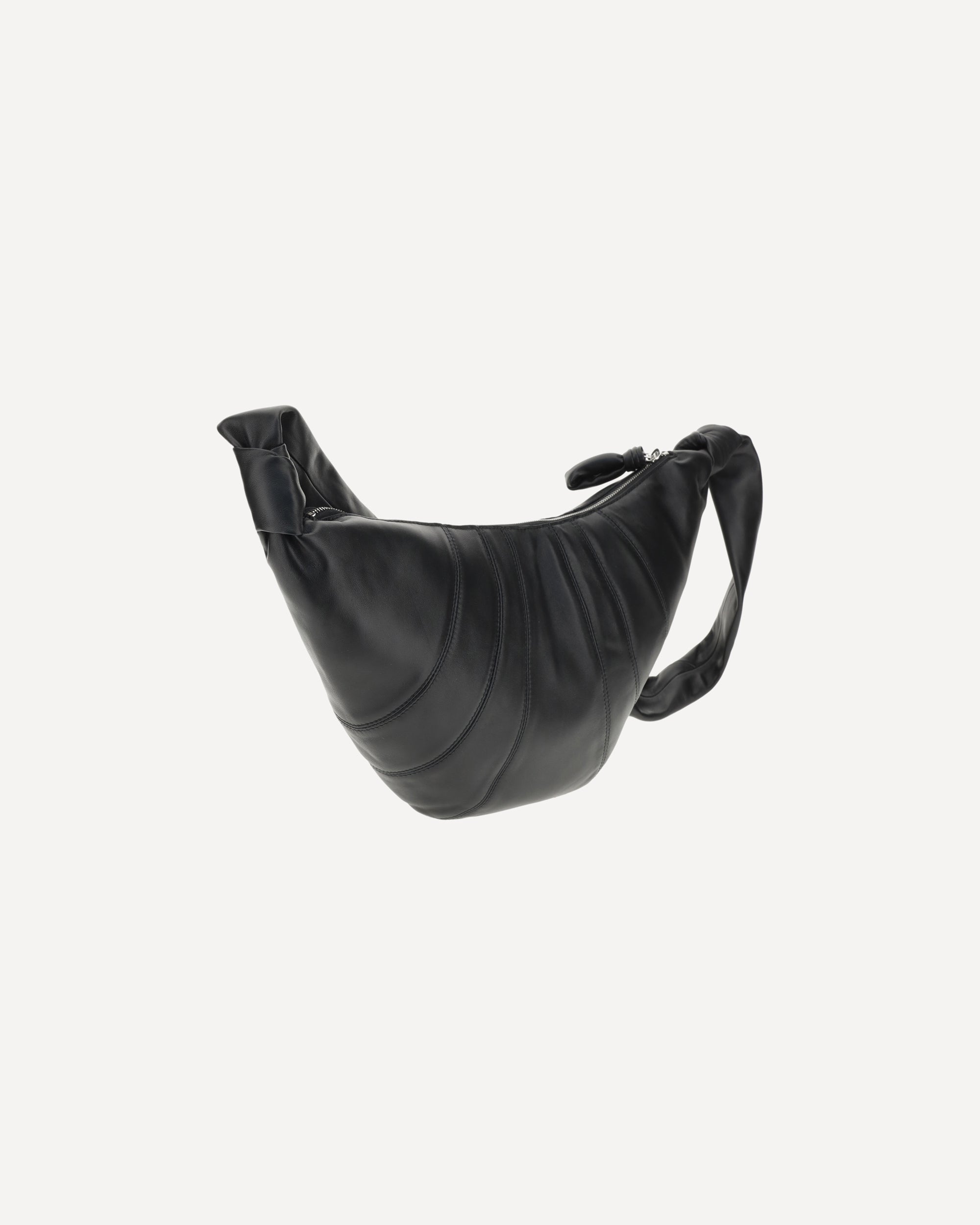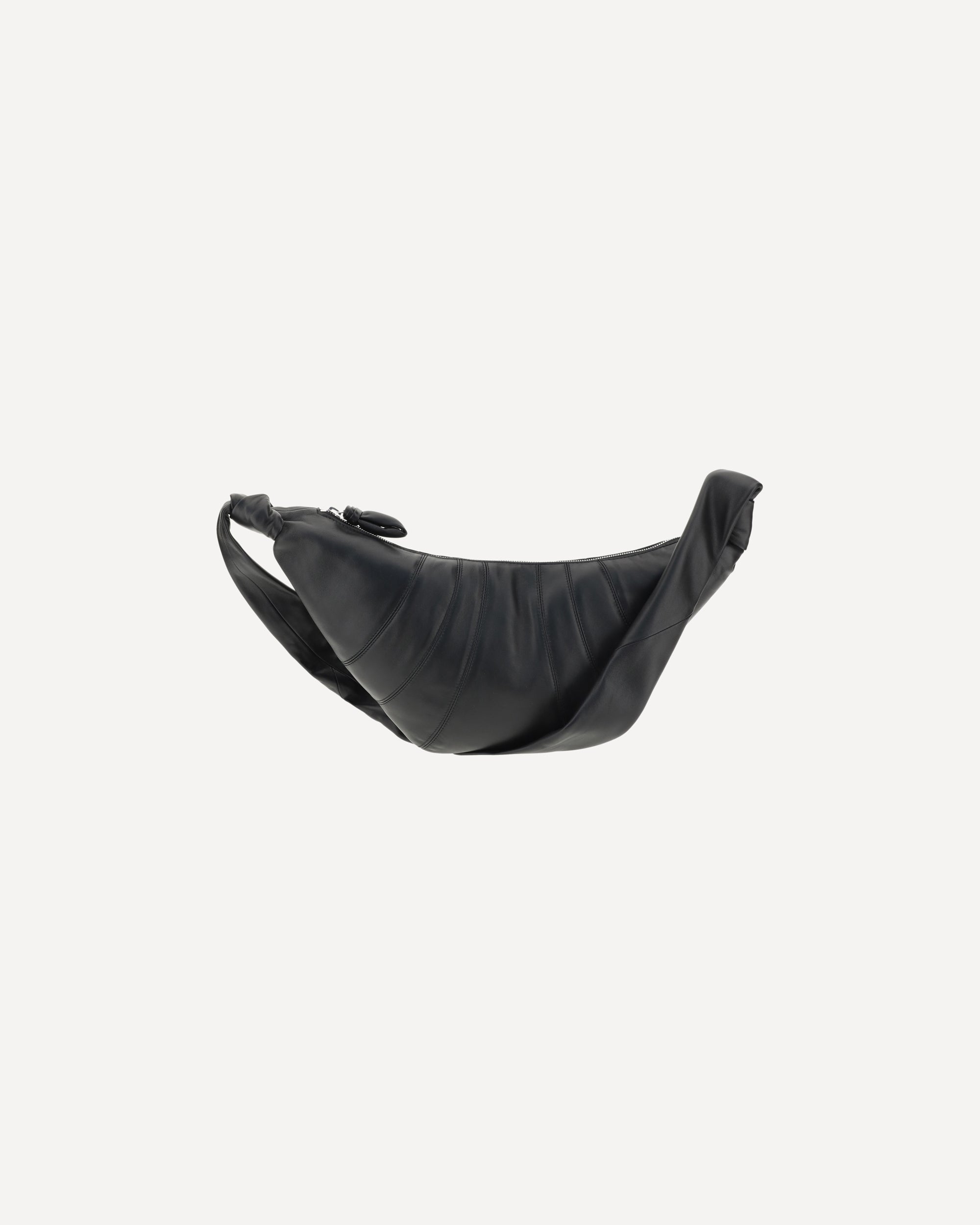 Lemaire's Croissant Medium Shoulder Bag combines functionality and elegance. Featuring a zippered top closure and an adjustable shoulder strap, it offers practicality and comfort. The single compartment with cotton lining provides ample space, while the interior logo applique and slip pocket add a touch of sophistication and organization. Perfect for a minimalist and sophisticated look.