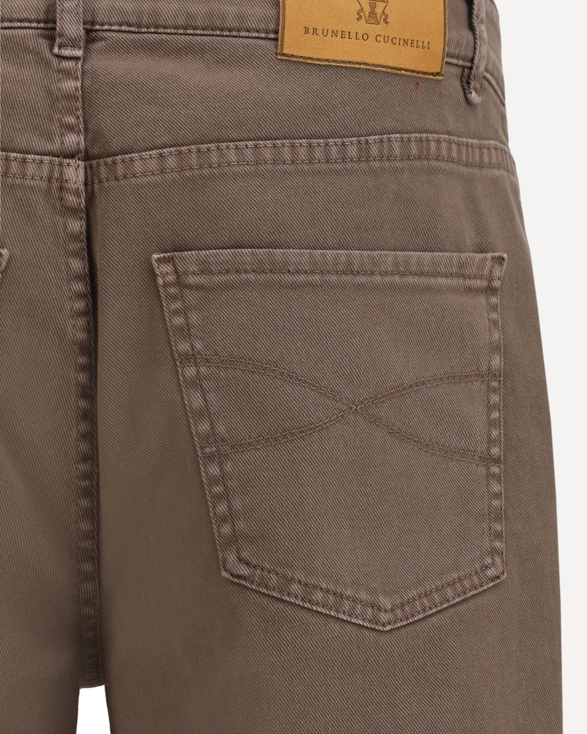 The cotton Jeans by Brunello Cucinelli are a timeless and versatile piece with a classic five-pocket design. The front button closure and belt loops at the waistband allow for a comfortable and adjustable fit. The distinctive detail is the iconic leather patch with the brand's signature press-stamped signature, applied to the back, which adds a touch of understated elegance. The embroidered logo on the front breast pocket and turn-up hem complete the design, giving it a refined, polished look.
