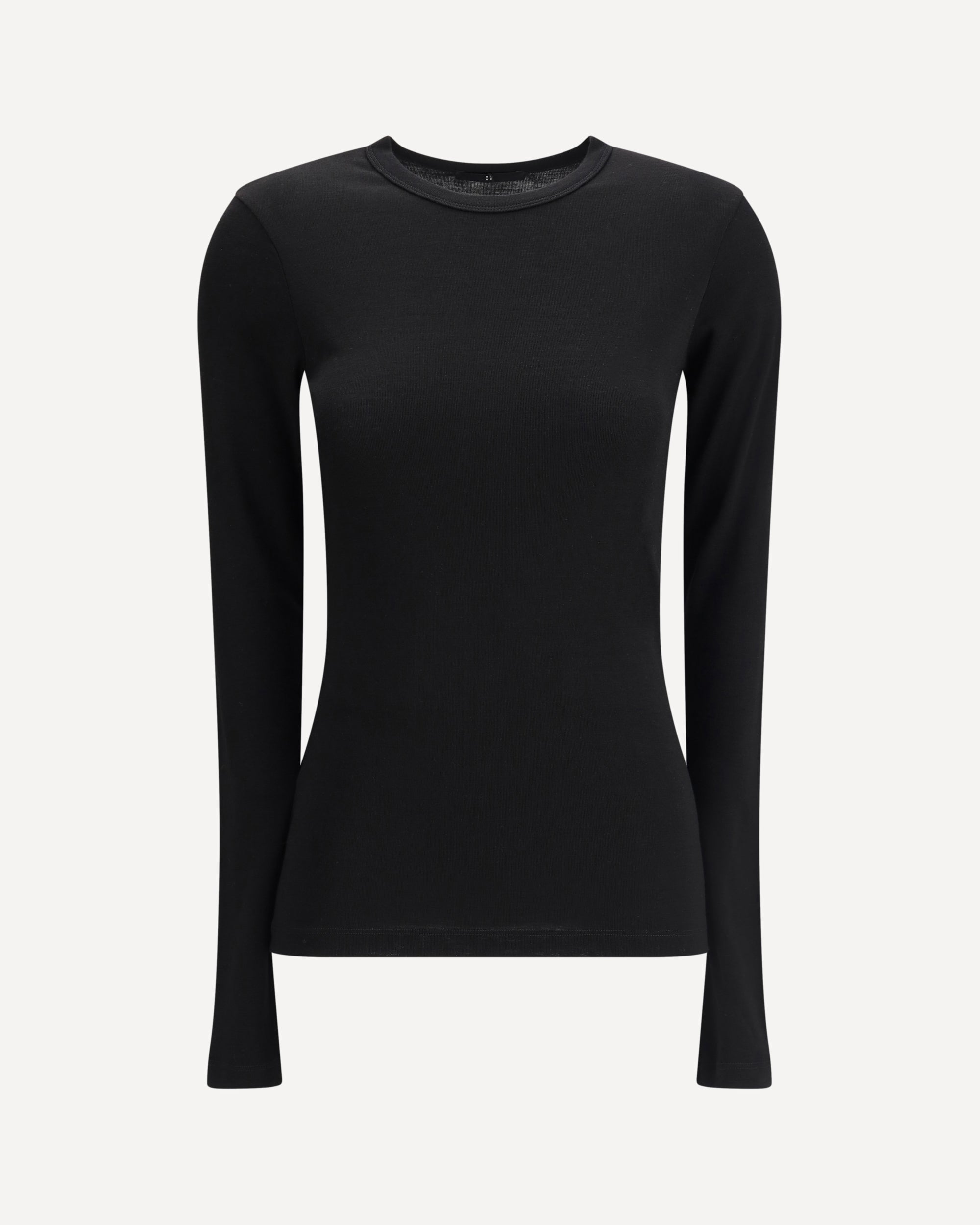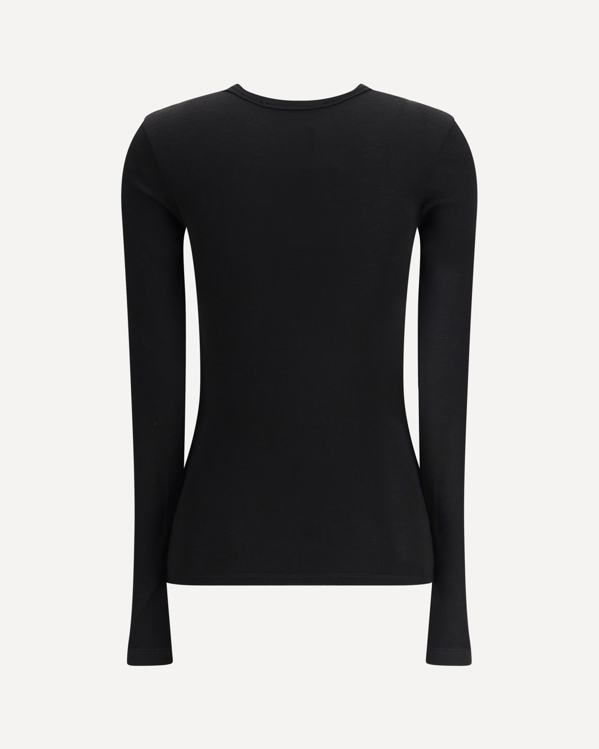 Rohe's Long Sleeve Top, made from fine merino wool, is an essential garment with a clean, refined design. The classic crew neck and minimalist silhouette make it a versatile wardrobe staple, perfect for wearing alone or as a layer under blazers and jackets. Comfort, quality and understatement in one silhouette.