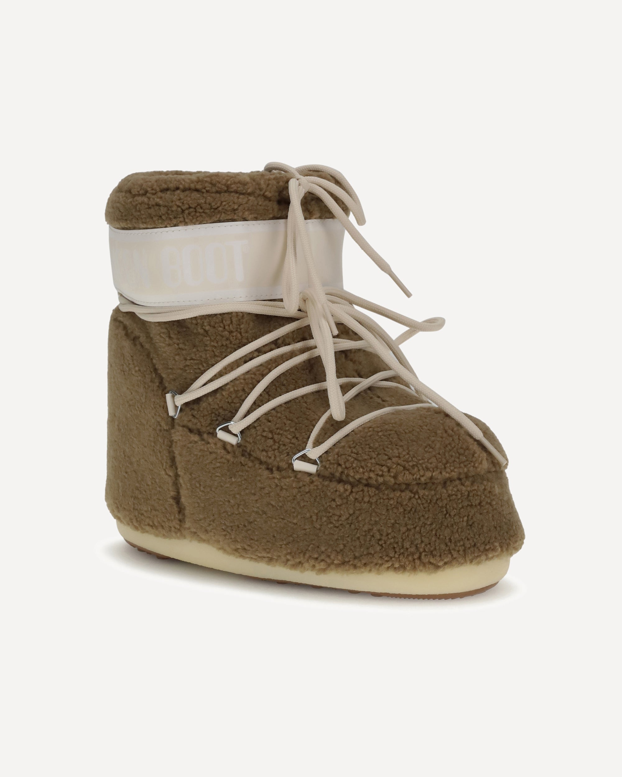 Low Icon Boots by Moon Boot revisit the iconic model in a lower version, wrapped in soft teddy fabric for unparalleled comfort. The padded interior, lightweight midsole and non-slip rubber tread ensure warmth and stability in any situation. Multicolor double lacing, adjustable drawstring, logo details and silver metal trim complete the design. A genderless, ambidextrous model with unmistakable style.