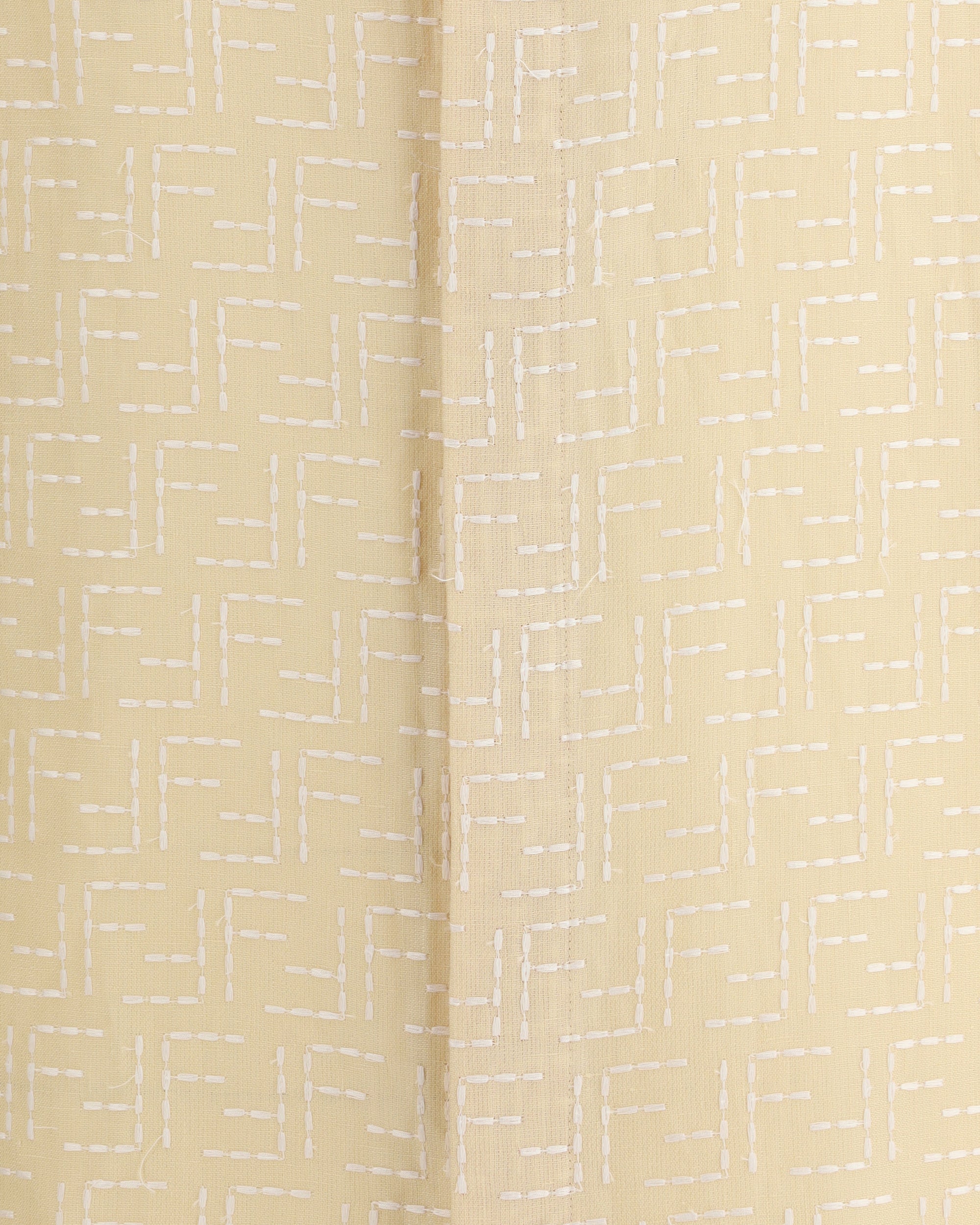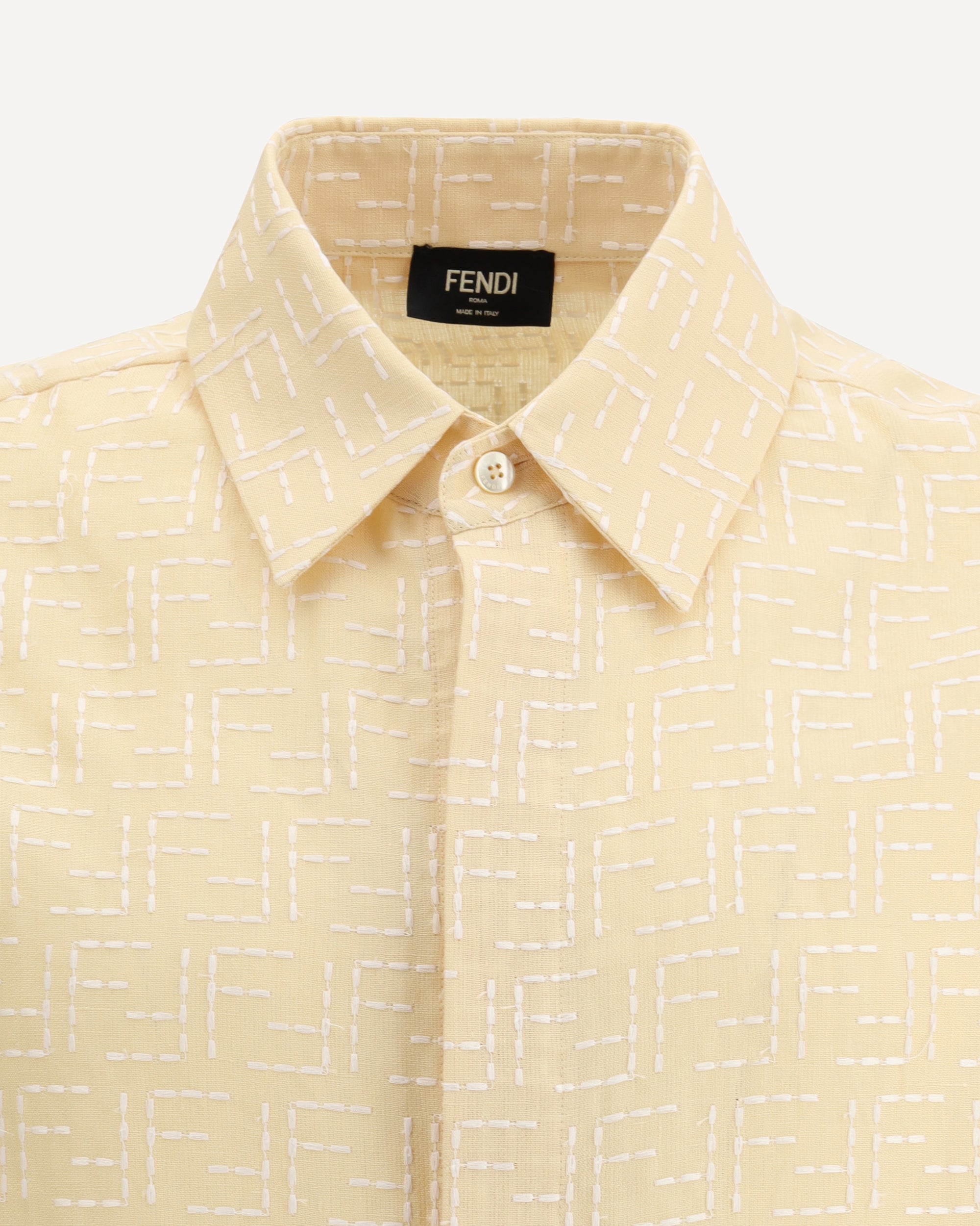 Fendi's linen Shirt is an elegant and refined garment perfect for the warm season. The short-sleeved design and classic collar lend a classic touch, while the front closure with hidden buttons adds an element of discretion and modernity. The two side slits ensure comfort and freedom of movement, while the iconic FF logo embroidered tone-on-tone on the linen fabric expresses Fendi's distinctive elegance without being too obvious.