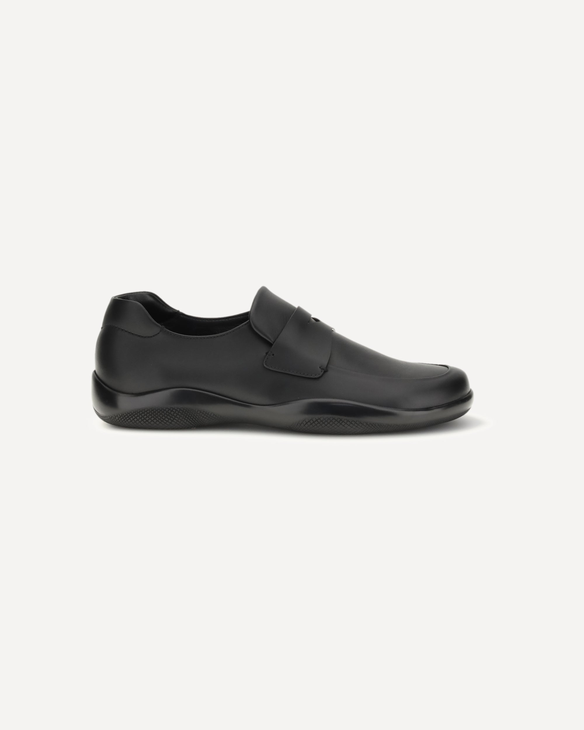 The Toblach leather Loafers reinterpret the classic moccasin by merging traditional details with the dynamic attitude of a sneaker. Crafted in smooth leather with an inverted apron and a refined leather band, they are completed by a flexible rubber sole with a textured tread that enhances grip and adds a contemporary edge to the design. The result is a hybrid shoe that combines timeless elegance with modern functionality.