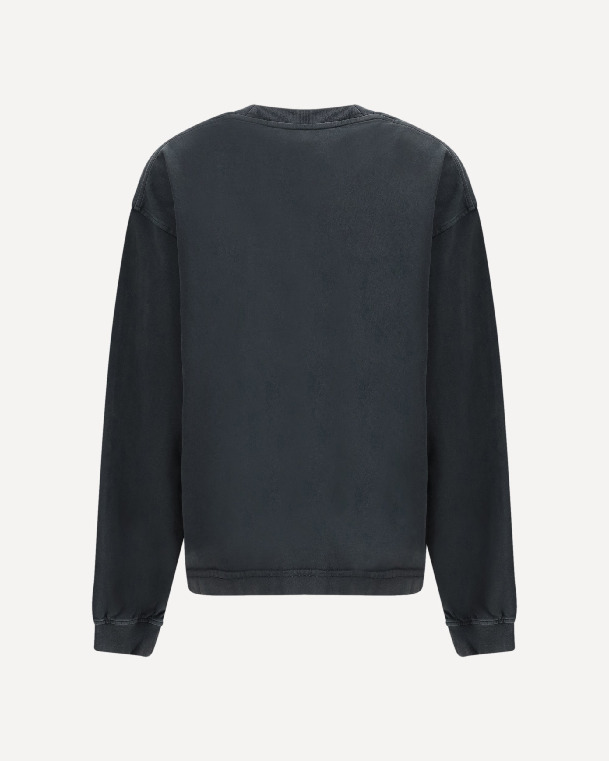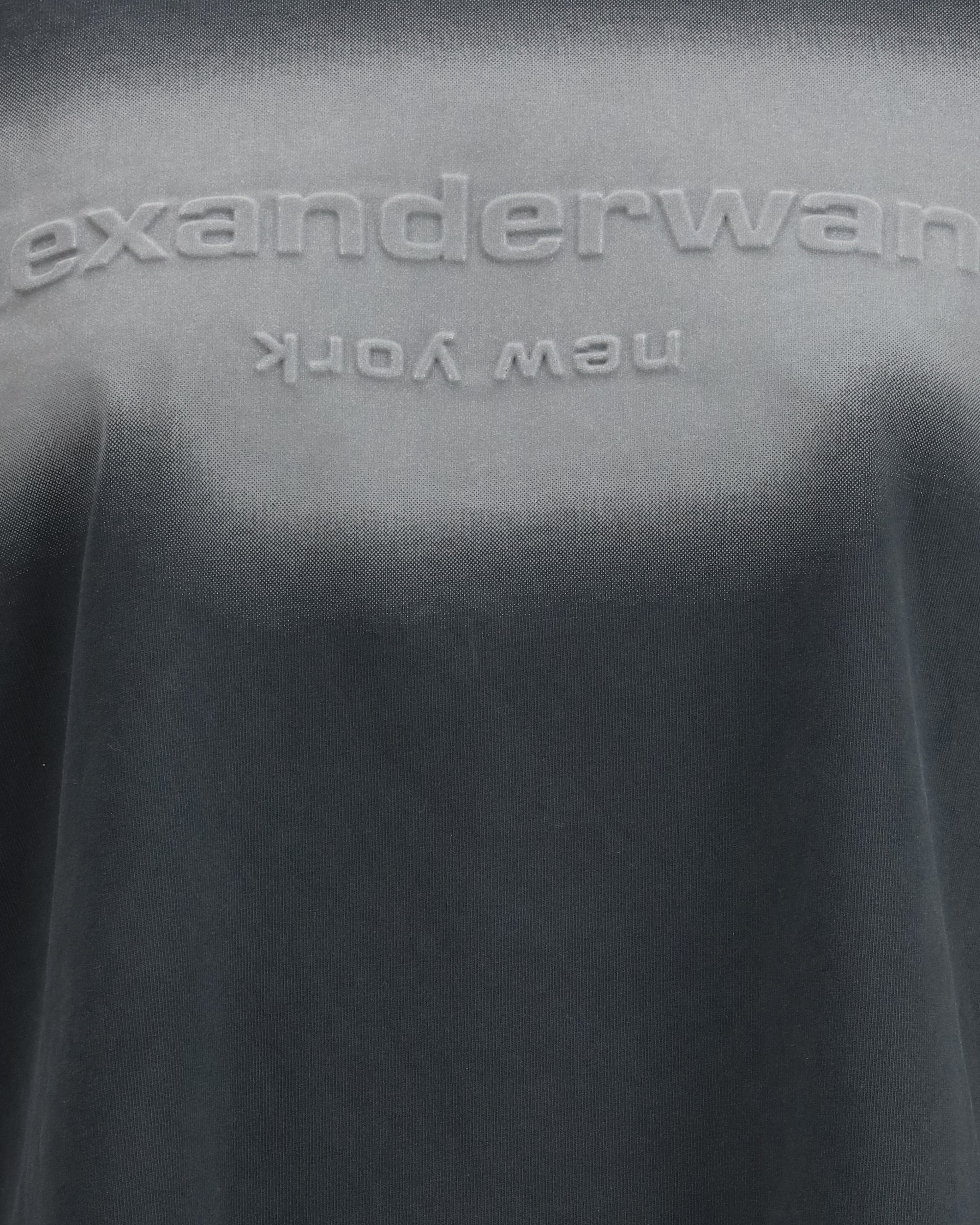 The Reflective Halo Print Logo long-sleeve T-shirt by Alexander Wang is crafted from washed cotton jersey in a shrunken silhouette for a sleek, modern fit. Designed with a ribbed crewneck and an embossed logo framed by a reflective halo print at the chest, it offers a subtle statement look. Finished with a straight hem, this piece works perfectly worn solo or layered for extra dimension.