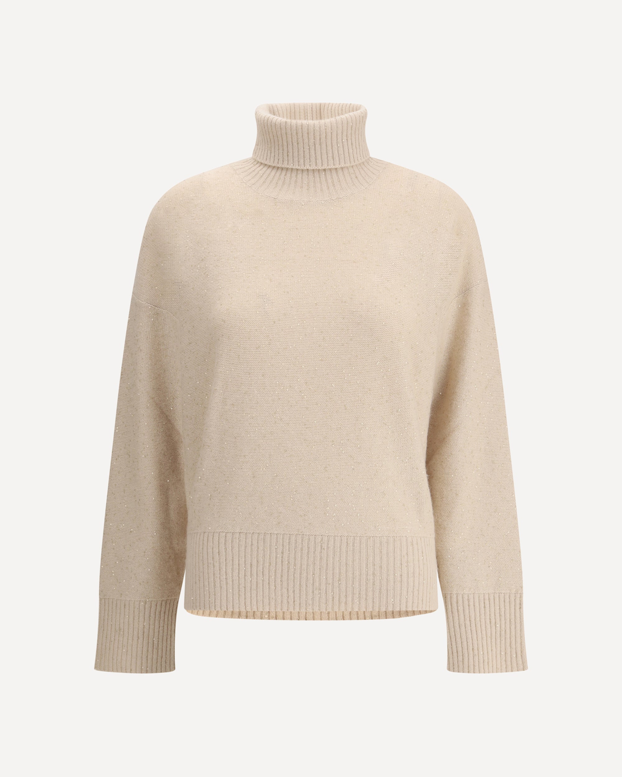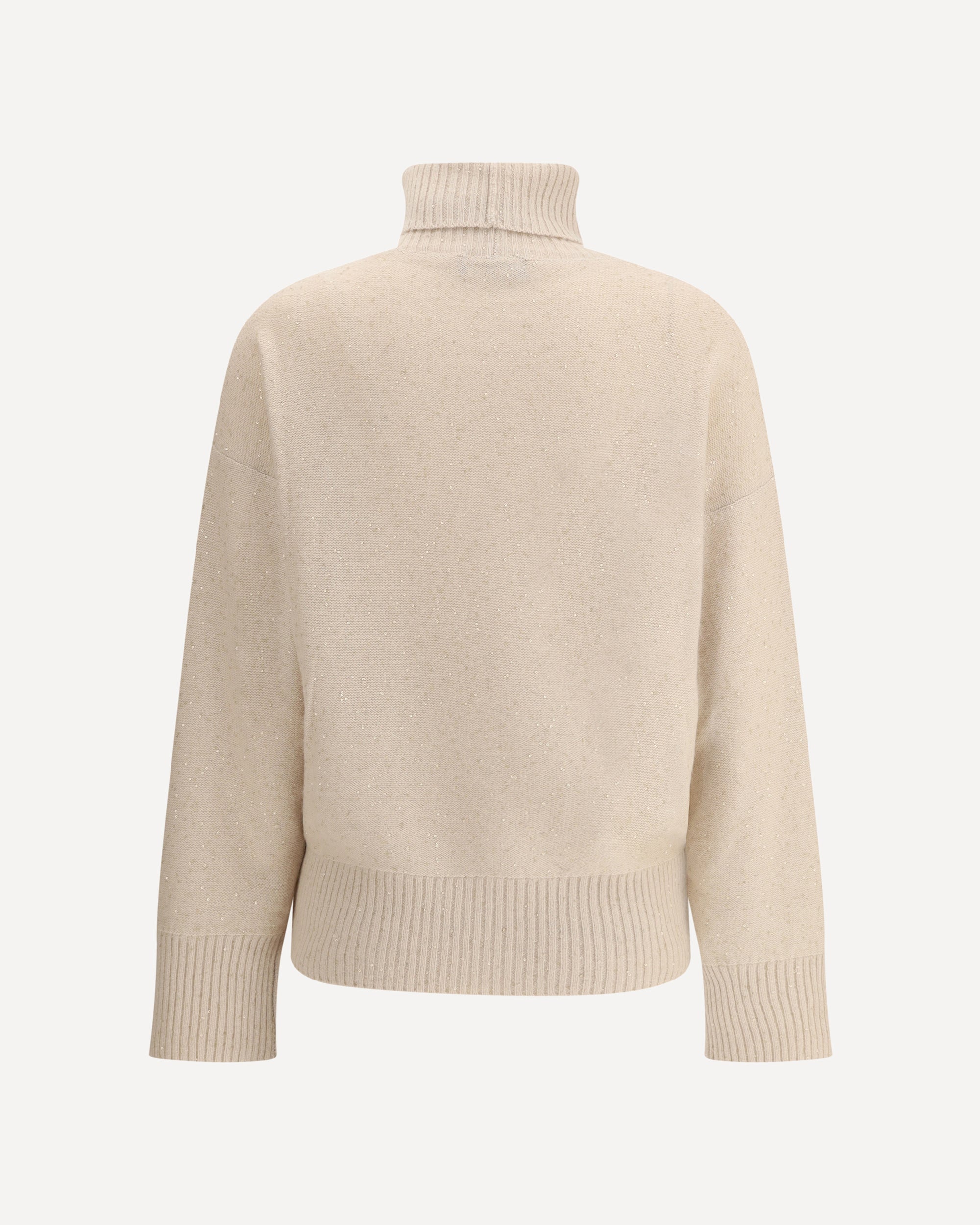The Wool and Silk Sweater with sequins by Fabiana Filippi embodies timeless elegance through a refined and essential design. Crafted from a fine blend of wool and silk, it features a slim fit that gracefully follows the silhouette, while delicate sequins add a subtle touch of light and sophistication. A versatile and precious piece, entirely made in Italy through sustainable processes.