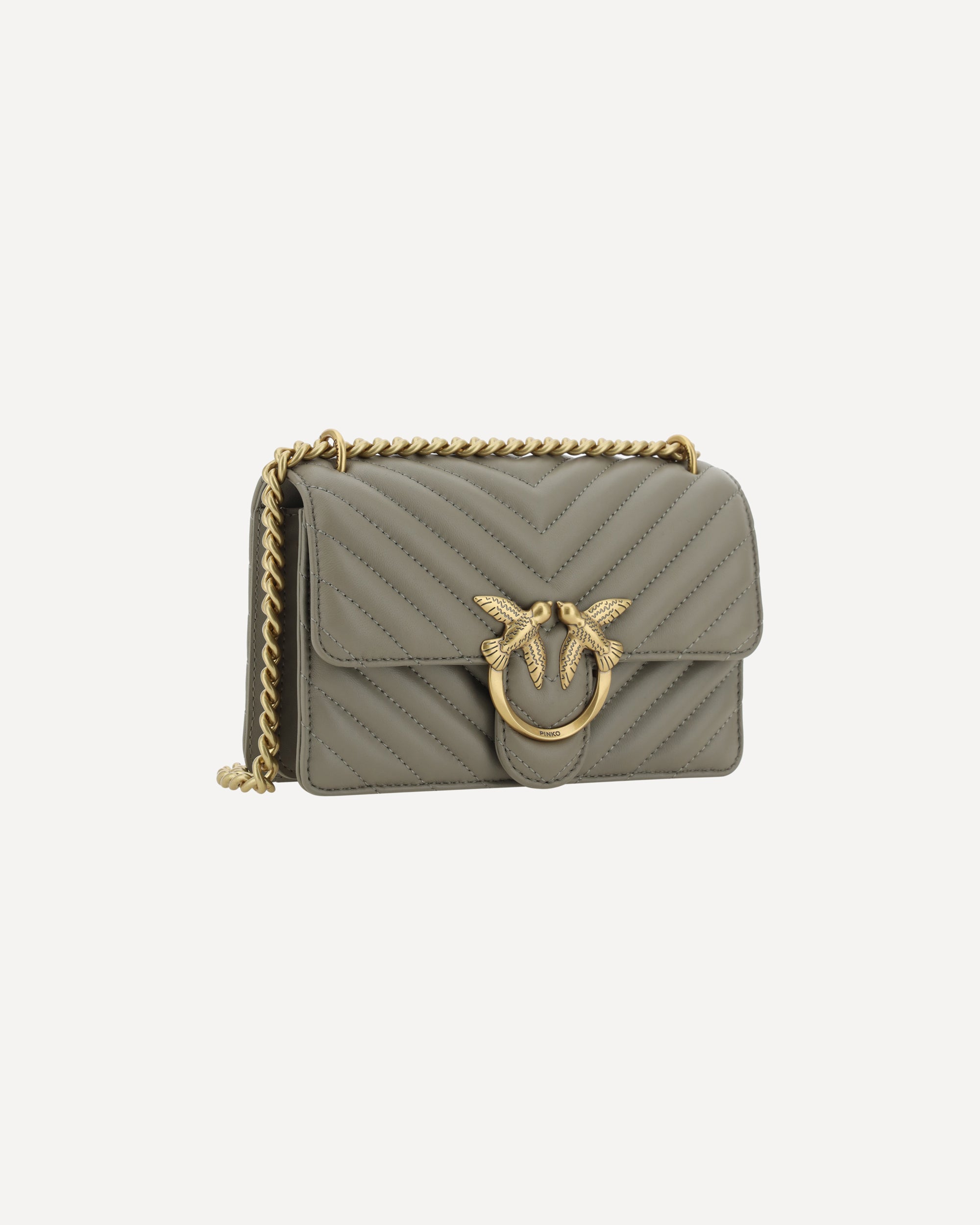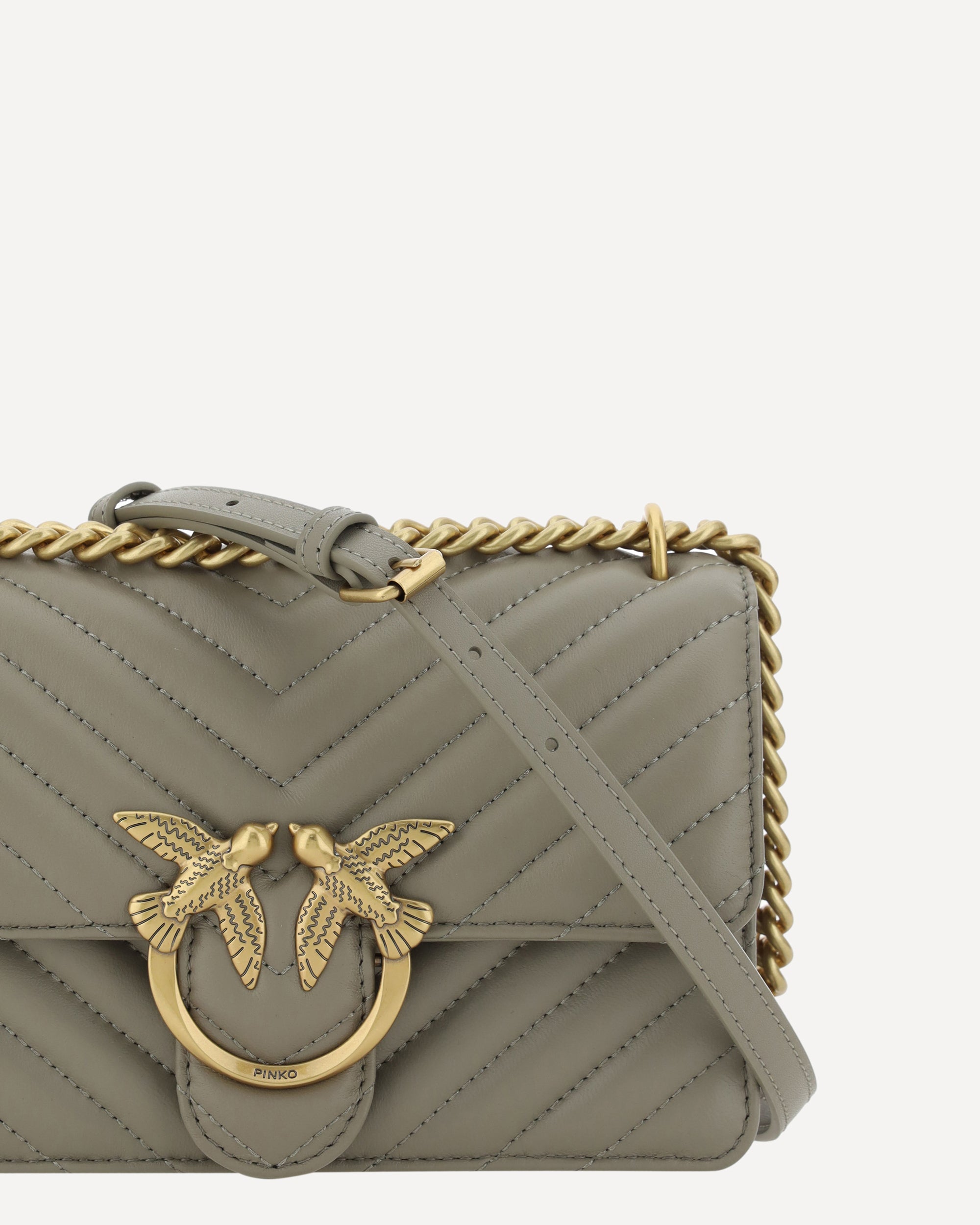 The Mini Love leather Shoulder Bag by Pinko is a perfect mix of elegance and functionality. The front closure with magnetic flap ensures safety and practicality, while the iconic gold-plated Love Birds logo embossed on the front adds a touch of distinctive luxury. The quilted and padded design is not only refined, but also gives a feeling of softness and comfort. The double internal compartment offers enough space to keep everything in order, while the sliding chain shoulder strap allows you to adjust it to your preferred height, making it perfect for any occasion. The internal slip pocket and the tone-on-tone embroidered brand monogram on the back add exclusive details that make this bag a must-have.