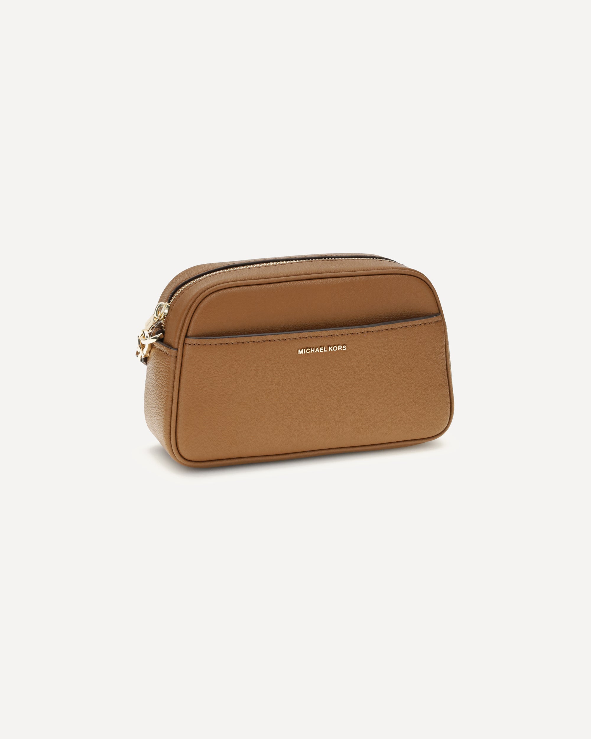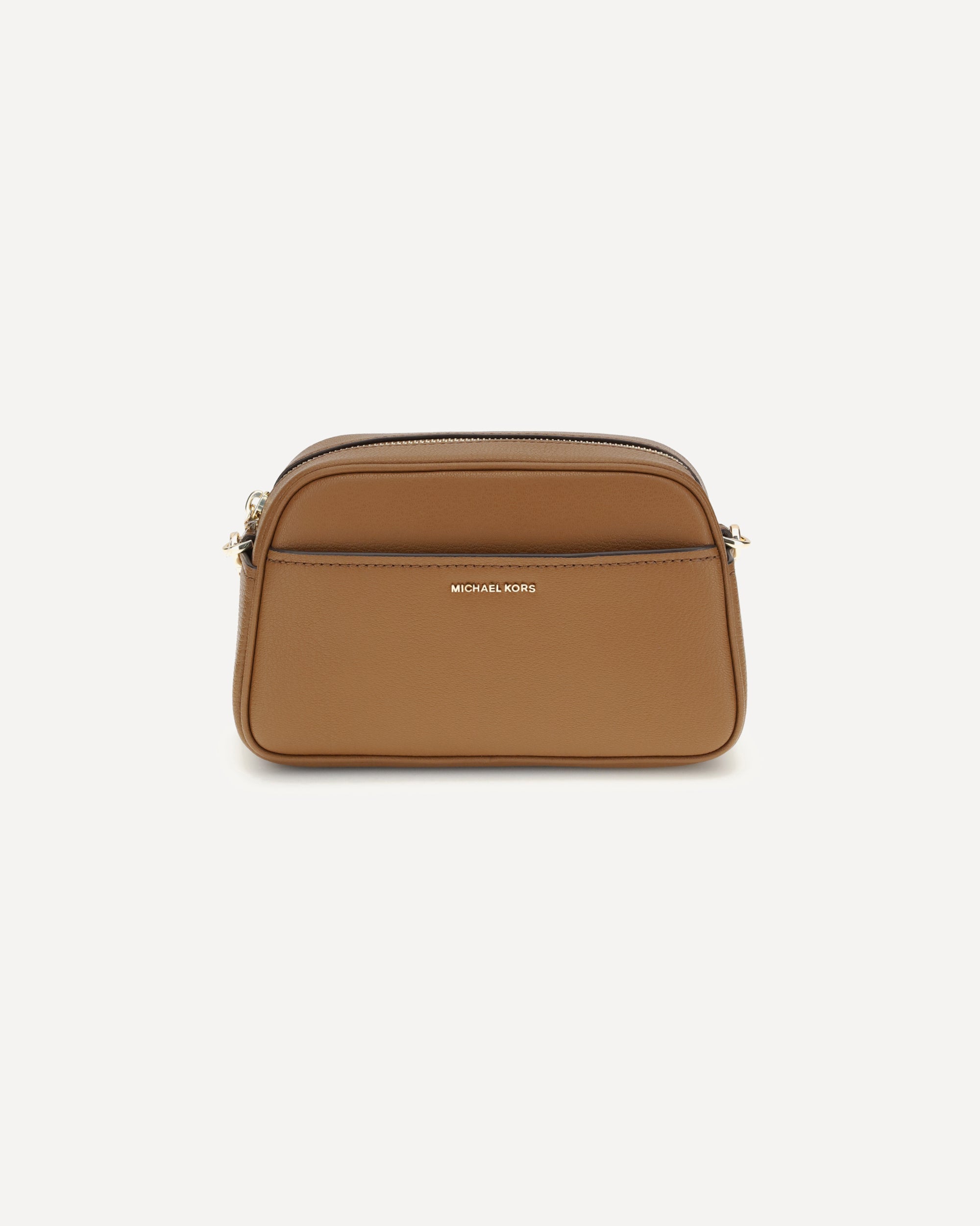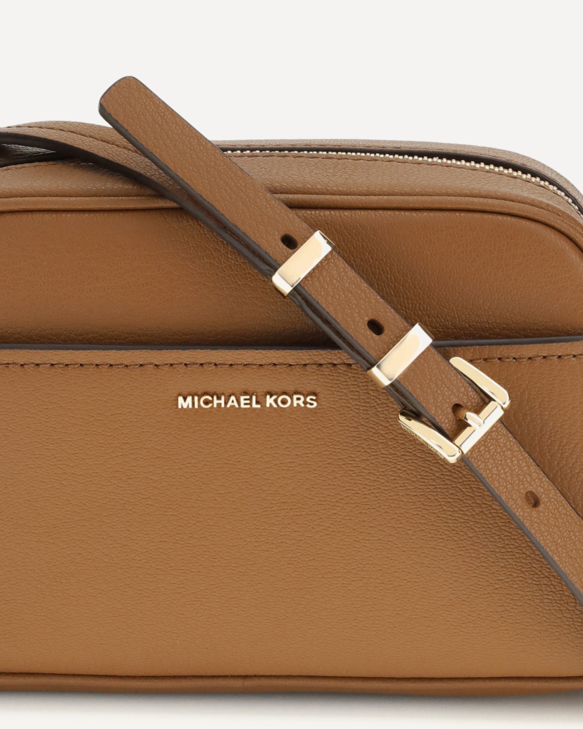 The Jet Set Bag by Michael Kors features a functional and elegant design, with a convenient open front pocket and a secure zip closure. The shoulder strap is removable and adjustable, with gold-tone metal details that add a refined touch. Inside, the solid-color textile lining houses a main compartment and an interior pocket, perfect for keeping your essentials organized.