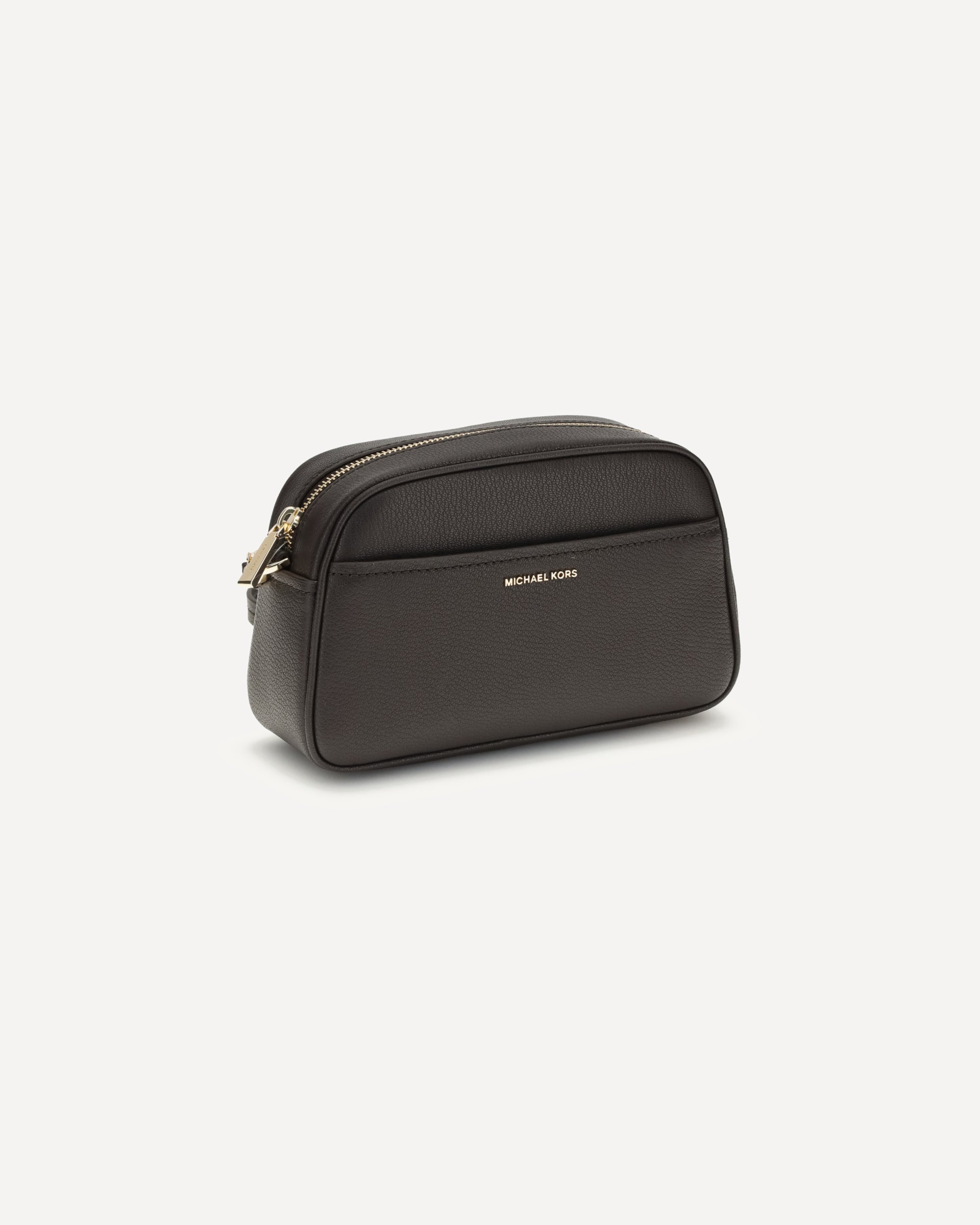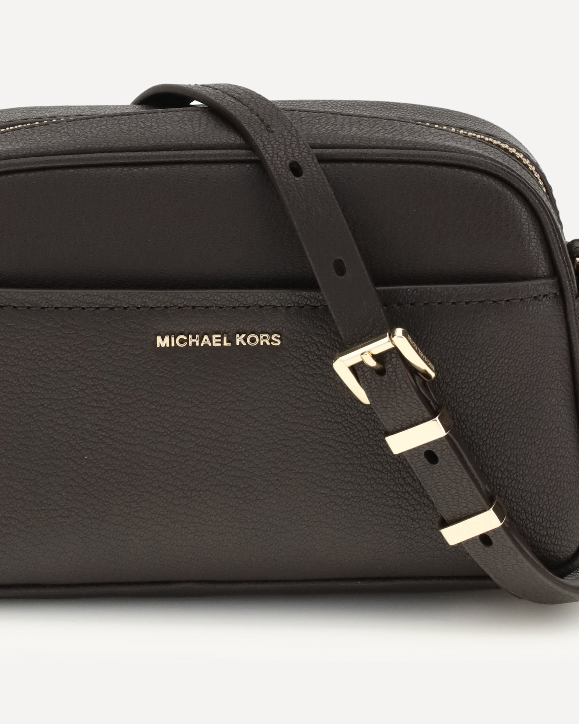 The Jet Set Bag by Michael Kors features a functional and elegant design, with a convenient open front pocket and a secure zip closure. The shoulder strap is removable and adjustable, with gold-tone metal details that add a refined touch. Inside, the solid-color textile lining houses a main compartment and an interior pocket, perfect for keeping your essentials organized.