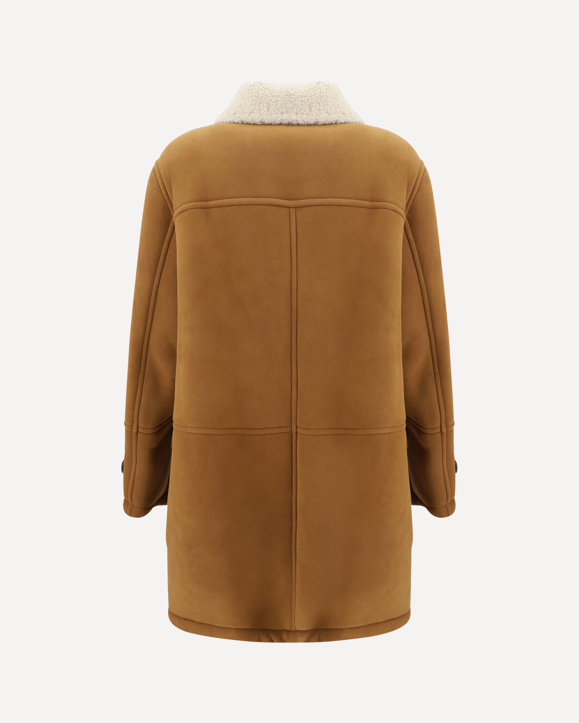 Valstar's Norrland Coat is a stylish and functional garment made of soft and durable lambskin leather. The classic collar and button closure add a touch of timeless sophistication. Inside, shearling provides warmth and comfort, making it perfect for winter. The two maxi patch flap pockets are practical and stylish, ideal for storing small items.