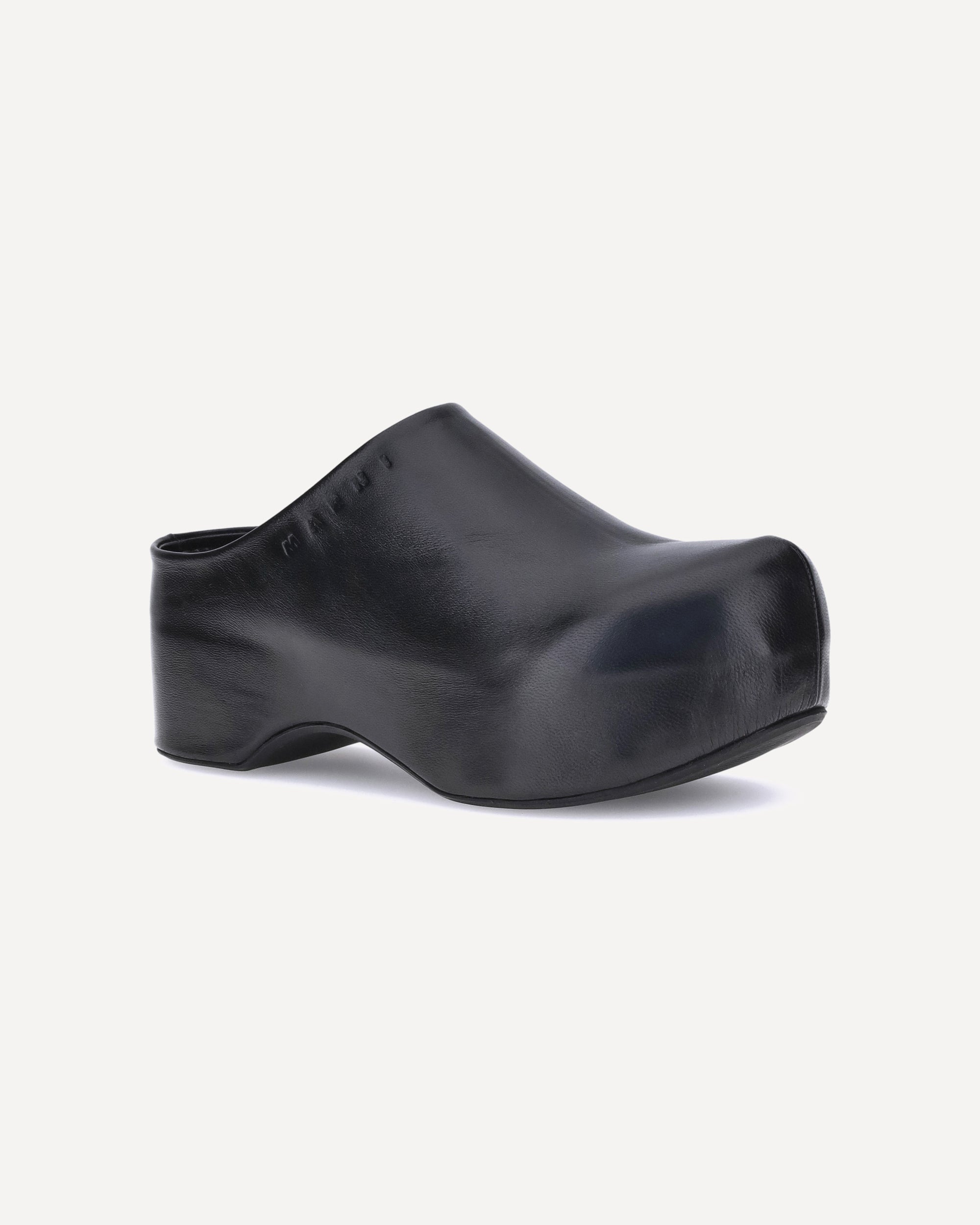 Marni's leather Mules combine contemporary design and comfort with a slip-on silhouette and a platform wedge that slims without sacrificing practicality. Featuring an almond toe profile and embossed logo on the side, they have a branded leather insole for a touch of understated sophistication.