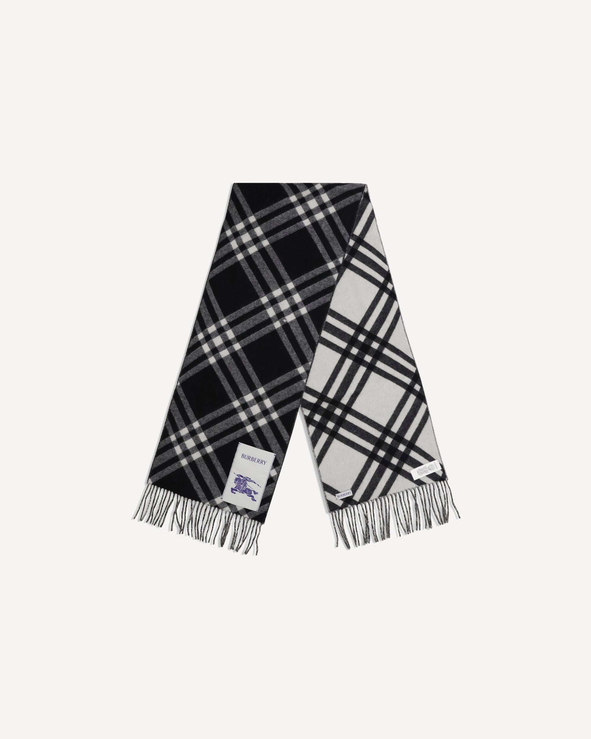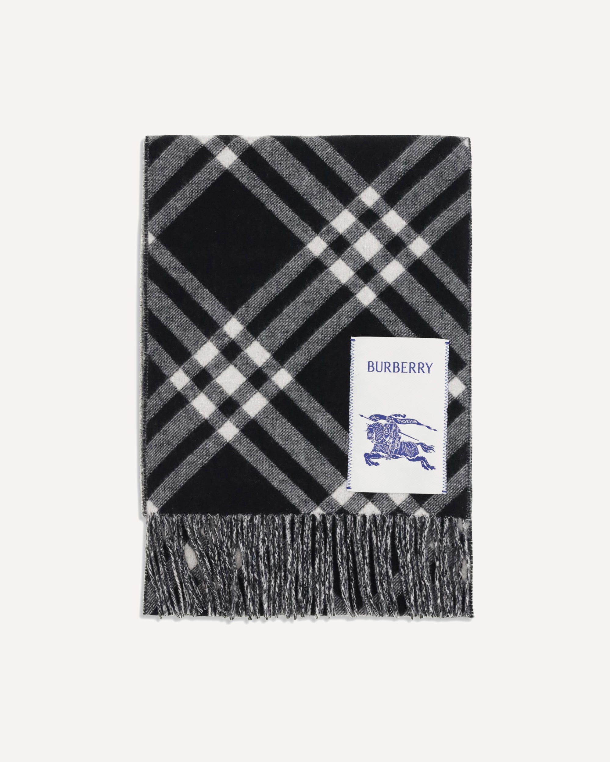 The Check Cashmere Scarf by Burberry is distinguished by its ultra-soft raised nap finish. The rectangular design, finished with fringed ends, combines tradition, craftsmanship, and timeless style.