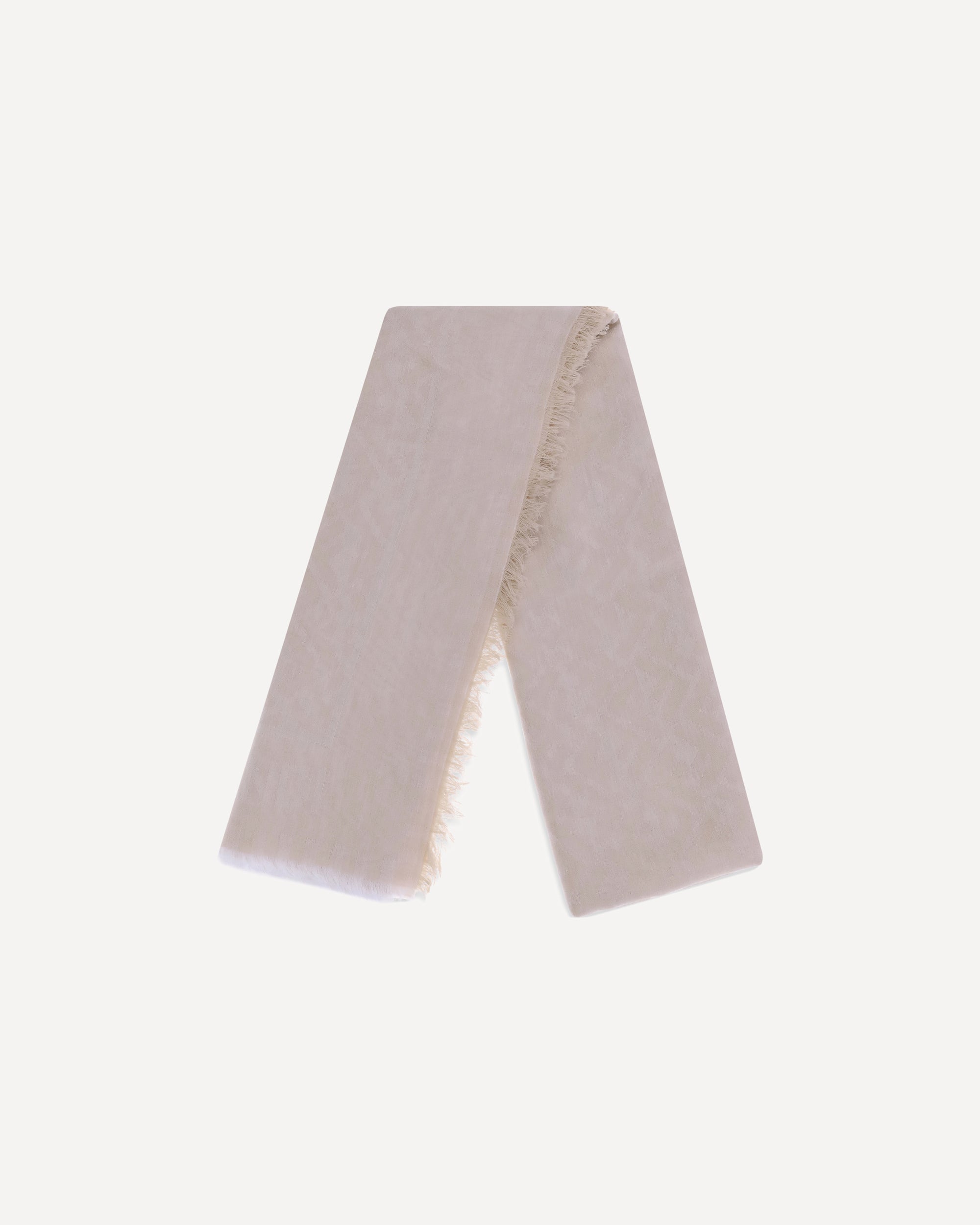The Fendi FF Scarf is crafted from soft, lightweight cotton yarn and features an elegant diagonal jacquard with an FF motif. The edge is finished with the iconic Pequin stripes, while the frayed edges add a touch of naturalness and style.