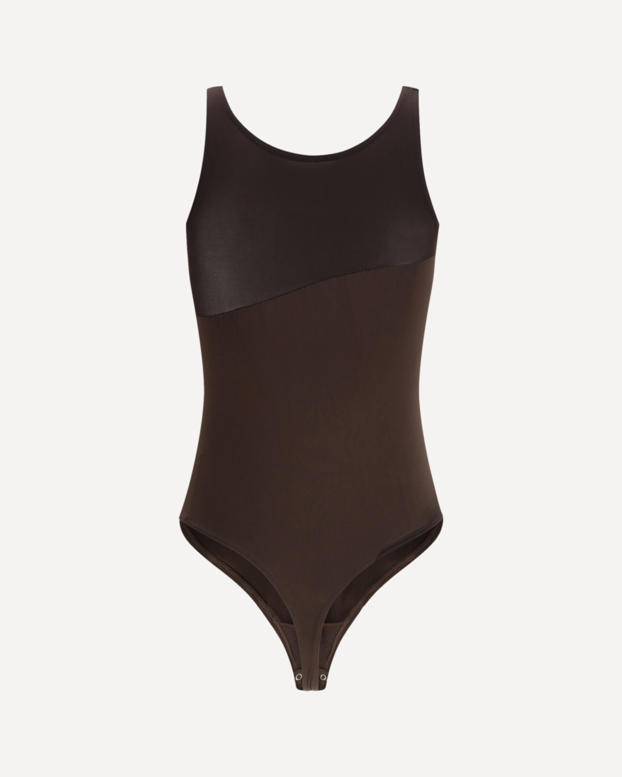 The Shade Sleeveless String Body by Wolford is a sleeveless string bodysuit showcasing the brand’s refined craftsmanship through a sophisticated, modern design. Crafted in one piece using Wolford’s iconic circular knit, it features a wave-inspired pattern that blends opaque and sheer panels, enhanced by ultra-fine reflective yarns for a subtle luminous effect. The round neckline, flawless finish, and slim fit enhance the silhouette, while the cotton gusset and snap-button fastening ensure comfort and practicality.