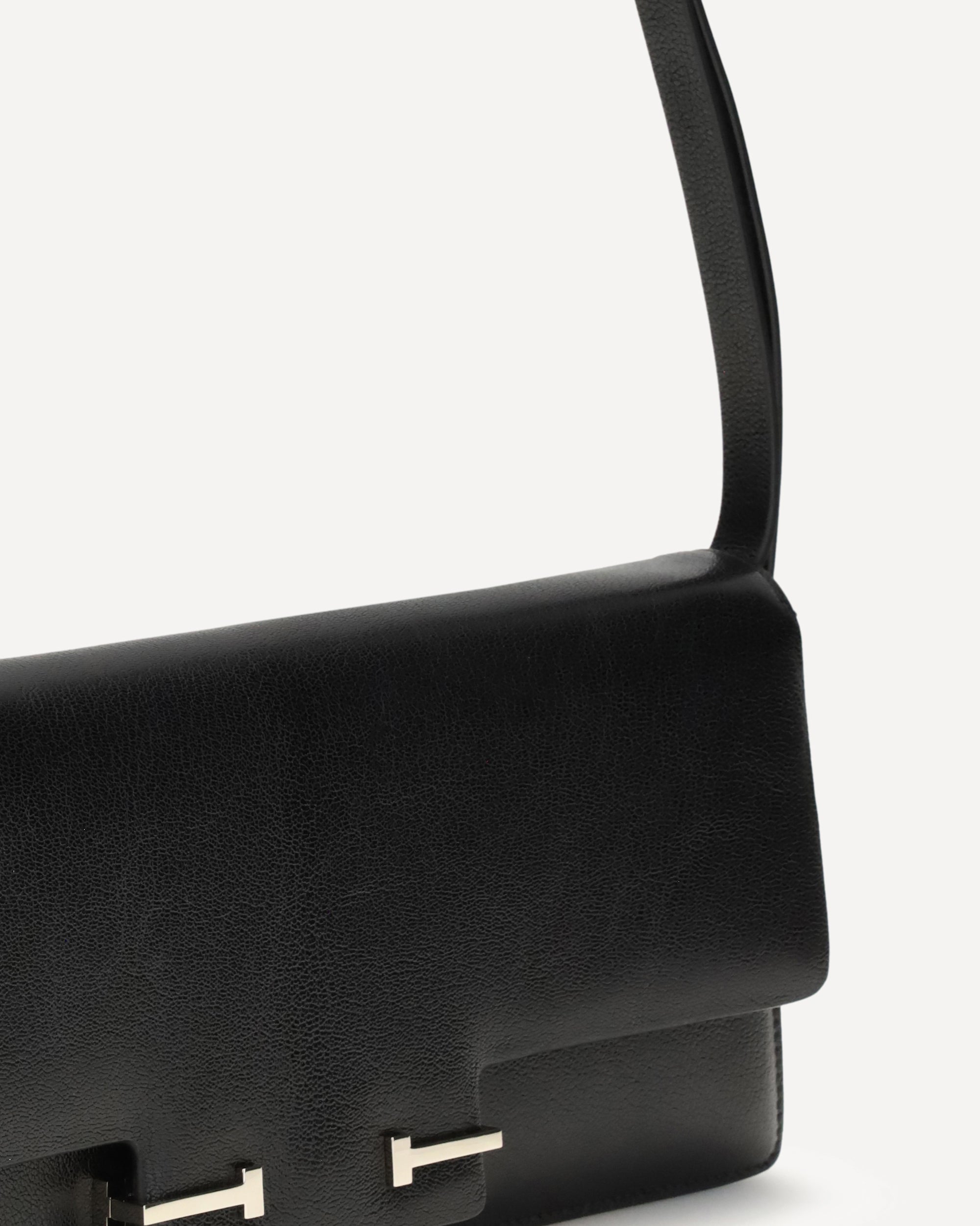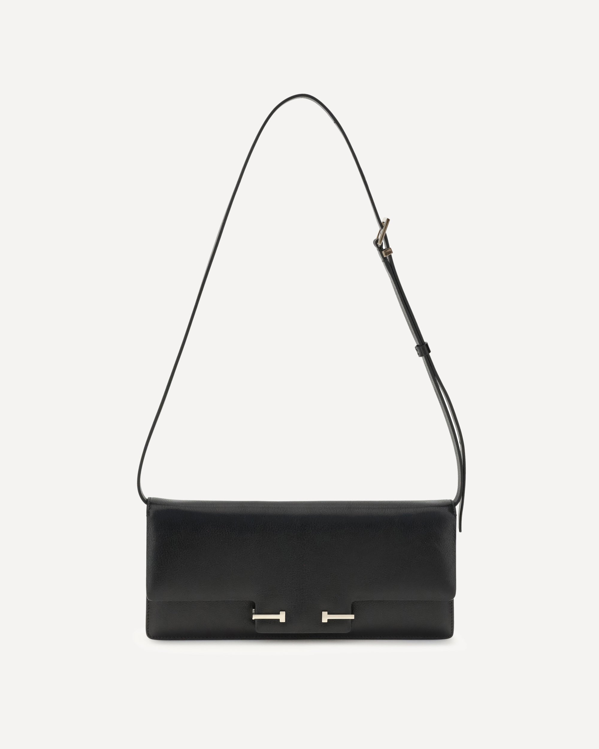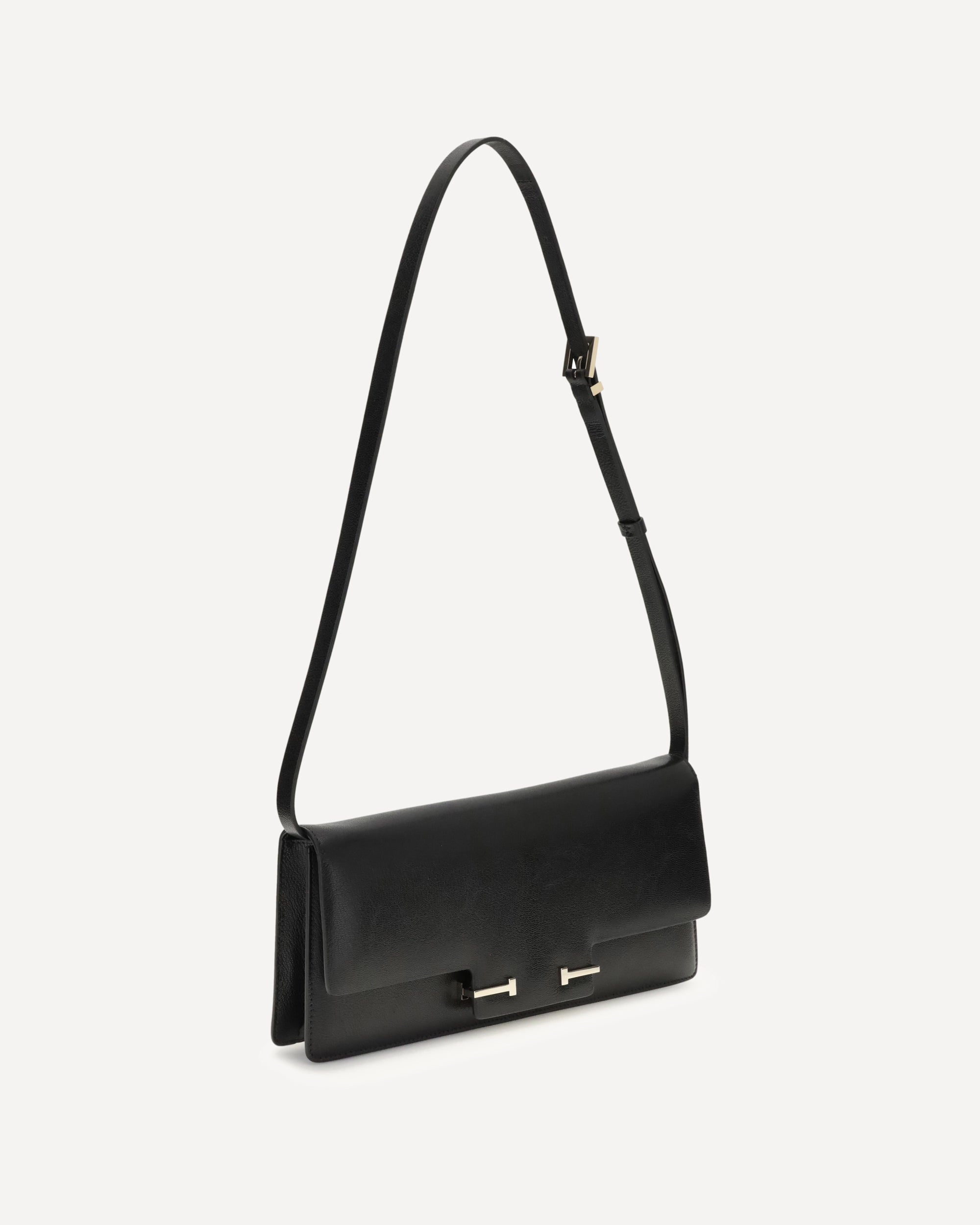 The Shoulder Bag by Tom Ford combines functionality and elegance in a minimalist design. Featuring an adjustable shoulder strap, it has a top flap with a T-plate closure and silver-tone hardware, creating a refined and timeless look.