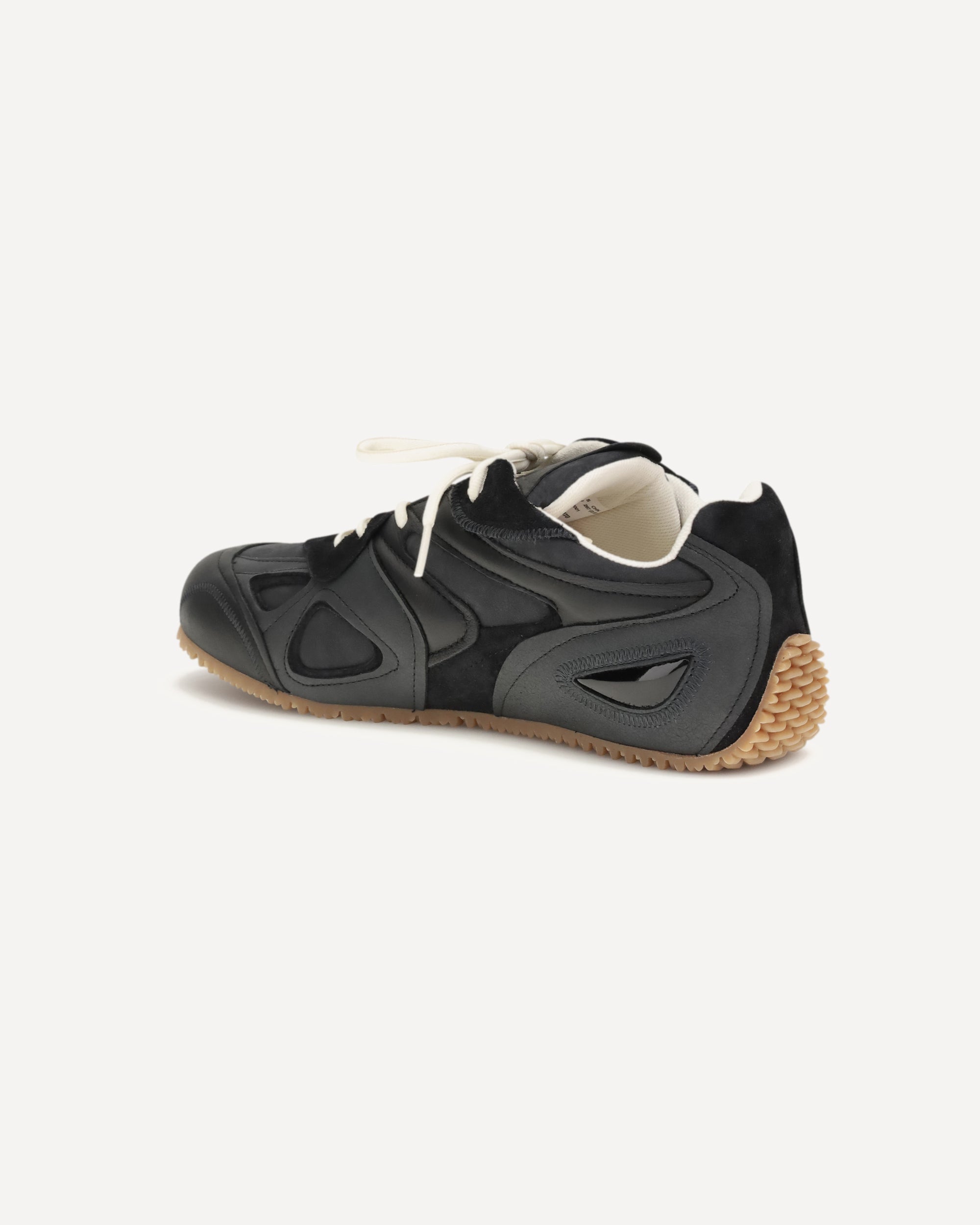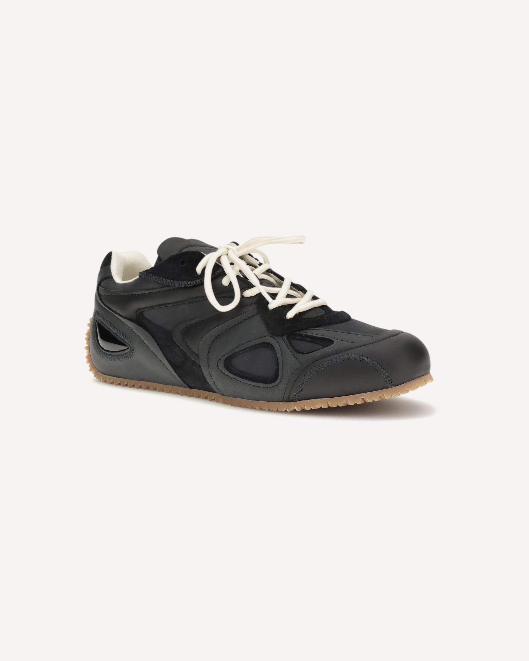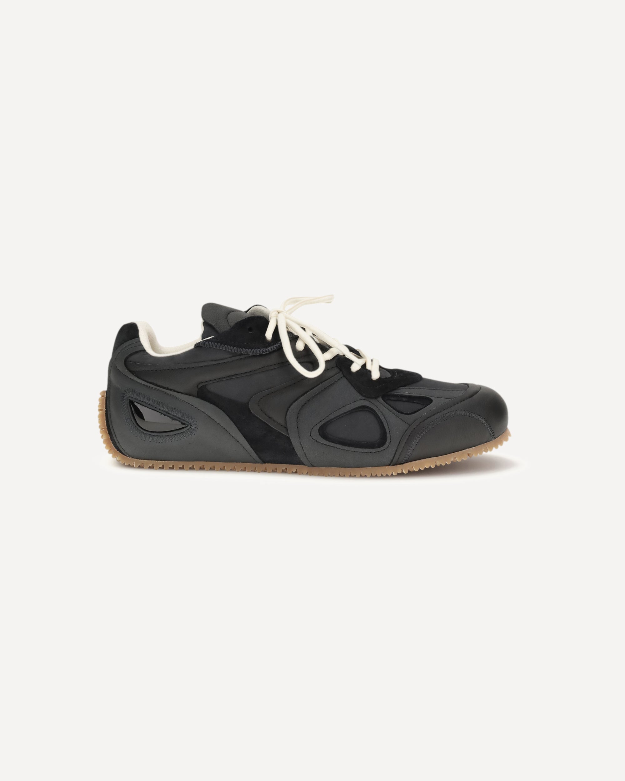 The Slow Runner Sneakers by Axel Arigato combine contemporary design and innovation. The layered upper combines leather, suede and nubuck in an interplay of deconstructed panels, while the flat sole with mesh-inspired finish lends a distinctive touch. Round laces and branding stamped on the tongue complete the design for a unique, modern style.