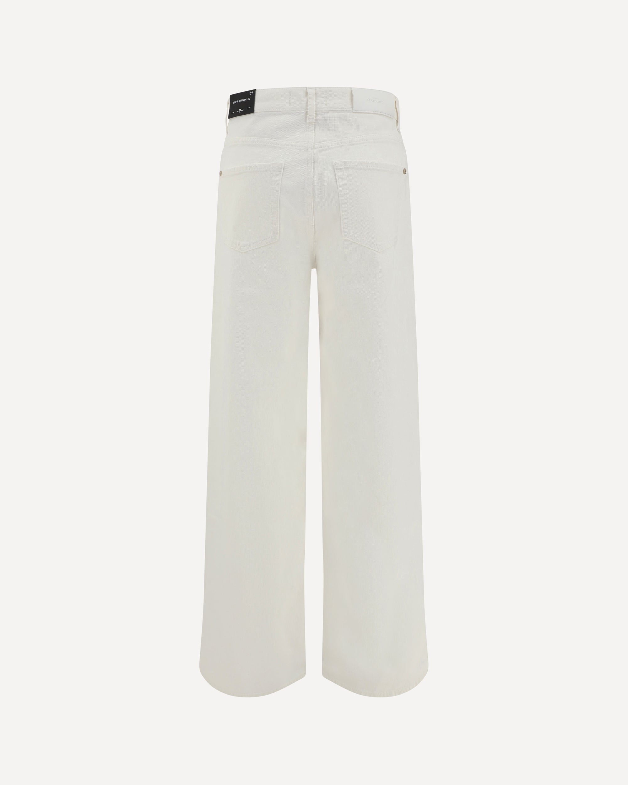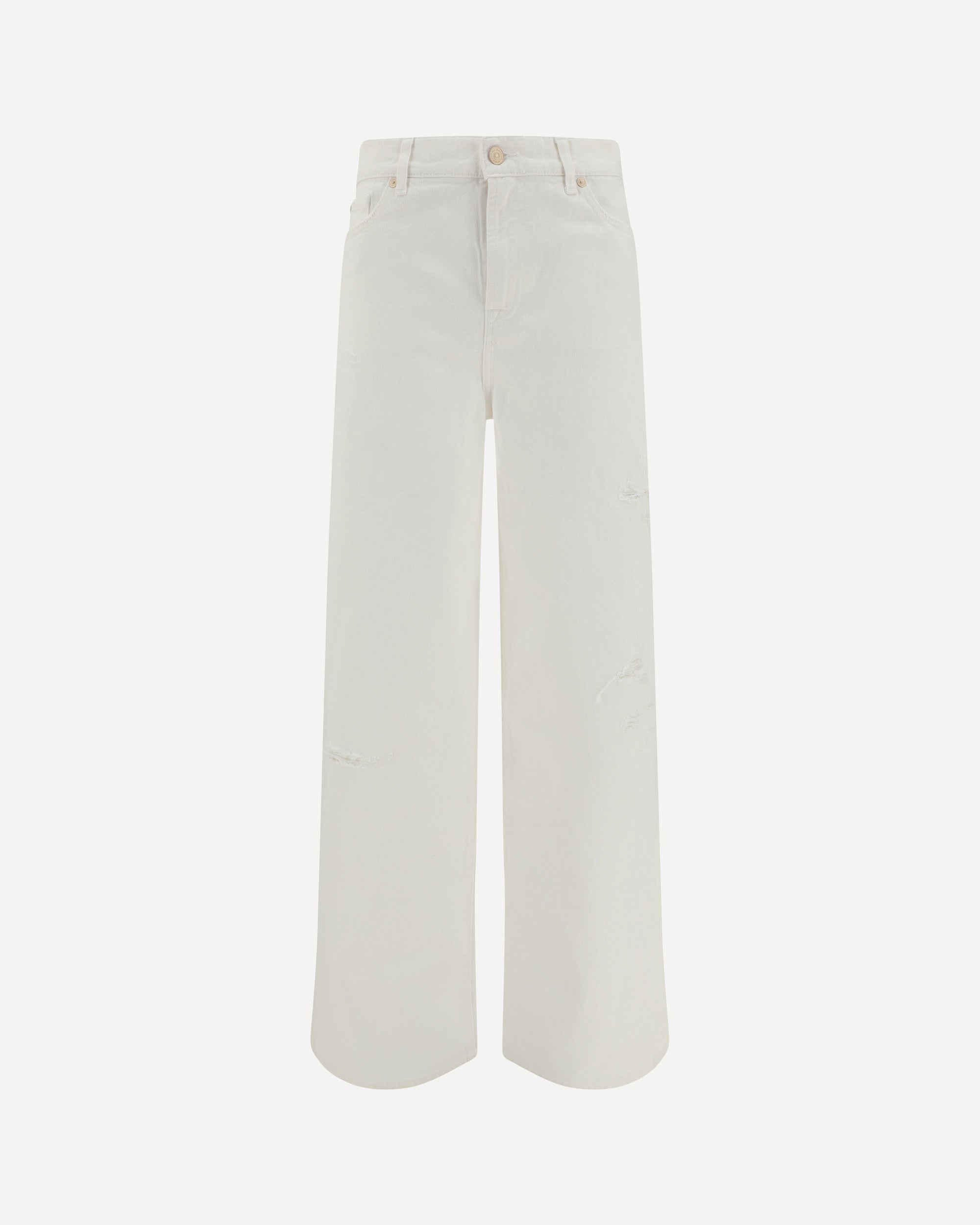 The Slung Jeans by 7For are a five-pocket wide leg style featuring a front zipper and button closure that ensures a comfortable and secure fit. Belt loops on the waistband allow you to customize the fit, while the high waist gives a sleek, modern silhouette. Perfect for those seeking a casual and sophisticated look, these jeans offer an ideal balance of style and comfort.
