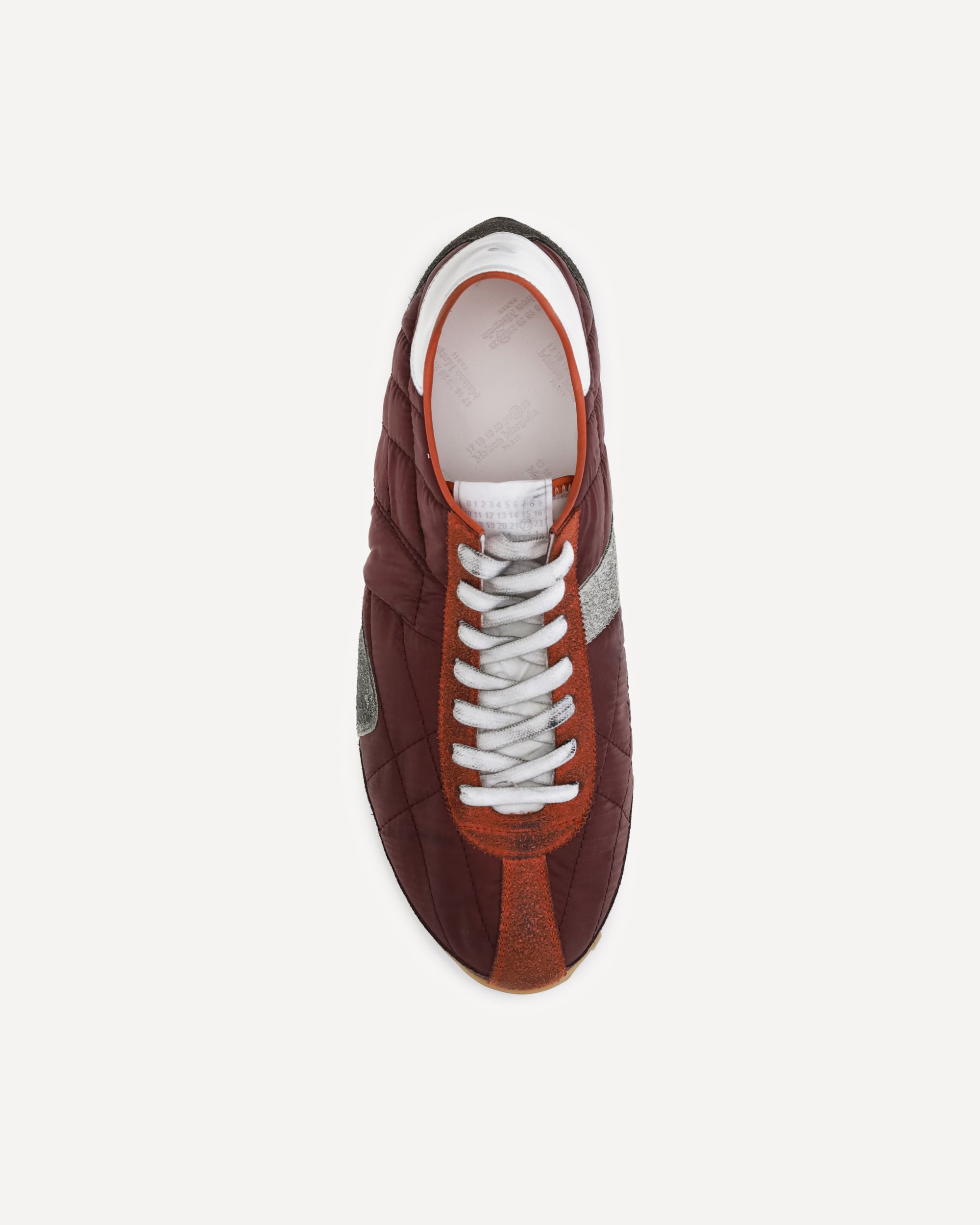 The Sprinter Low Top Sneakers by Maison Margiela feature a contemporary and refined design. The quilted exterior adds texture and originality, enriched with suede calfskin trims and inserts for a touch of luxury. The non-slip rubber sole ensures comfort and safety with every step, while the Numeric Signature label adds the Maison's signature subtlety.