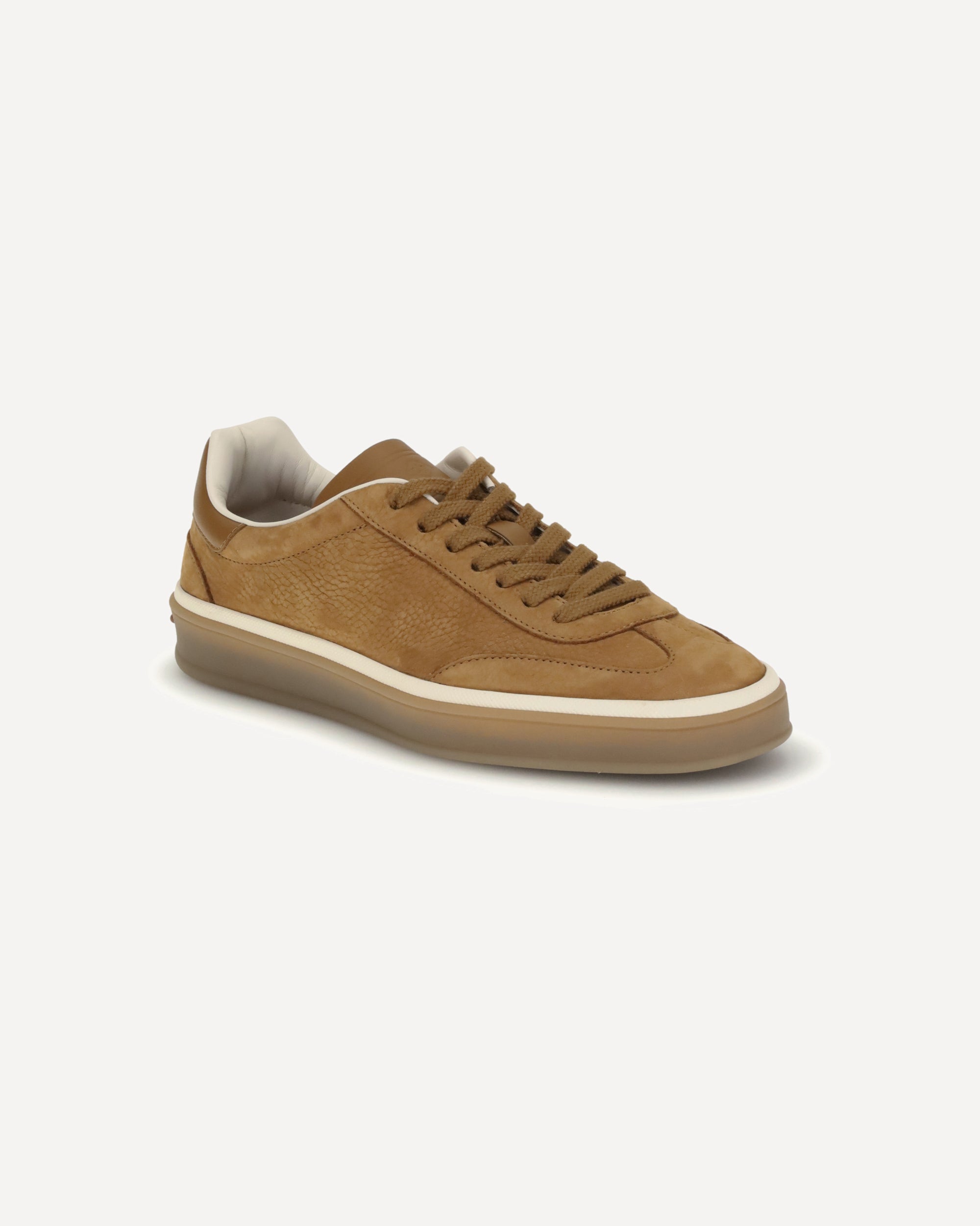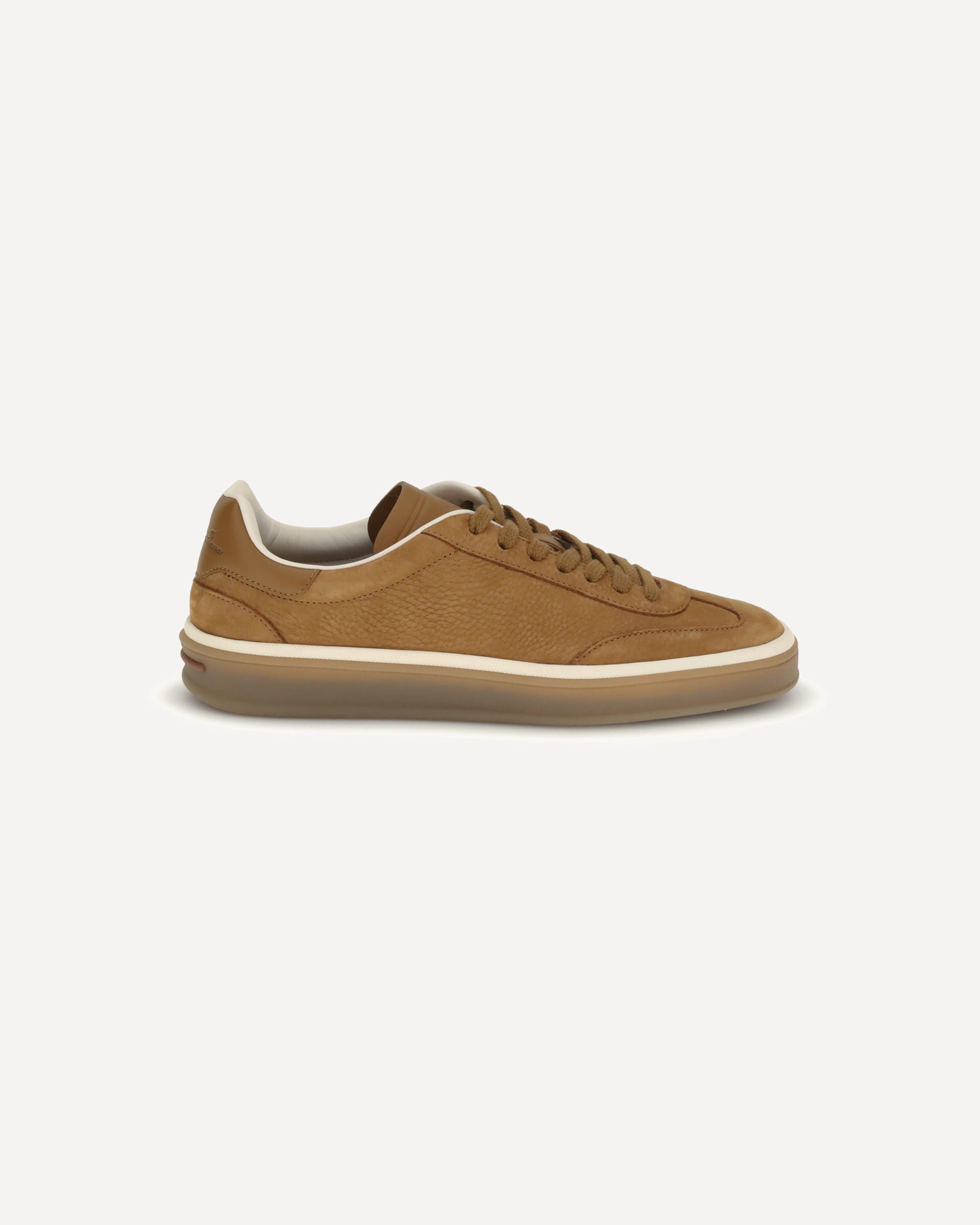 The Leather Sneaker by Loro Piana combines the natural elegance of fine materials with a contemporary design. Made from calfskin leather, it offers comfort, craftsmanship, and an essential style. The streamlined silhouette and amber rubber sole create a sophisticated balance, perfect for completing a casual yet refined wardrobe.