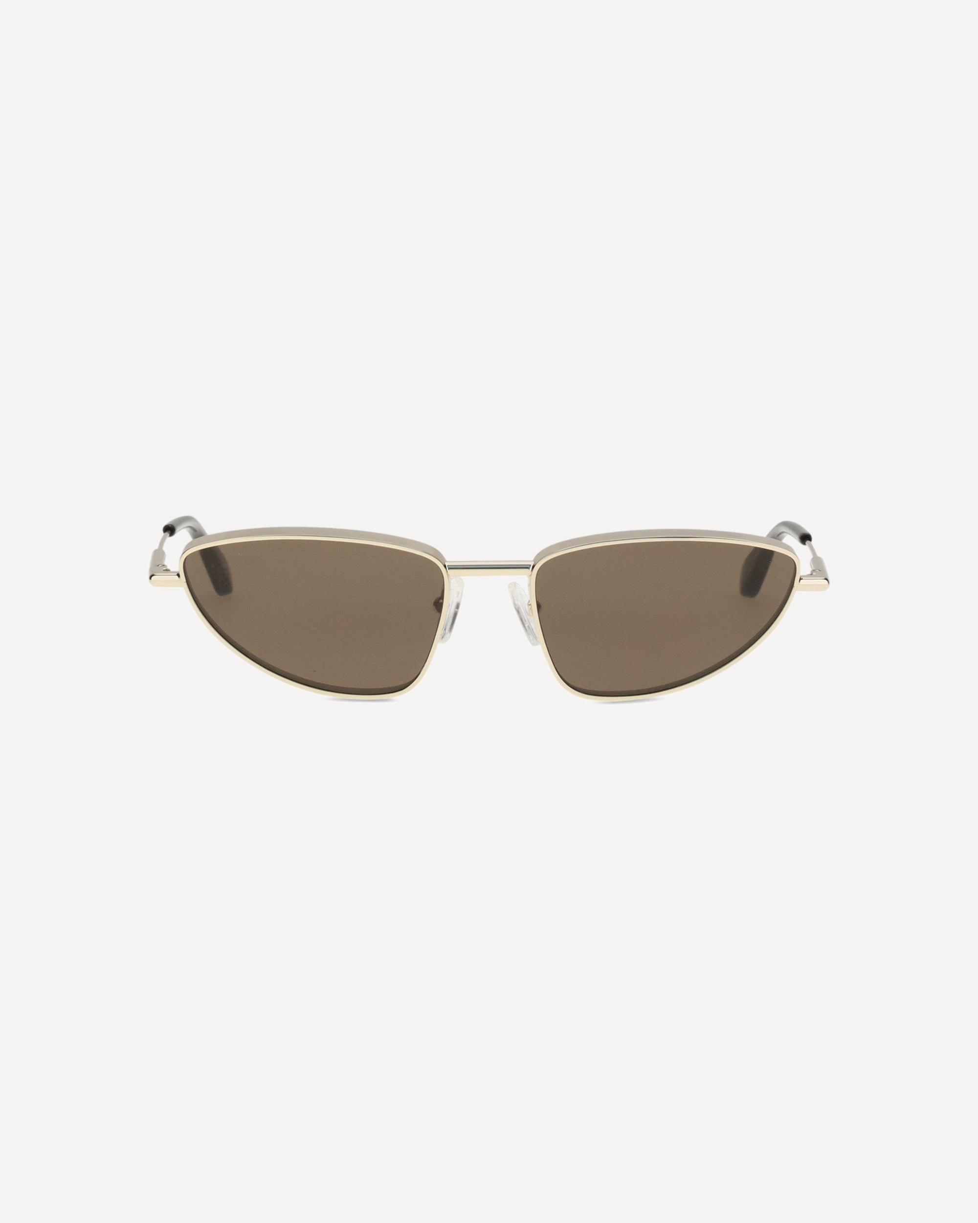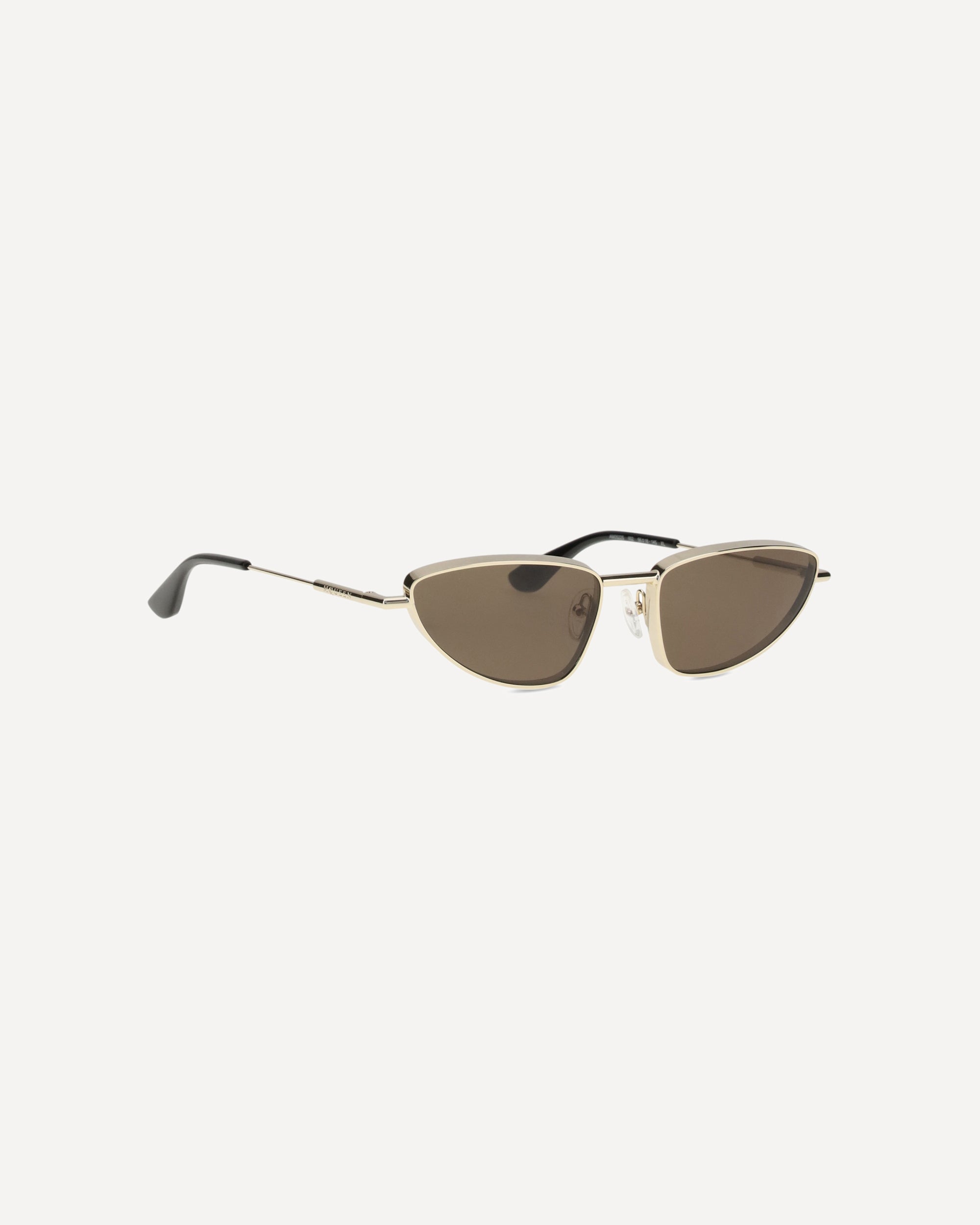 Alexander McQueen's Cat-eye Sunglasses feature a bold and refined design. Made of silver-colored metal with tone-on-tone mirrored lenses, they feature a beveled cat-eye shape and adjustable nose pads for maximum comfort. The distinctive T-shaped element is integrated on the temples, which are finished with a laser-engraved McQueen logo and acetate temple tips for a touch of contemporary elegance.