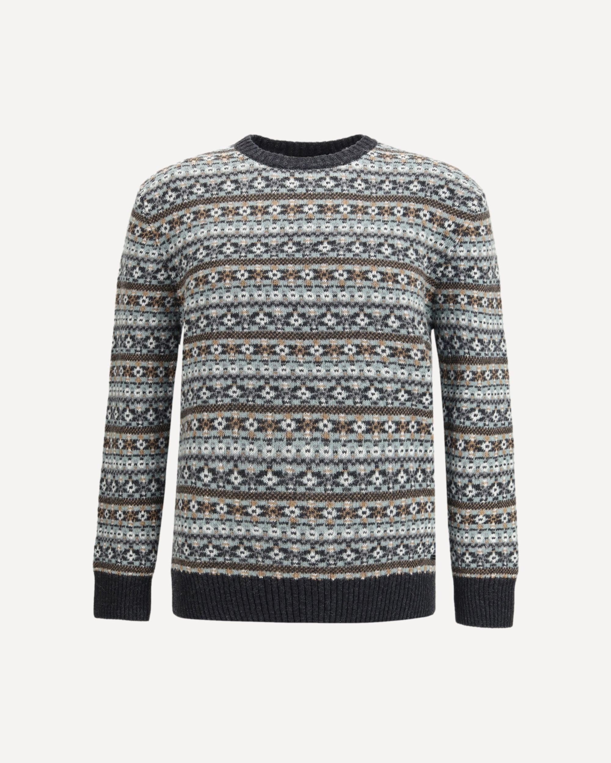 The crewneck wool-blend Sweater by Brooksfield features a multicolor jacquard pattern inspired by ethnic motifs, adding a refined and distinctive touch. Made from soft wool-blend yarn, it provides warmth, comfort, and a relaxed fit, ideal for cold days. The attention to craftsmanship and high-quality materials embody the timeless elegance of Brooksfield’s Made in Italy tradition.
