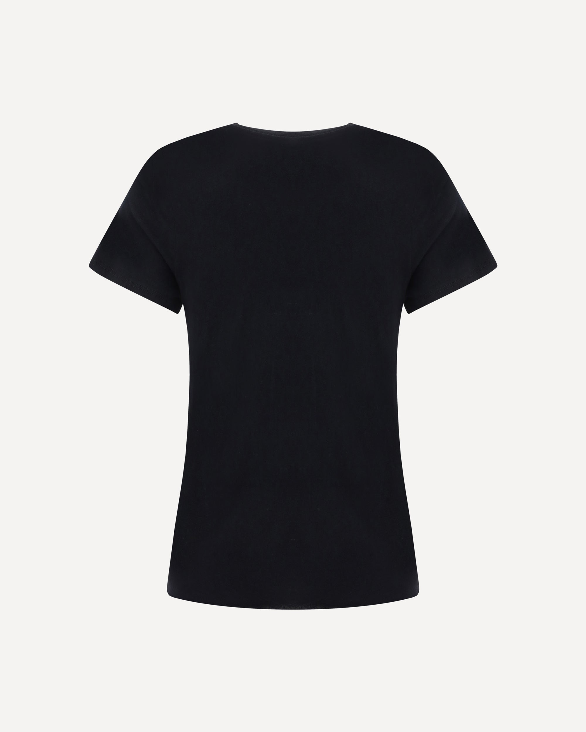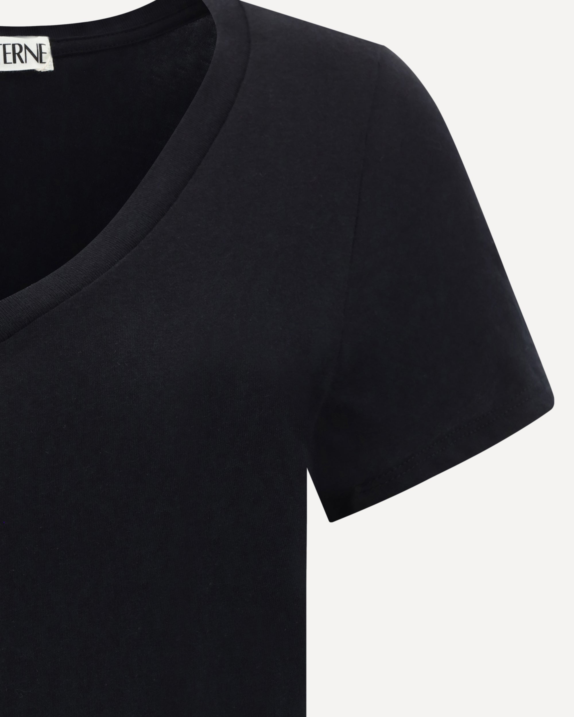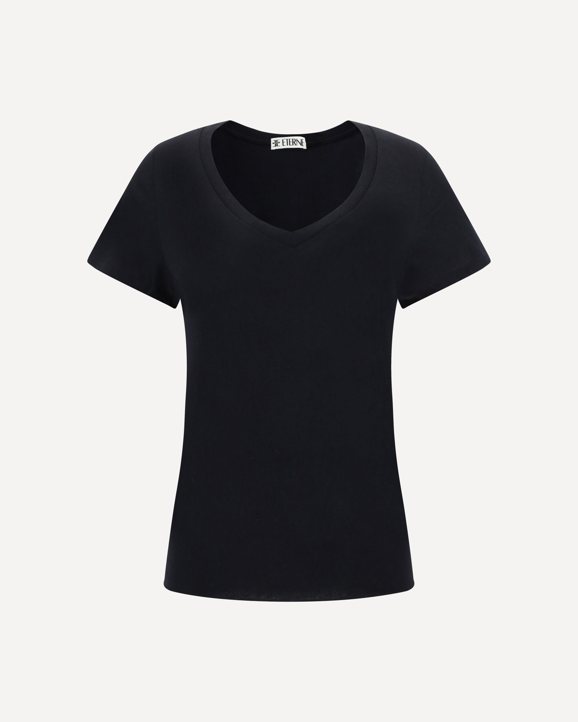 Cotton T-Shirt by Éterne, V-neck on ribbed front, scooped hem, monochrome pattern, regular fit.