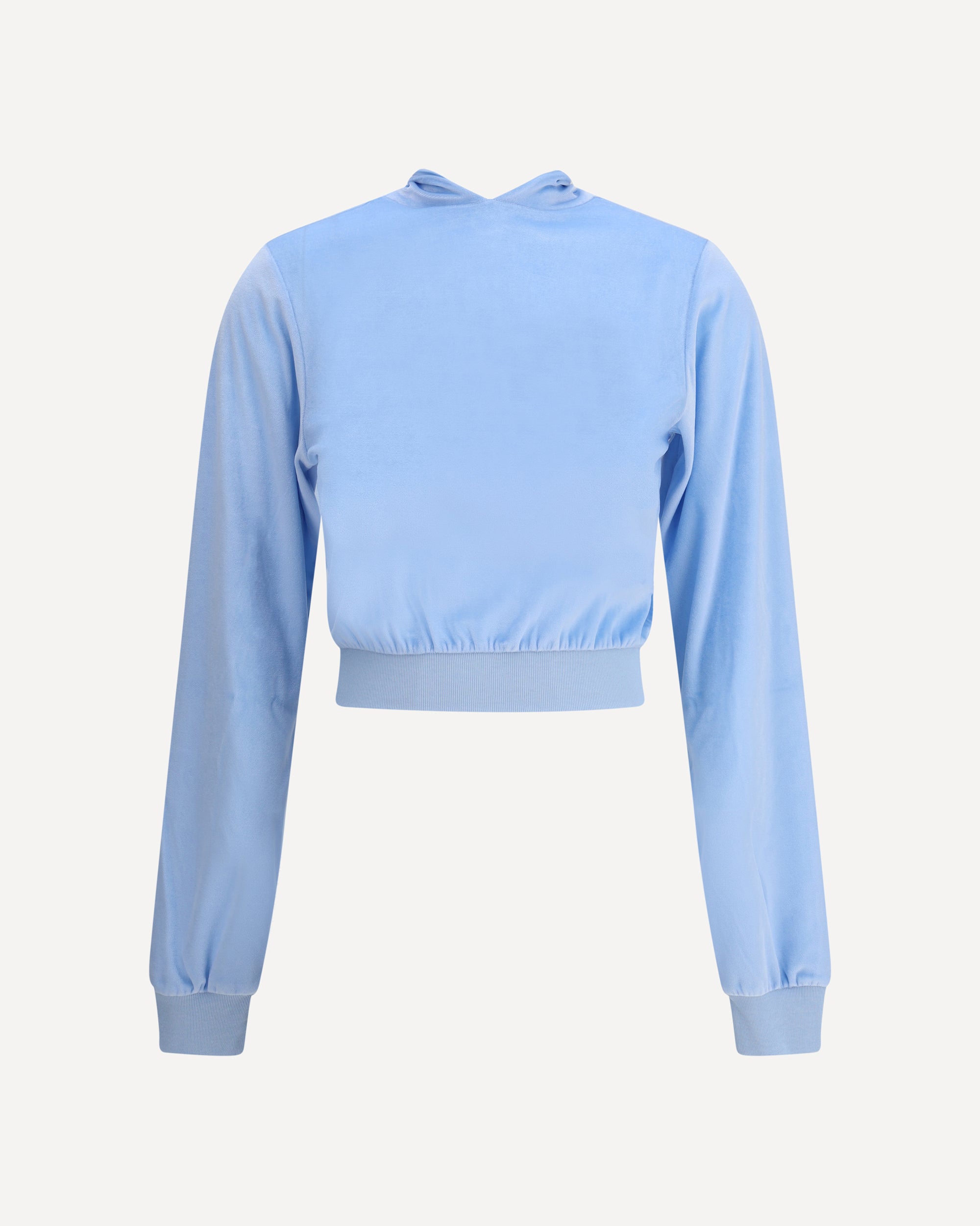 Balenciaga's Back To Front Top reinterprets the rules of design with a bold and sophisticated inverted construction. Made of bistretch velvet, it features sloping shoulders and a silhouette that plays with volumes. The back, the star of the look, is embellished with a zipper, a knotted collar and a pouch pocket, while gathered cuffs and waist add movement and structure. A striking garment designed for those who like to stand out.