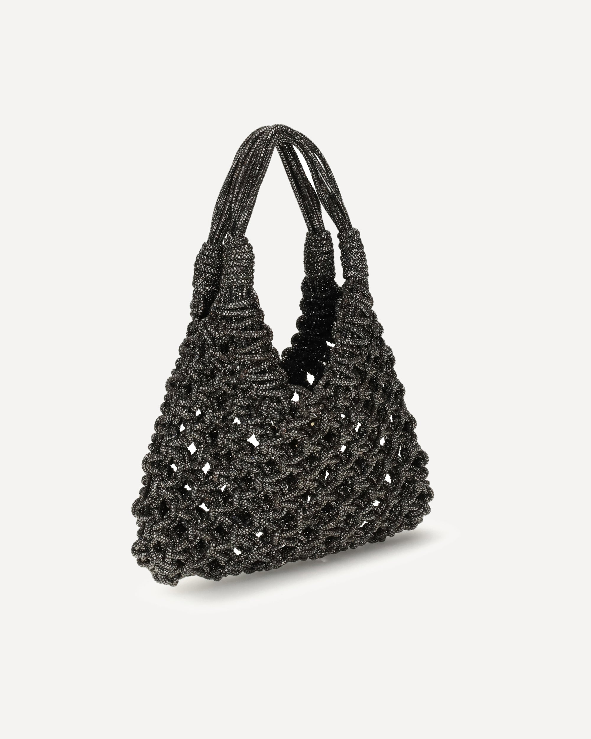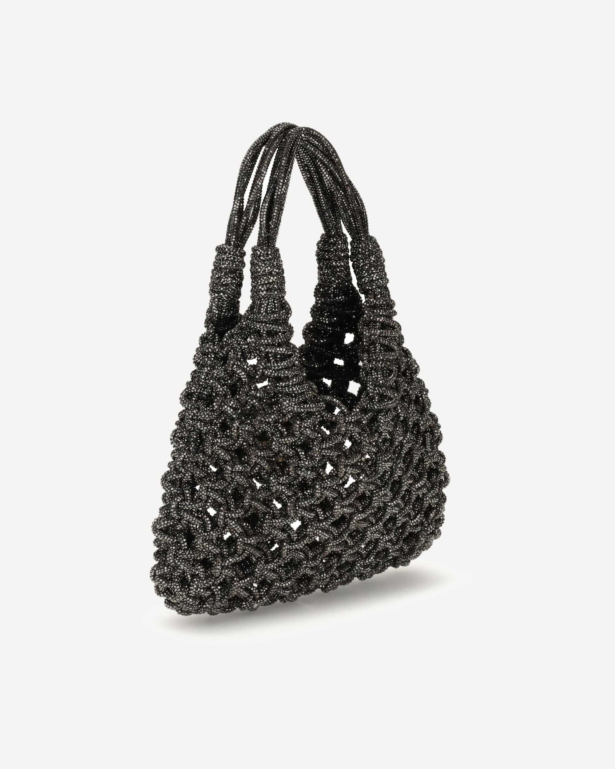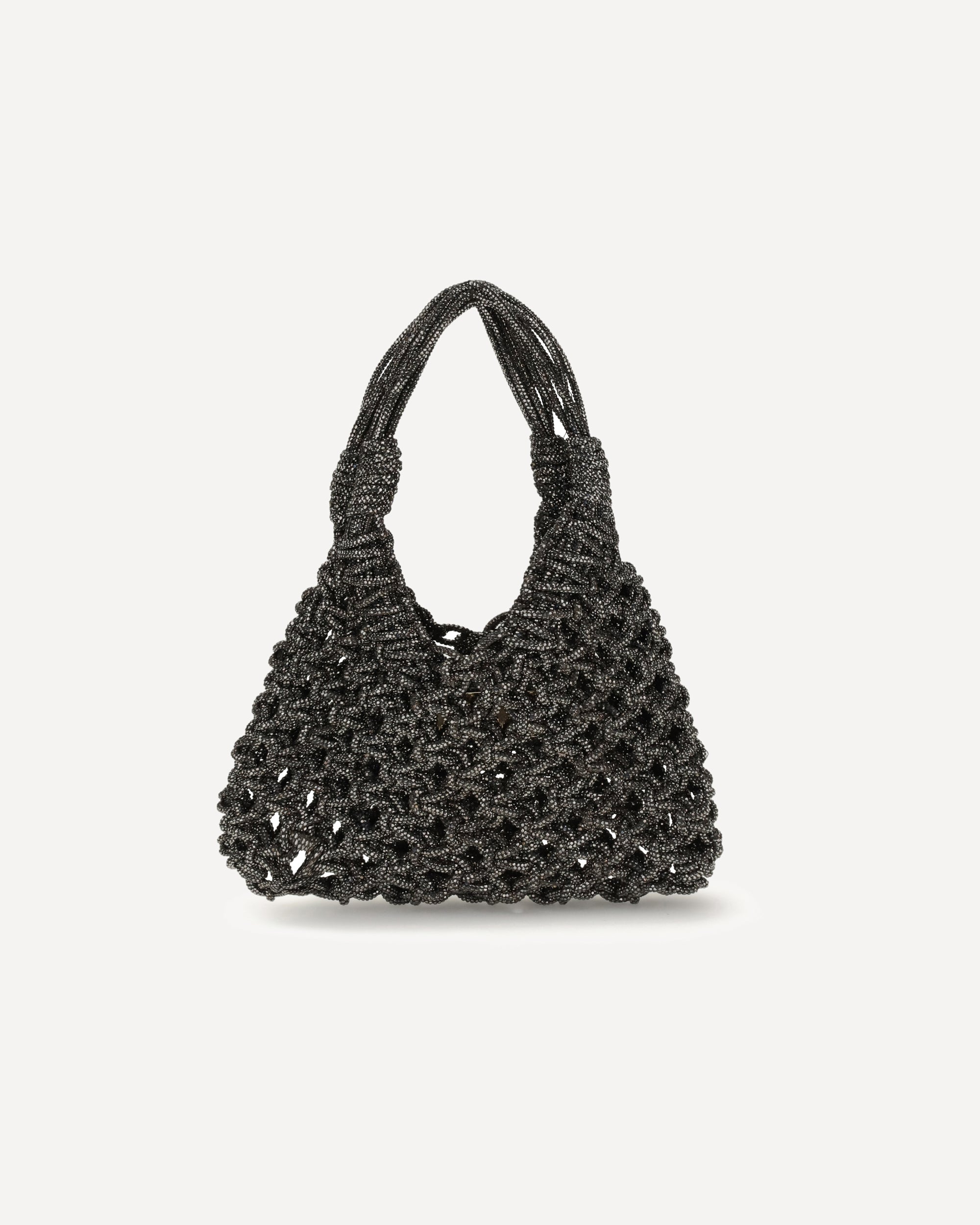 The Vannifique Handbag by Hibourama is a masterpiece of craftsmanship, made entirely by hand with a refined weaving technique. Versatile and sophisticated, it is perfectly suited for both daytime and evening wear, while the yarn embellished with precious crystals gives the model an elegant and modern luminosity.