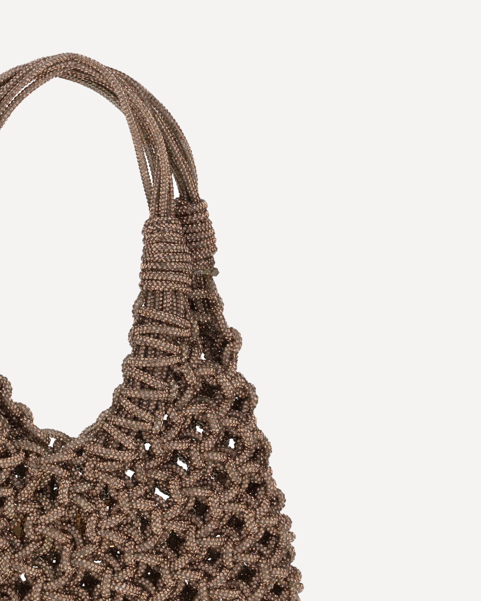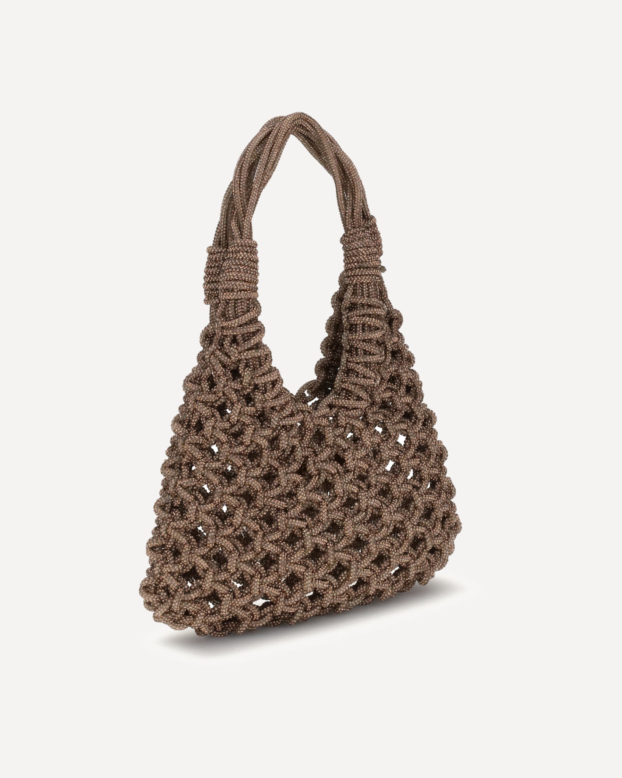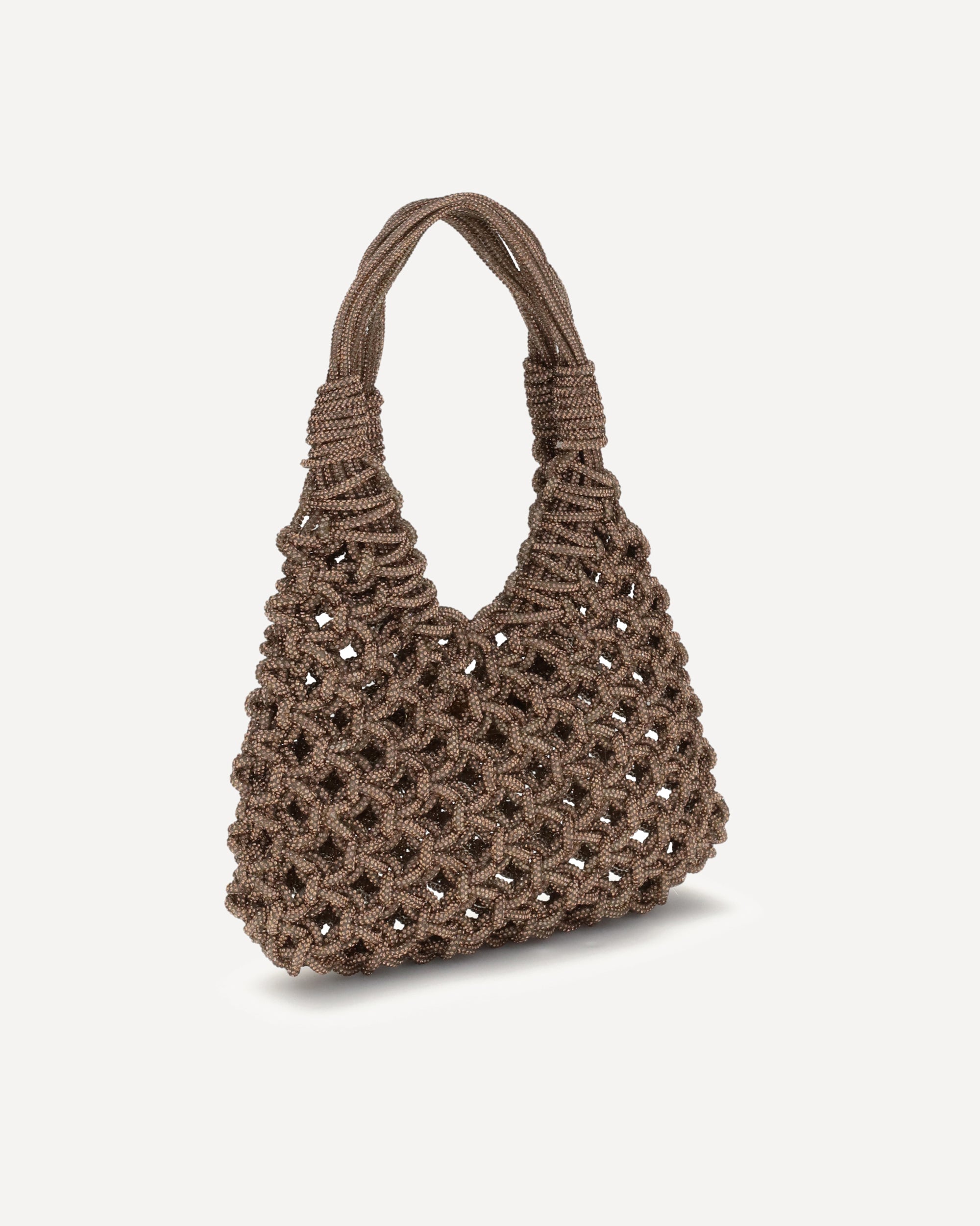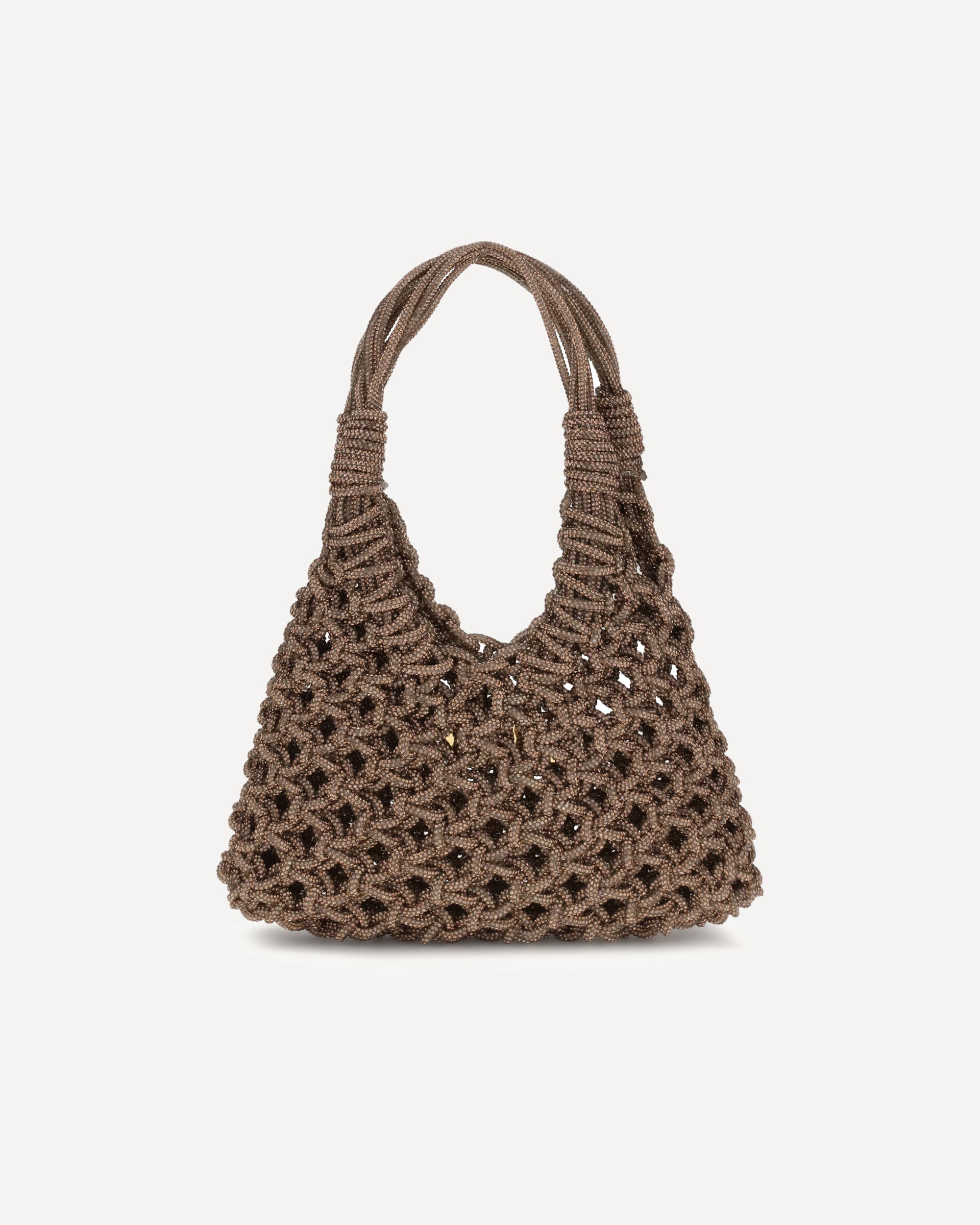 The Vannifique Handbag by Hibourama is a masterpiece of craftsmanship, made entirely by hand with a refined weaving technique. Versatile and sophisticated, it is perfectly suited for both daytime and evening wear, while the yarn embellished with precious crystals gives the model an elegant and modern luminosity.