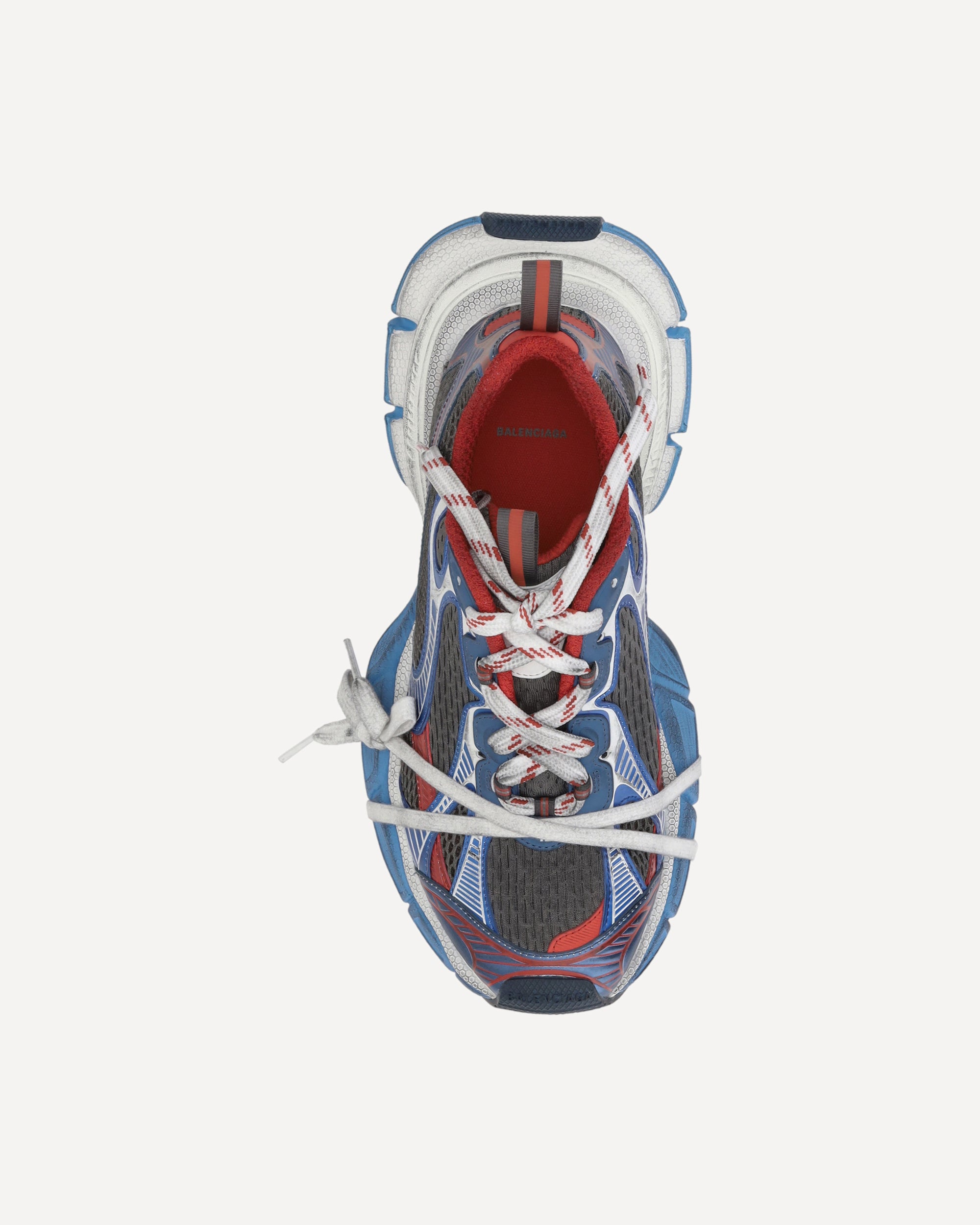 Balenciaga's 3XL Sneakers feature an oversized design with a textured chunky rubber sole, giving a bold look. The front closure is made with multiple laces, offering a customized fit. The body of the shoe is composed of mesh and mesh panels, creating a dynamic and lightweight visual effect. The closure features a double tongue for a sporty and functional look. Balenciaga's logo is printed on both the sole and insole, while reflective details add a stylish, technical touch. A perfect blend of comfort and cutting-edge design.