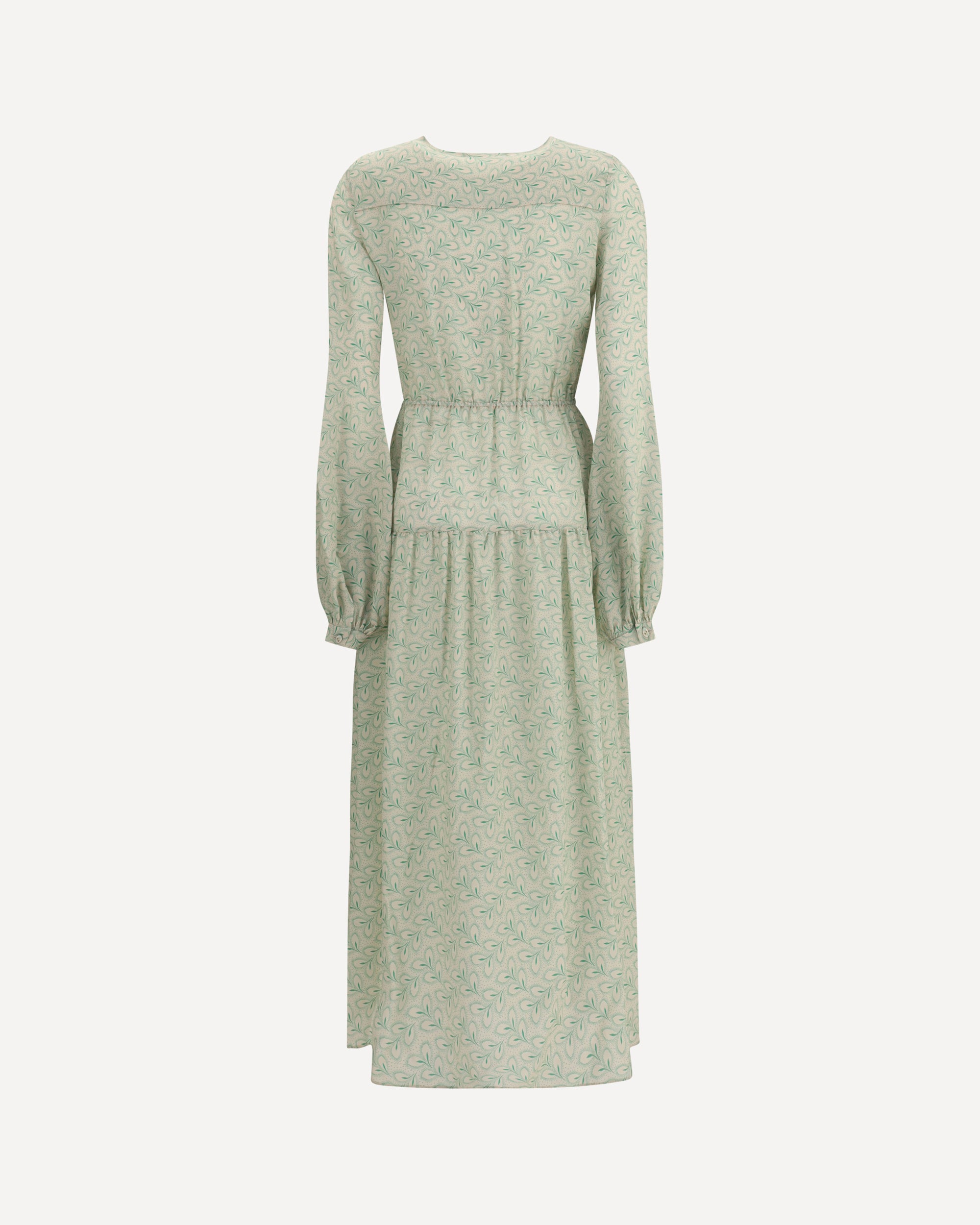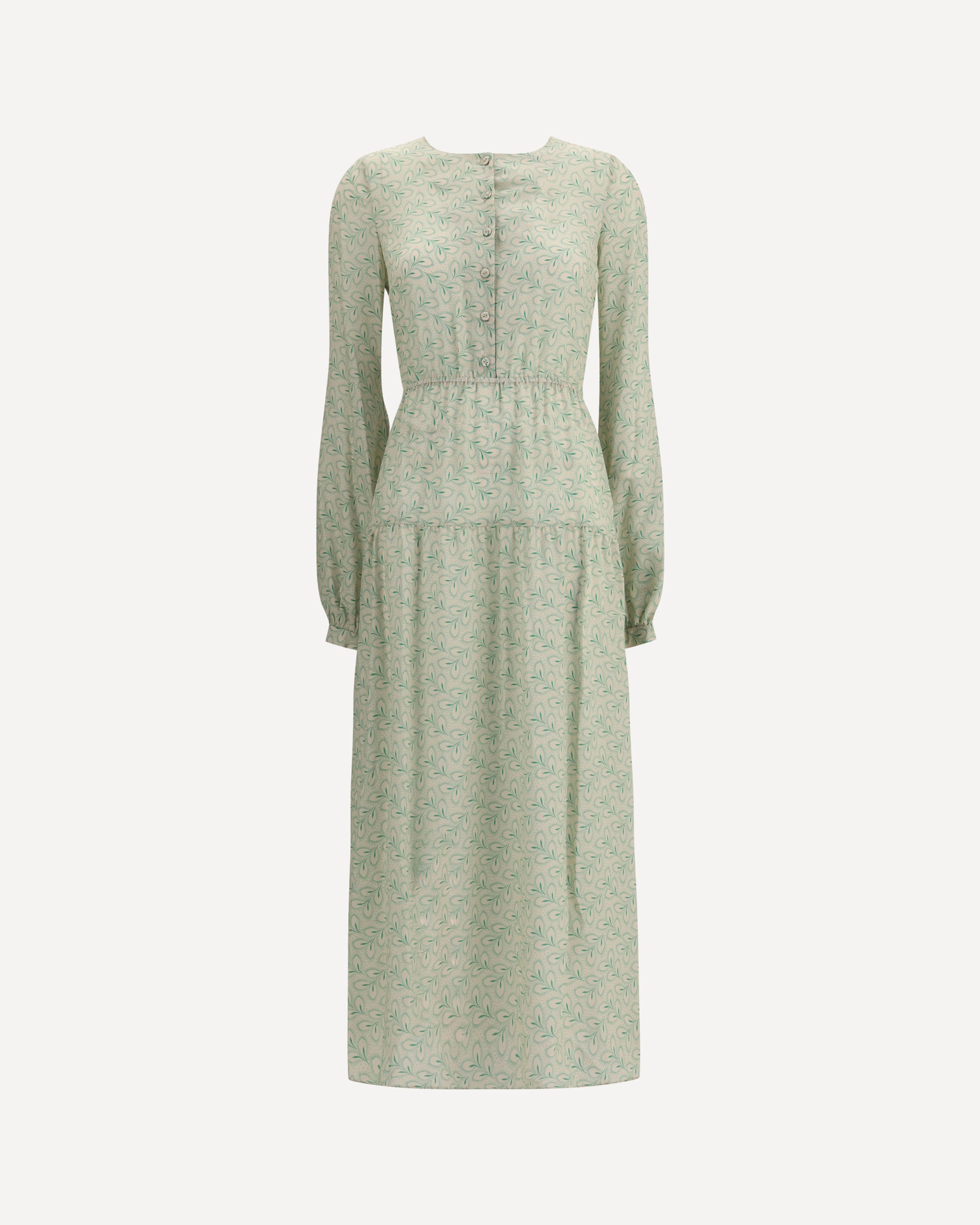 Kristina Ti's Silk long Dress is a fluid and feminine garment enhanced by a delicate foliage print. The mid-bust button closure gives a discreet and elegant touch, while the elasticized waist enhances the silhouette naturally.