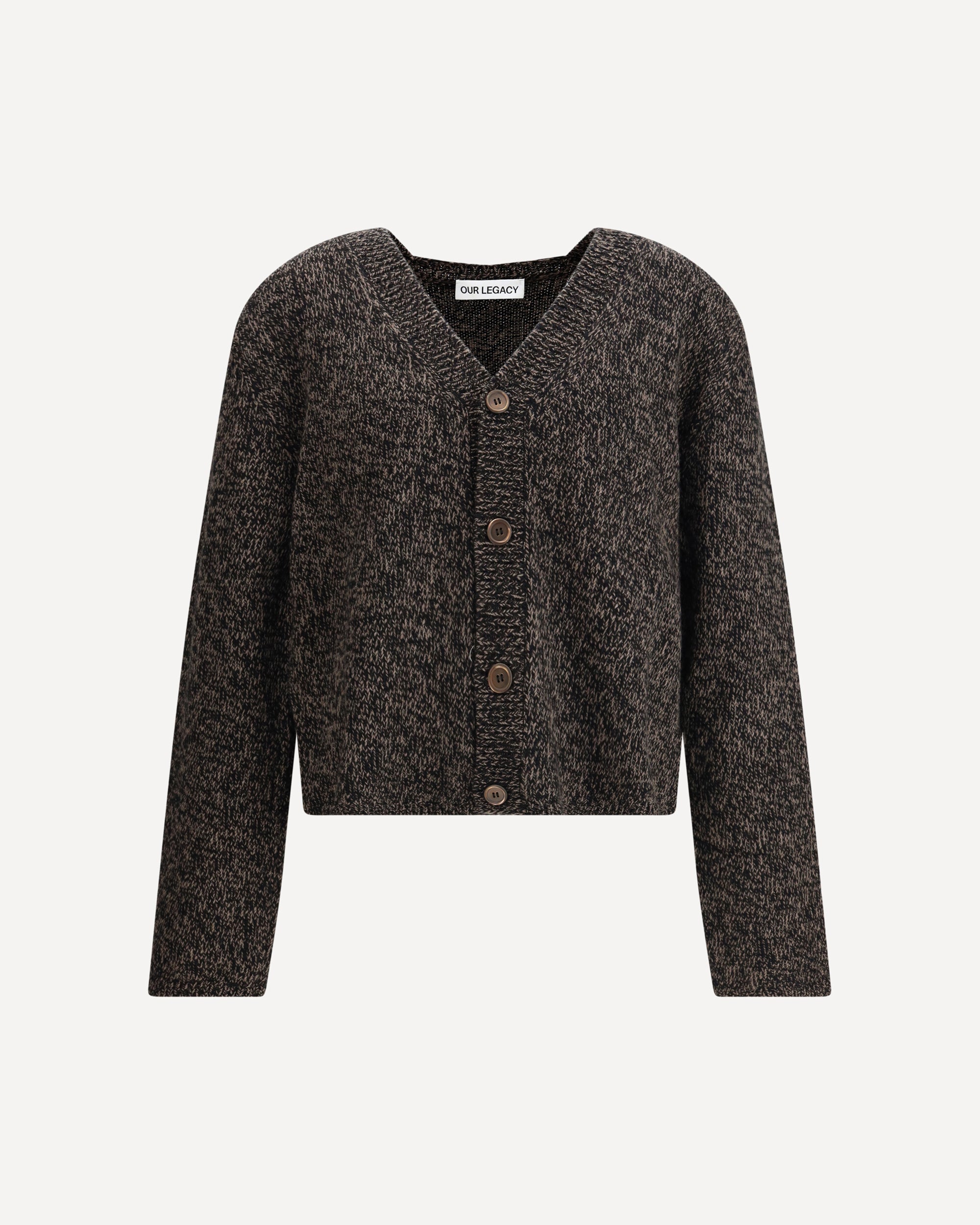 The Academy Cardigan in Bear Twist Mouline Wool is crafted from premium Italian superfine Yarn. Featuring a relaxed fit with dropped shoulders, it has a V-neck collar, ribbed placket with mother-of-pearl buttons, and ribbed cuffs and hem. The natural properties of the yarn allow the garment to shape to the wearer and naturally evolve over time, completing the unique design of the cardigan.”