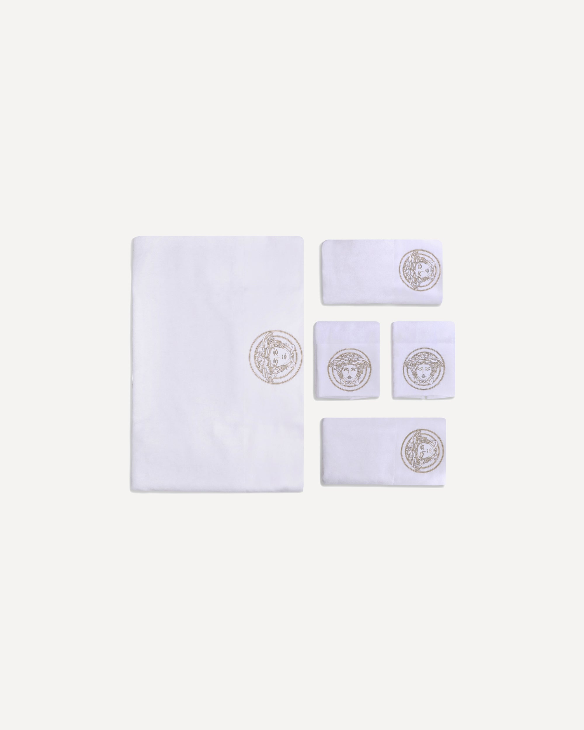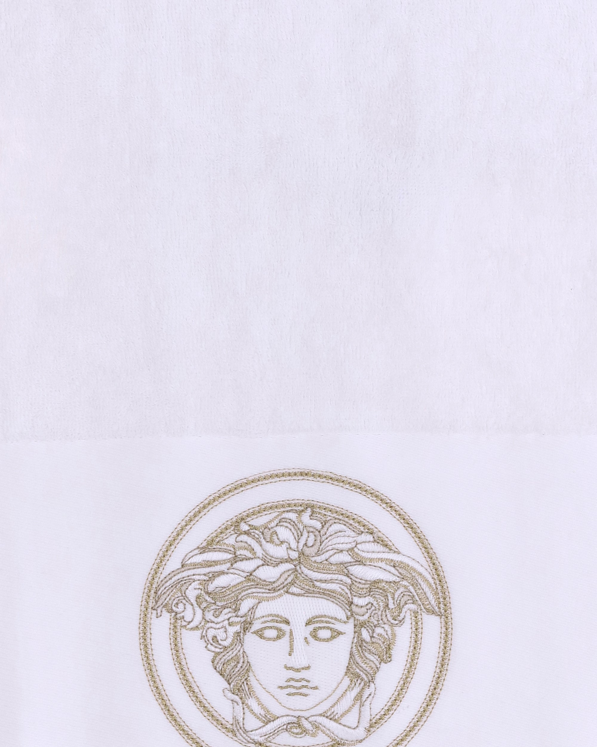 Versace's Bath Towel Set is a luxurious and distinctive addition to any bathroom. This exclusive set includes five soft terry towels, each embellished with the iconic Medusa embroidery, the unmistakable symbol of the fashion house.