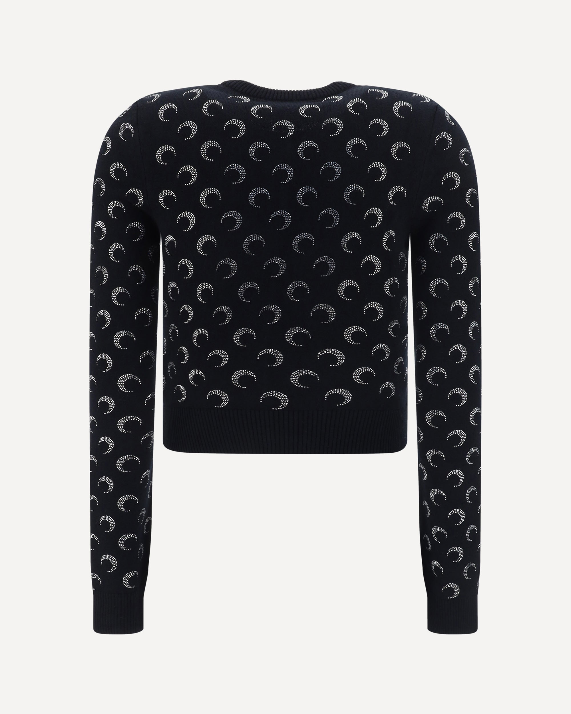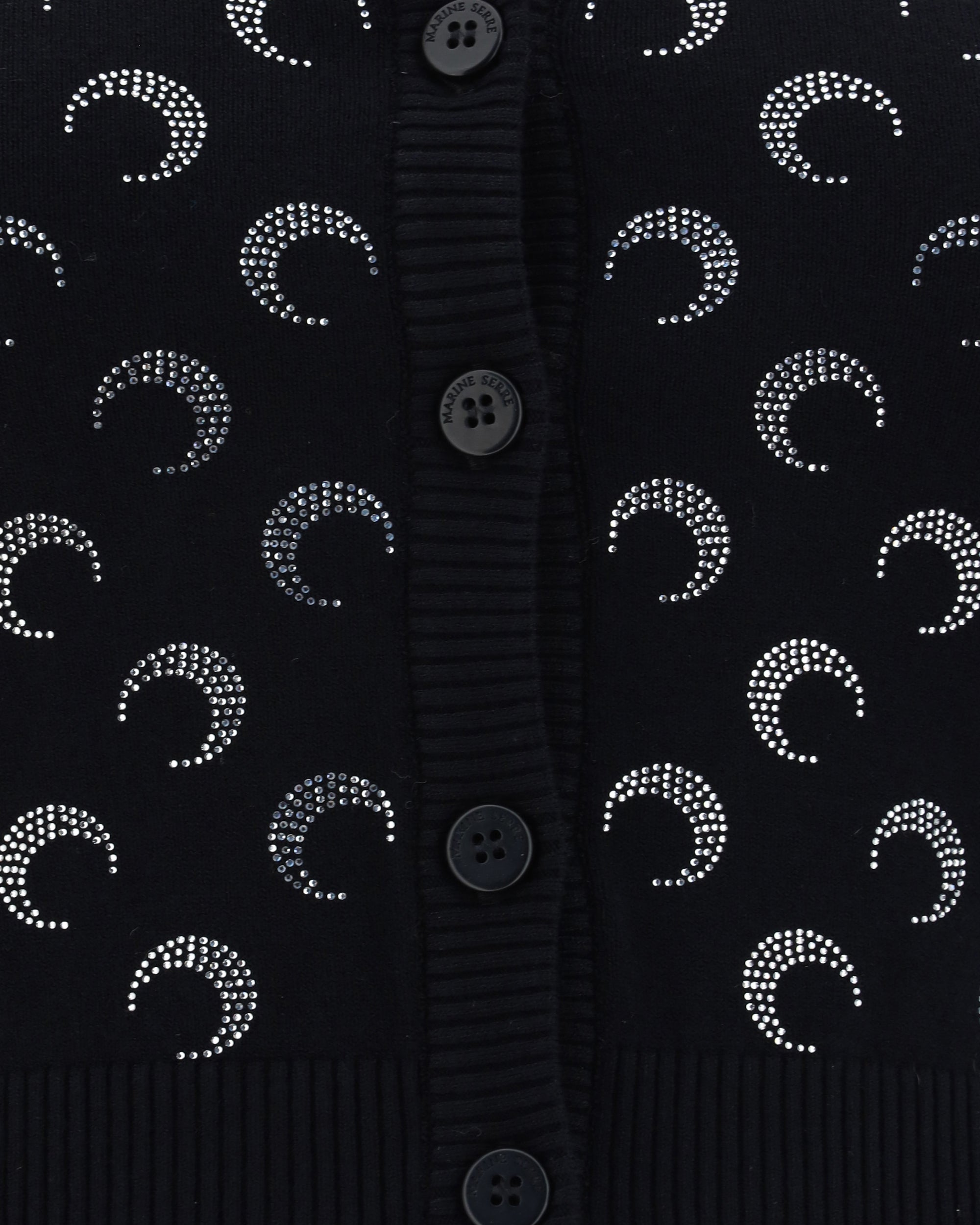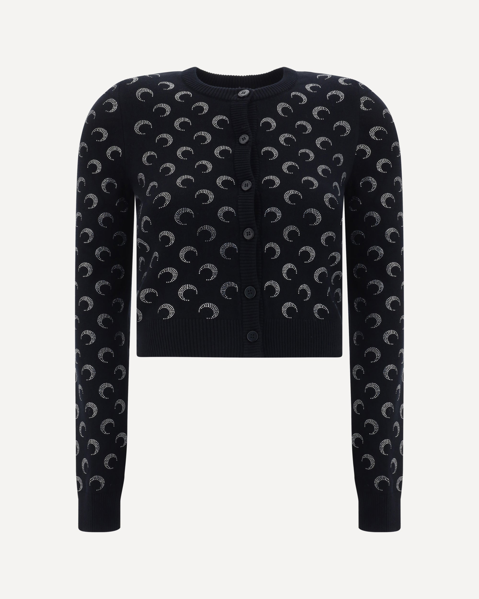 Cardigan by Marine Serre, ribbed crew neck, button front closure, ribbed hem, ribbed cuffs, iconic all-over contrasting brand logo, slim fit.