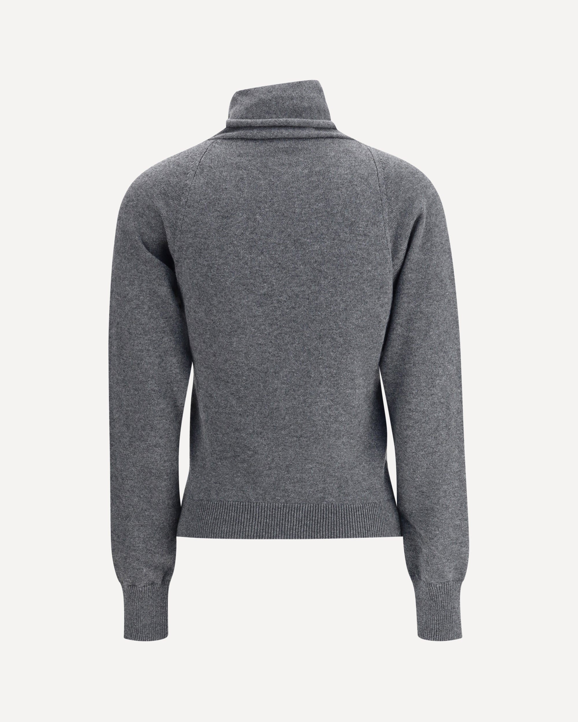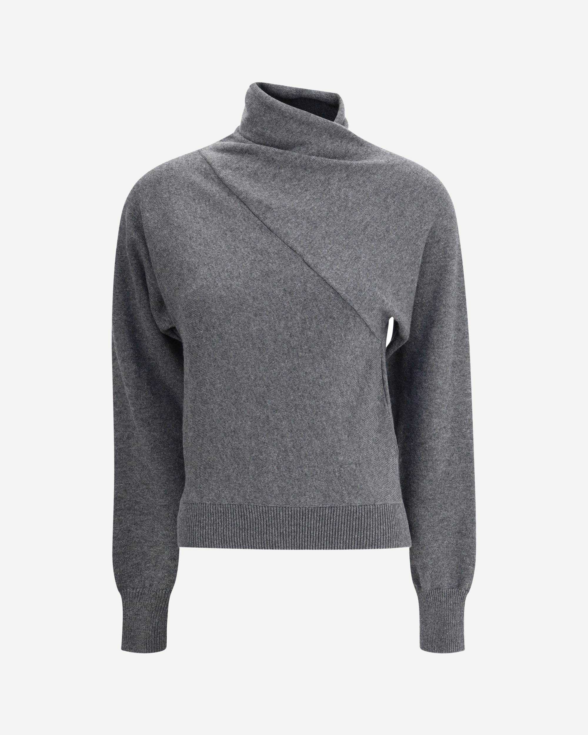Tom Ford's Cashmere Sweater is a luxurious, wrap-around garment. Featuring a draped high neck, it has a ribbed hem and cuffs that enhance the fit, offering comfort and timeless elegance. Perfect for adding a sophisticated touch to any look.