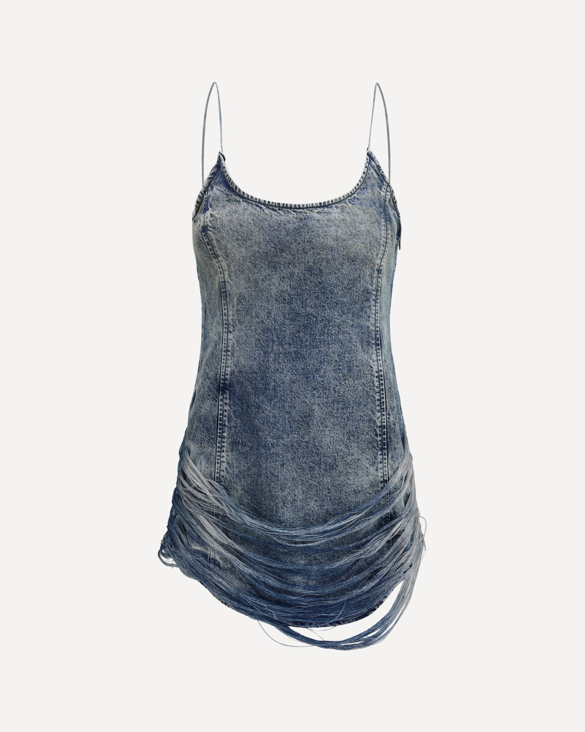 Diesel's De-dra-short-fsg cotton mini Dress is a bold denim design featuring thin straps and an intriguing neckline on both front and back. The rounded hem and zipper closure on the side panel add a modern and practical touch. Stitched bangs on the side panels create an iconic trompe l'oeil effect, blurring the lines between 2D and 3D for a visually striking result. With a slim fit, this dress combines contemporary elegance with an innovative and dynamic design.