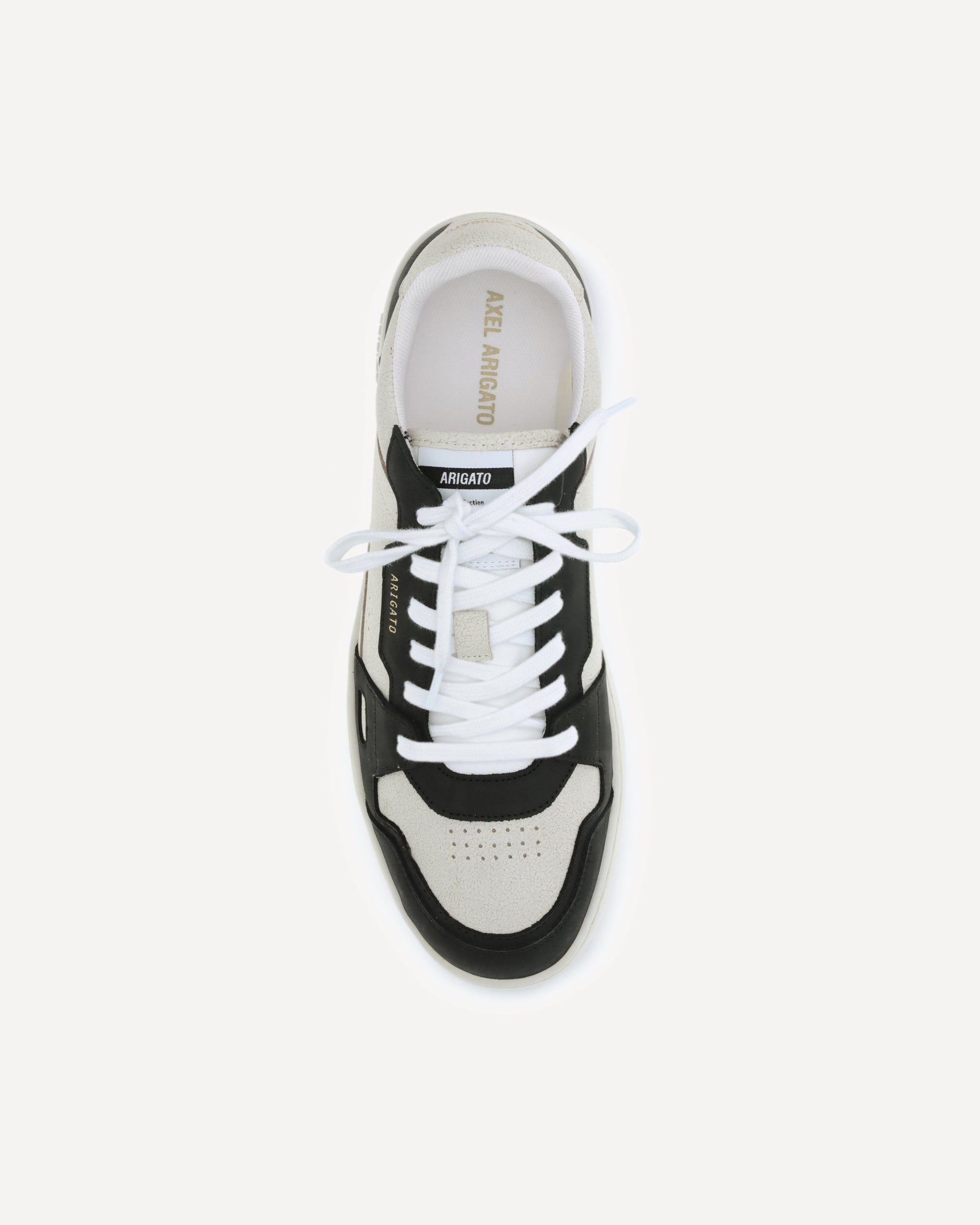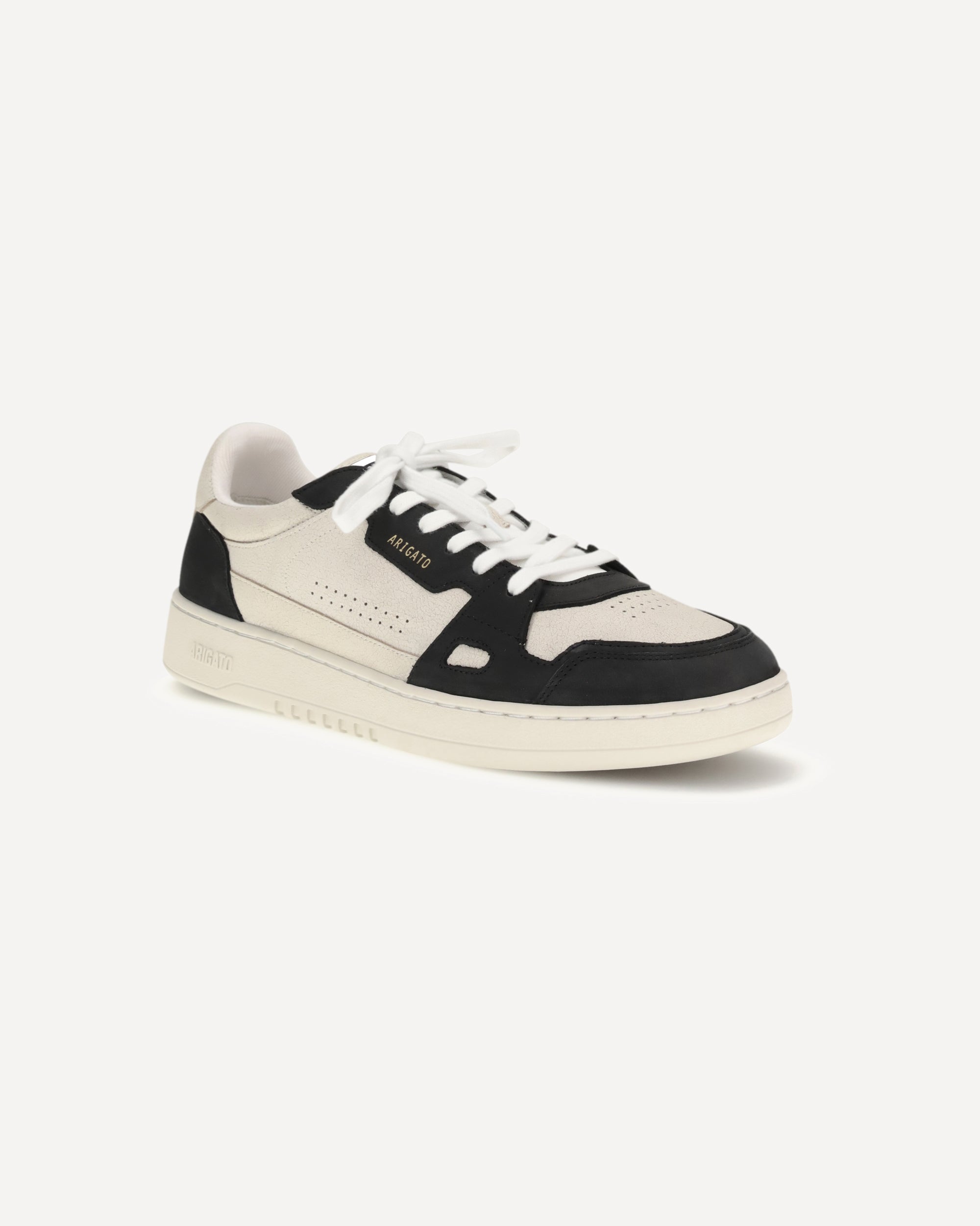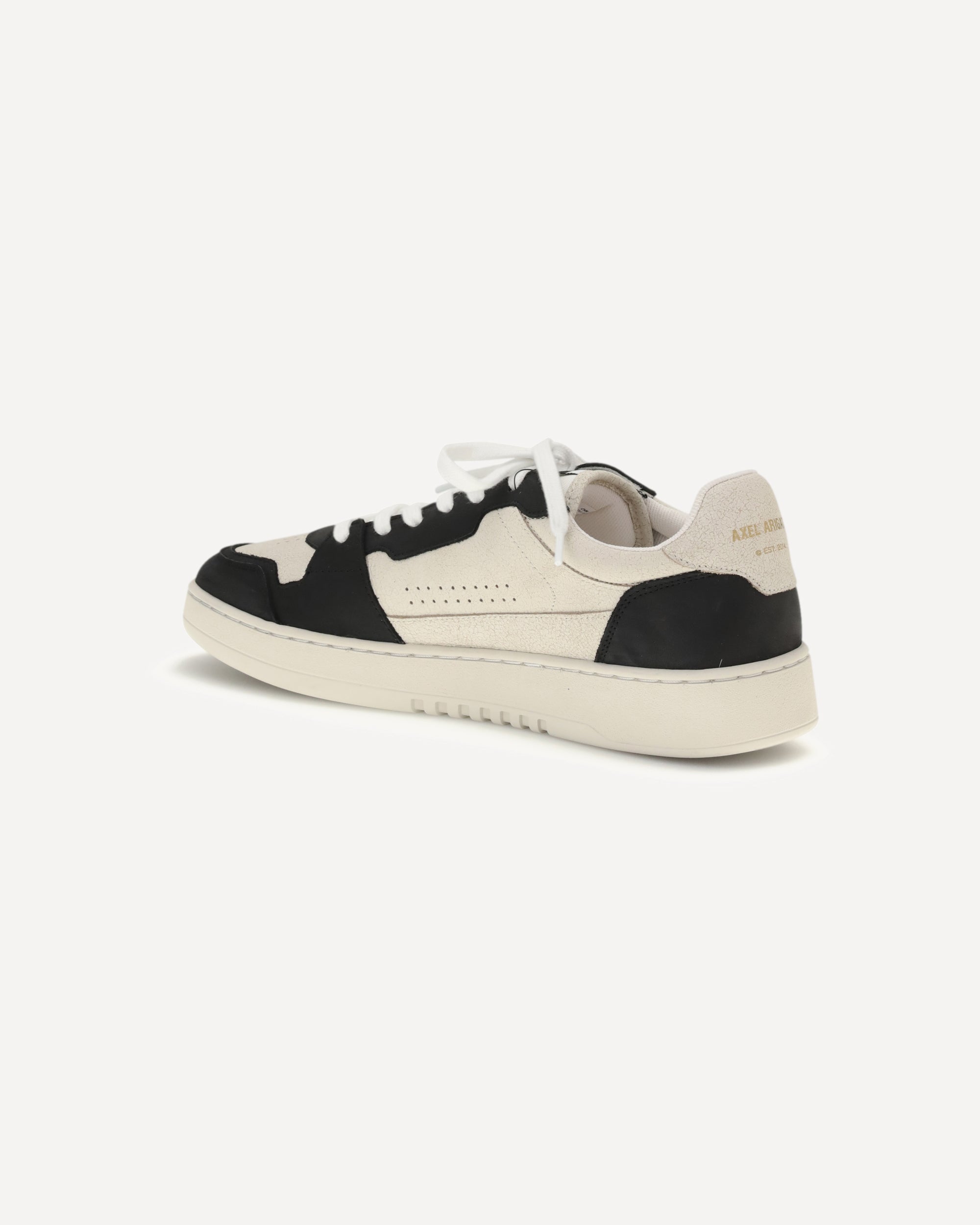 The leather Dice Lo Sneakers by Axel Arigato combine a modern look with sophisticated details. They feature a round toe, flat sole and front lace-up closure, while the contrasting suede panel design creates visual dynamism. Perforated details on the toe and sides add lightness, complemented by the brand's iconic pressure-printed signature on the side panel, which lends a distinctive and recognizable touch.