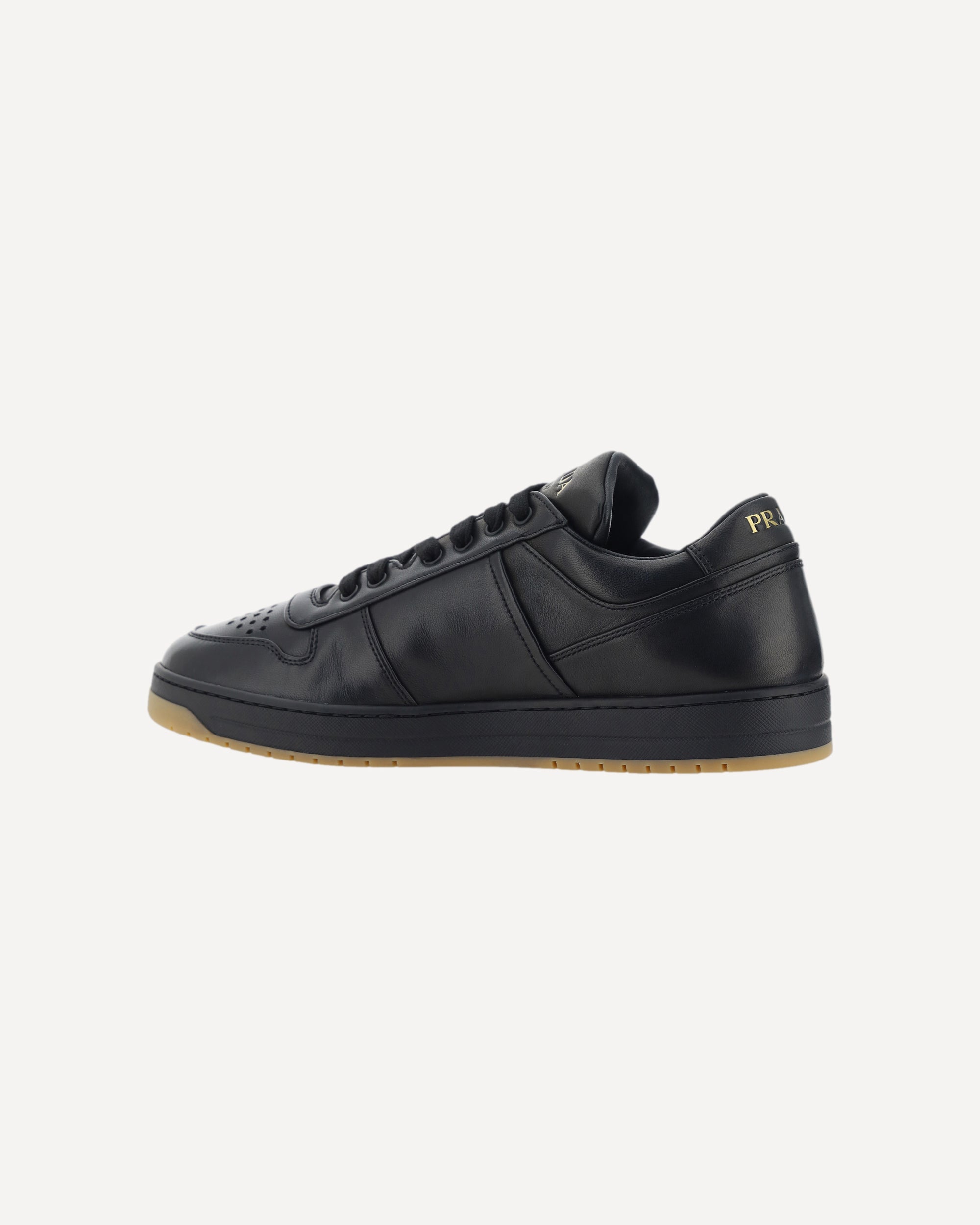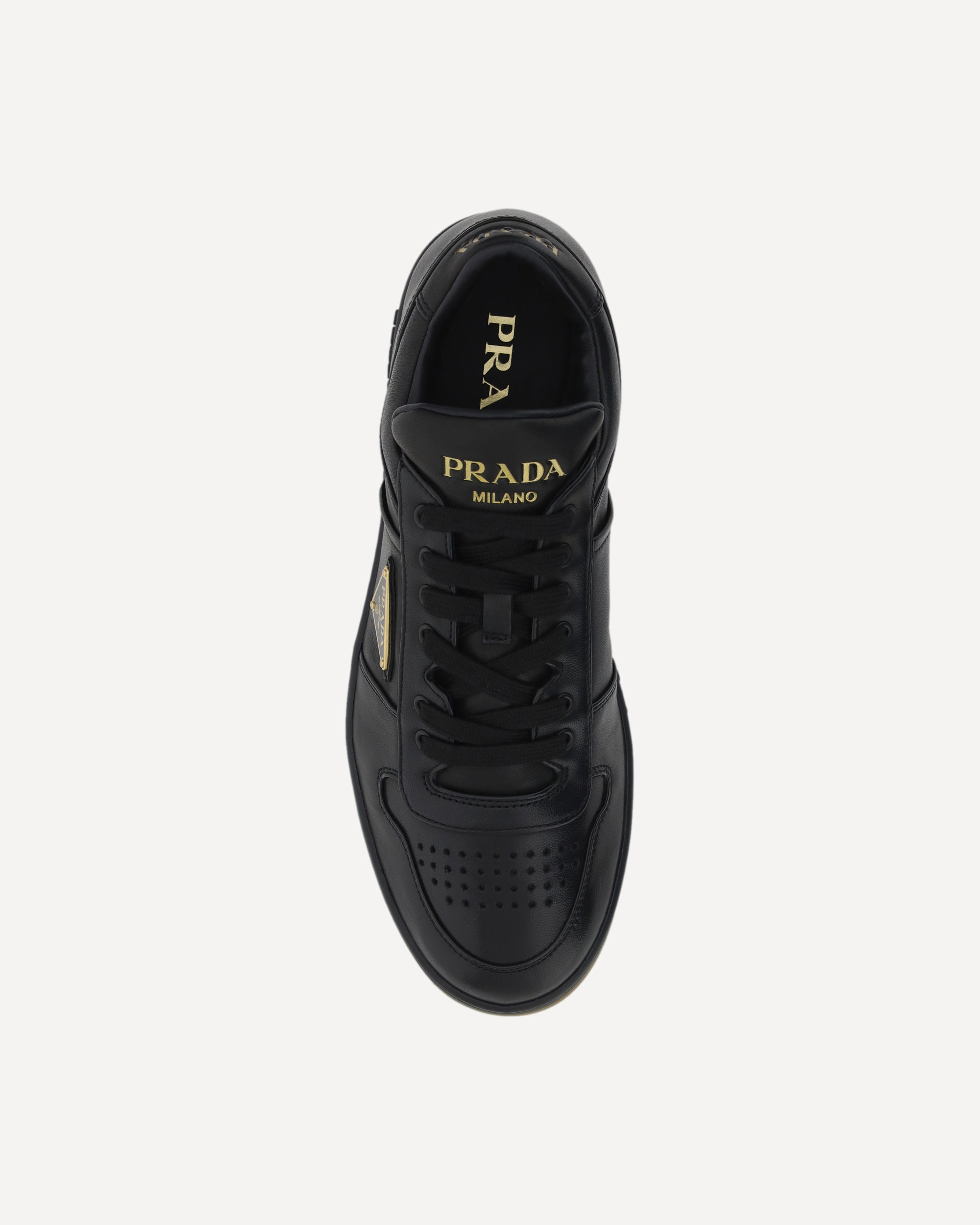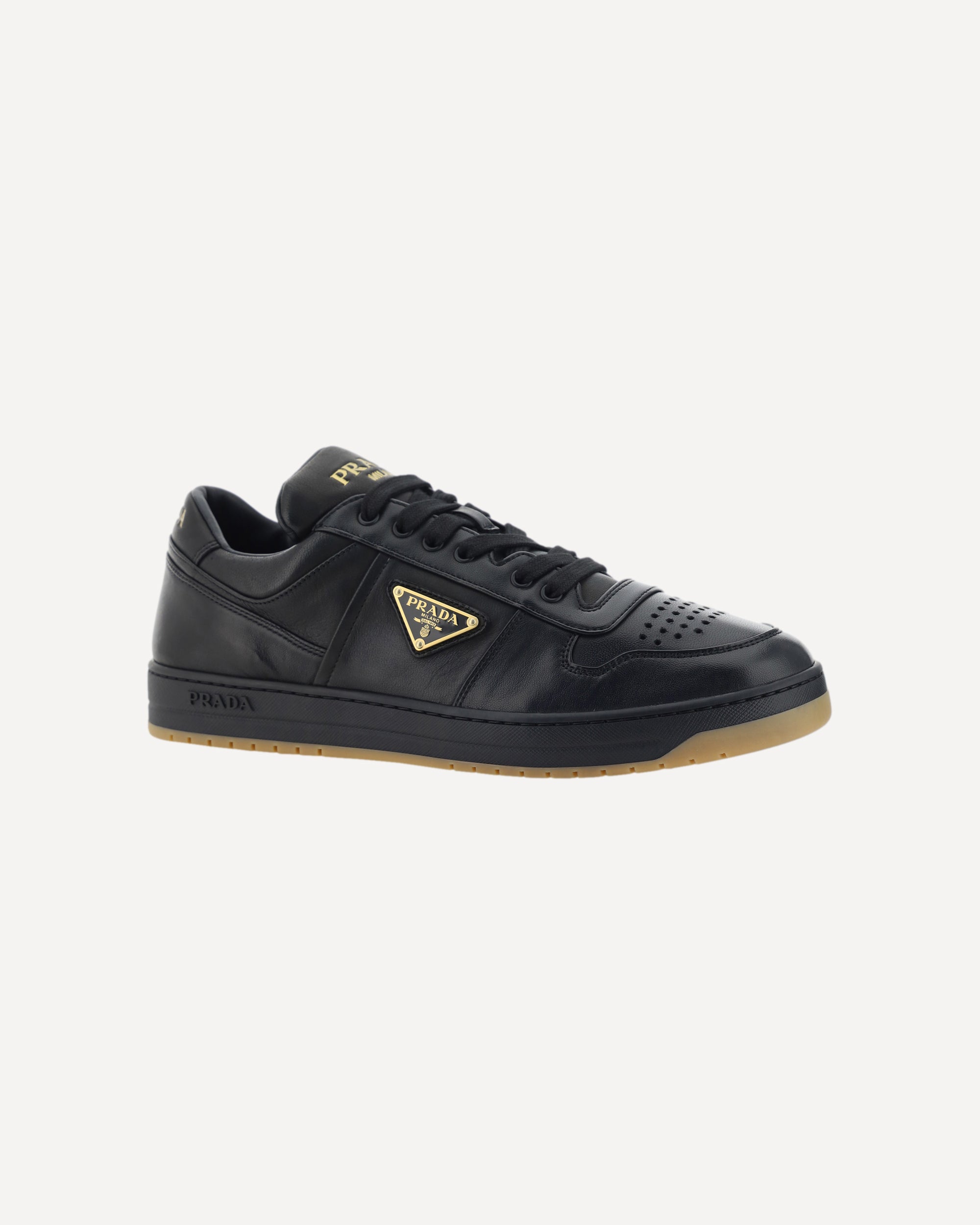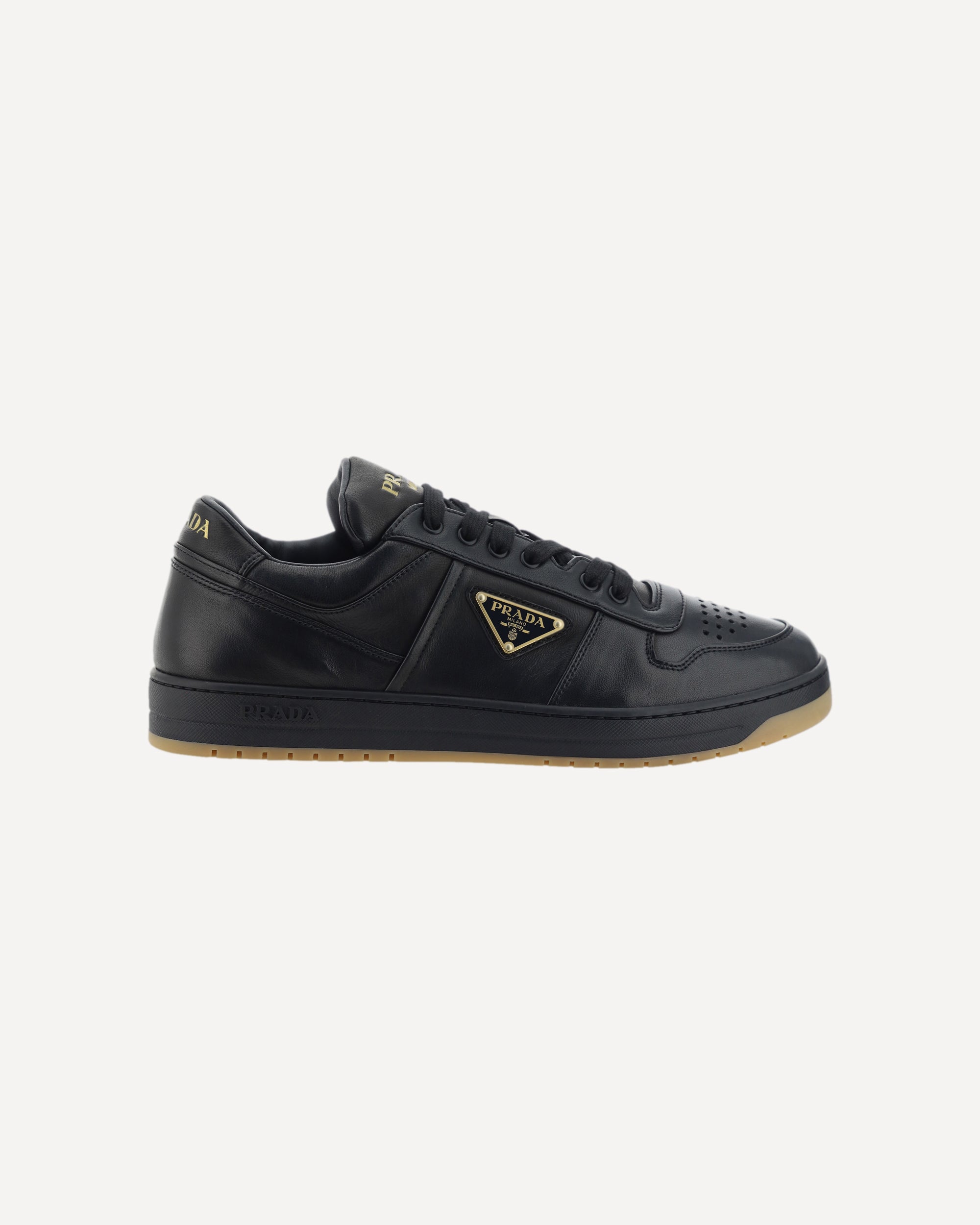 The Downtown leather Sneakers by Prada combine sporty lines and iconic details in a refined design. Featuring a paneled construction, they feature a lace-up front closure, perforated round toe and flat sole. The iconic triangular enameled Prada logo plaque decorates the outer side panel, while the heel and tongue are also branded. An essential yet distinctive model, perfect for an urban and elegant style.