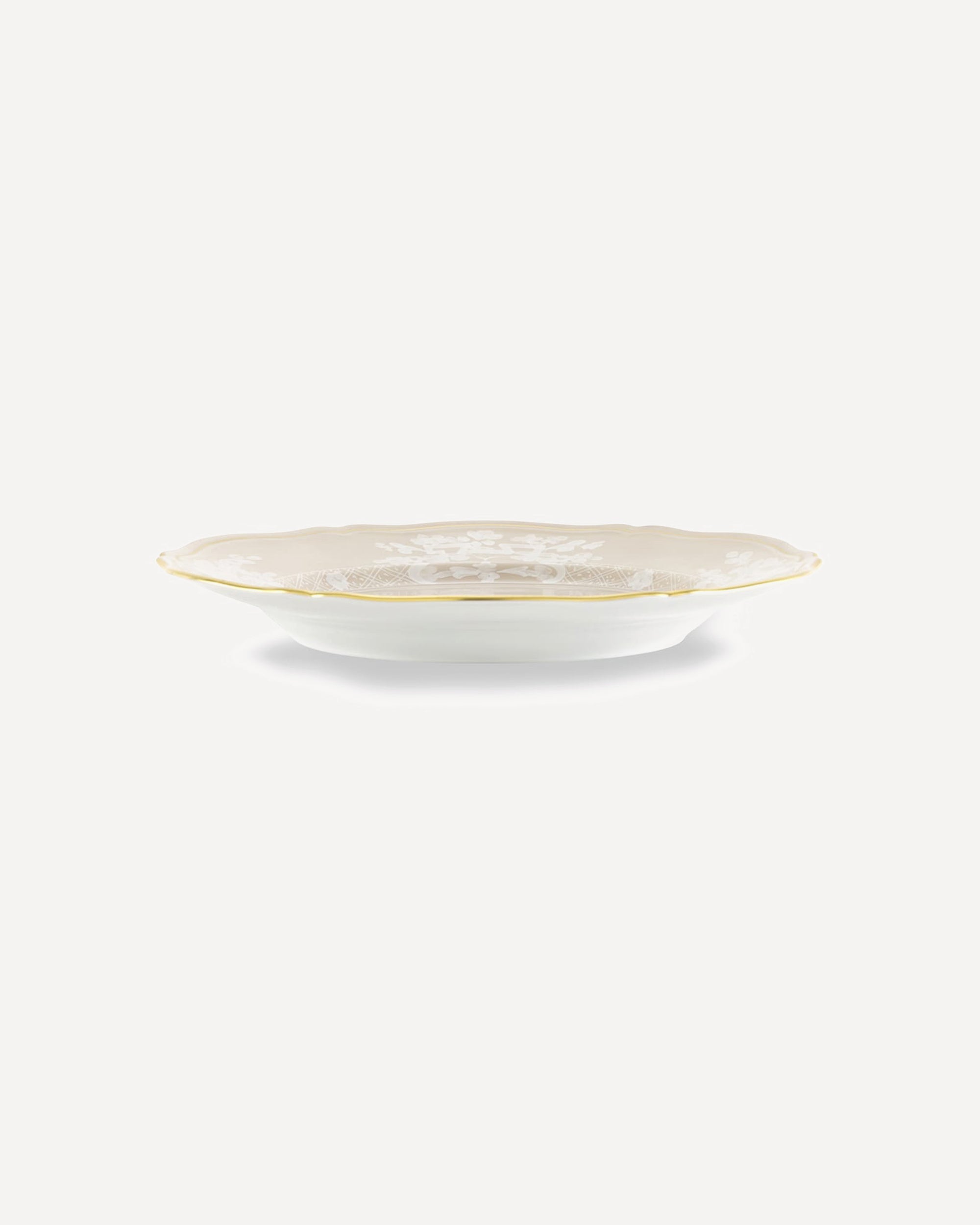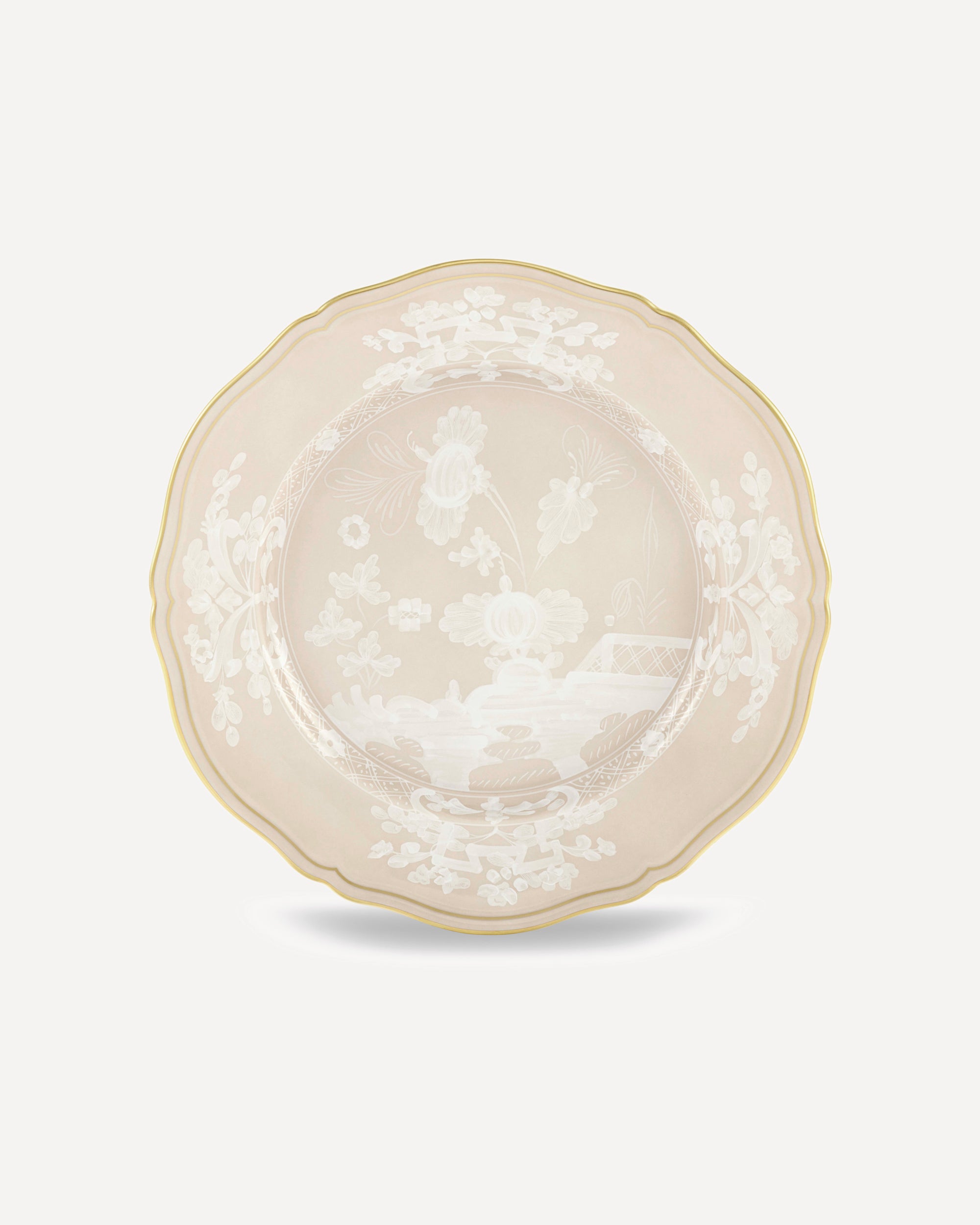 The porcelain flat Plate by the Oriente Italiano Collection is the perfect expression of the balance between traditional craftsmanship and timeless design. Made according to the excellence of Italian craftsmanship, it lends sophistication and character to any mise en place. The floral ornament, inspired by the delicate Carnation motif - a symbol of passion and artistic dedication - enriches the plate with a poetic and precious touch. An iconic element that transforms every table into an aesthetic and sensory experience.