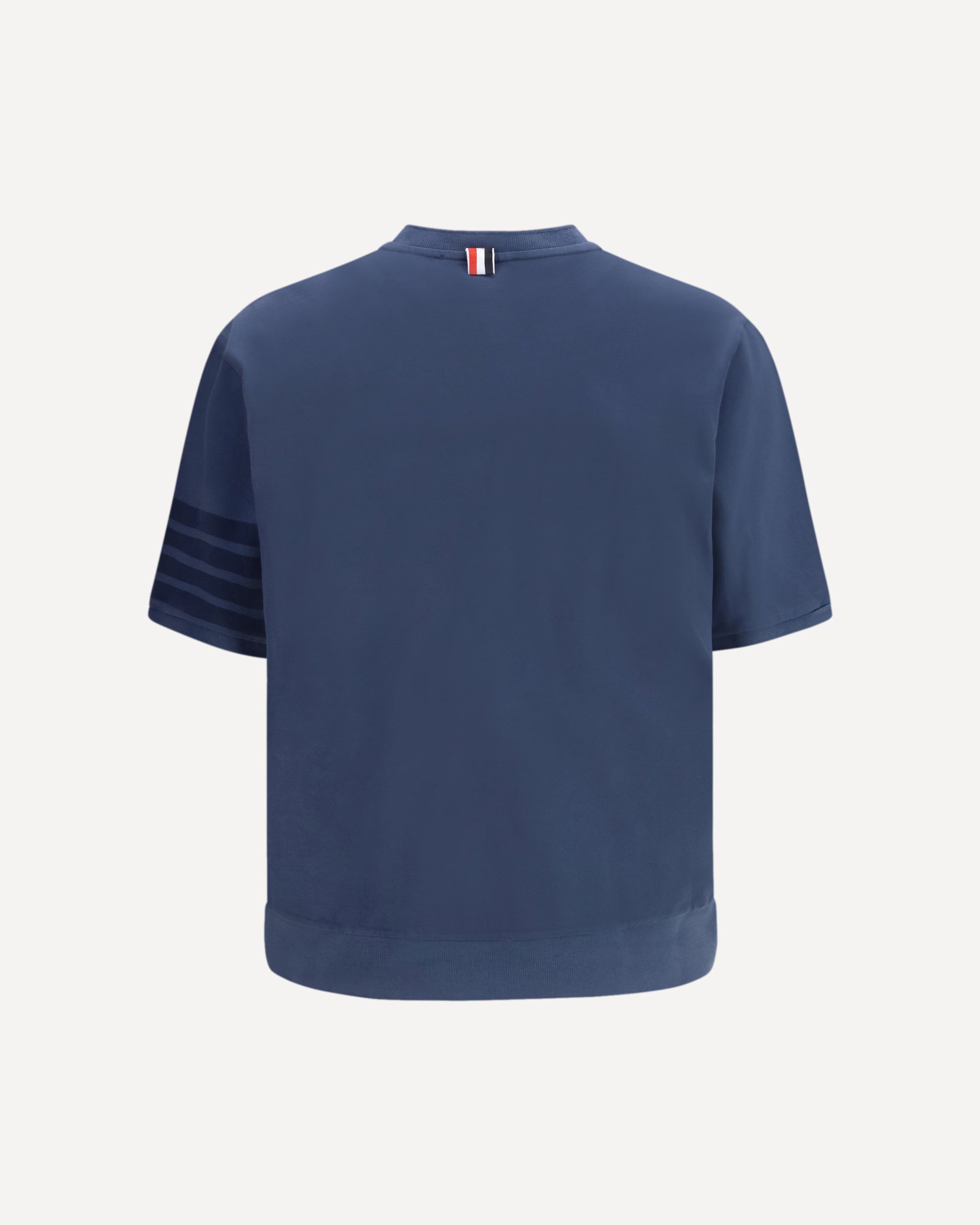 The 4-Bar cotton jersey T-shirt by Thom Browne reflects the brand’s disciplined aesthetic through graphic details and refined proportions. The crew neck creates a clean line, while the elasticated hem adds structure to the silhouette. The 4-Bar motif and the patch applied on the lower left side with the brand name and signature information complete the piece with an iconic and recognizable touch.