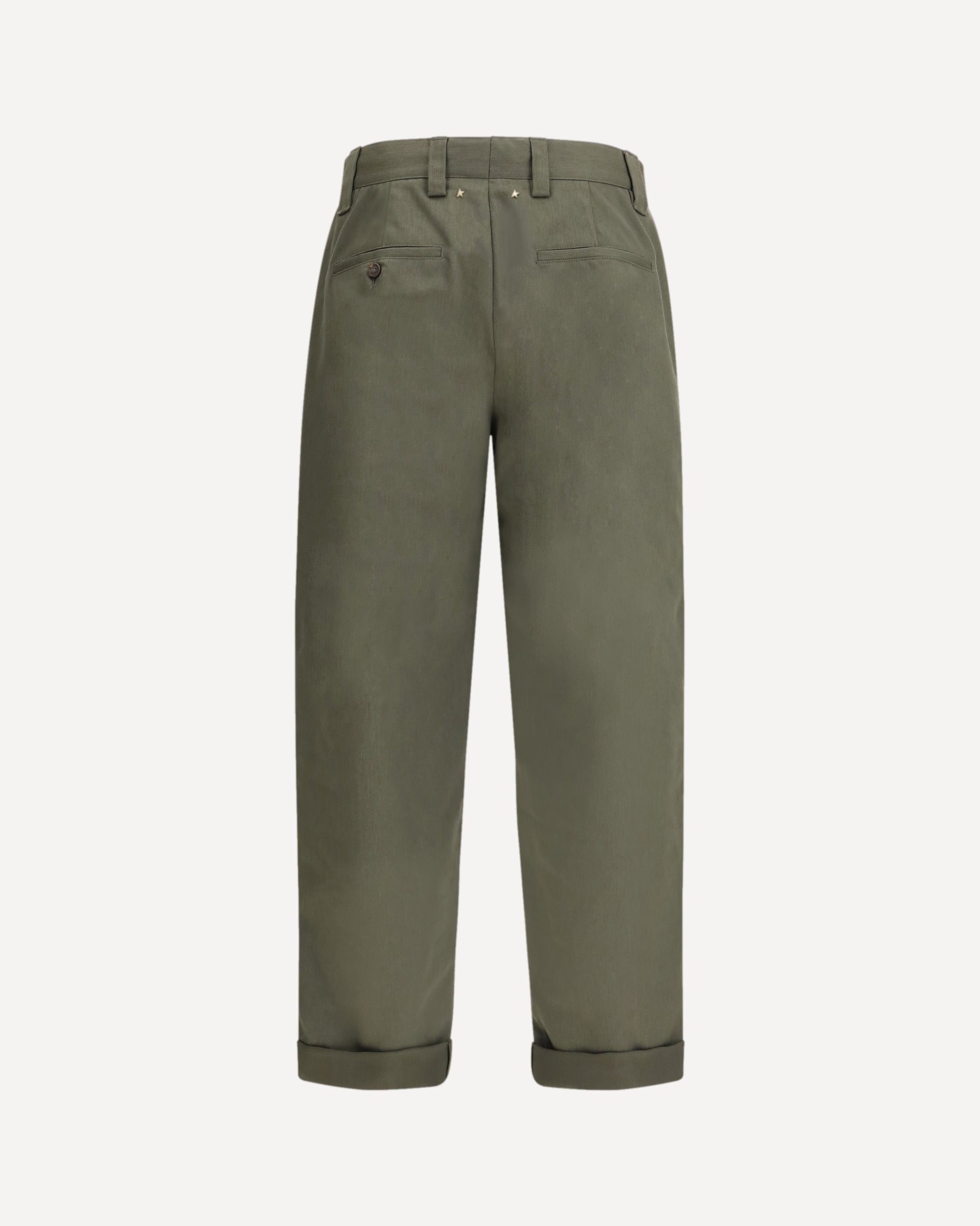 The chino Trousers by Golden Goose from the Golden Collection embody timeless elegance, designed to accompany you every day. Crafted in a khaki beige tone, they feature a straight leg, two front pockets, and additional back pockets. The gold double star on the back adds a distinctive touch to the clean and versatile design.