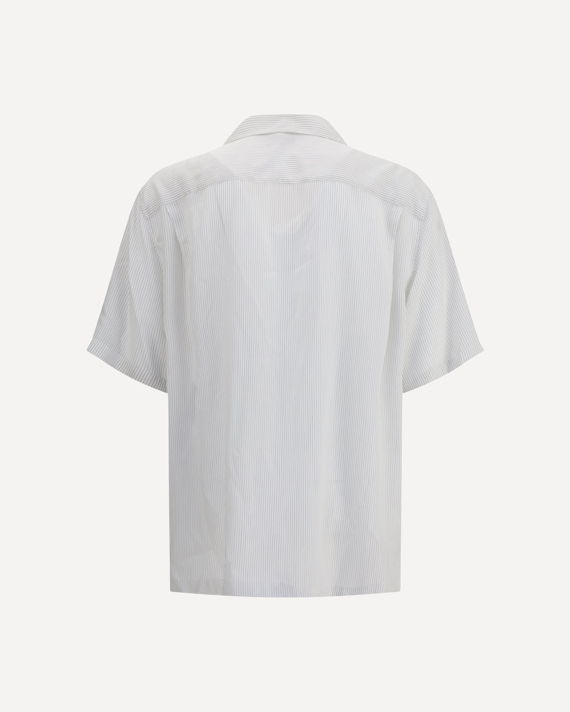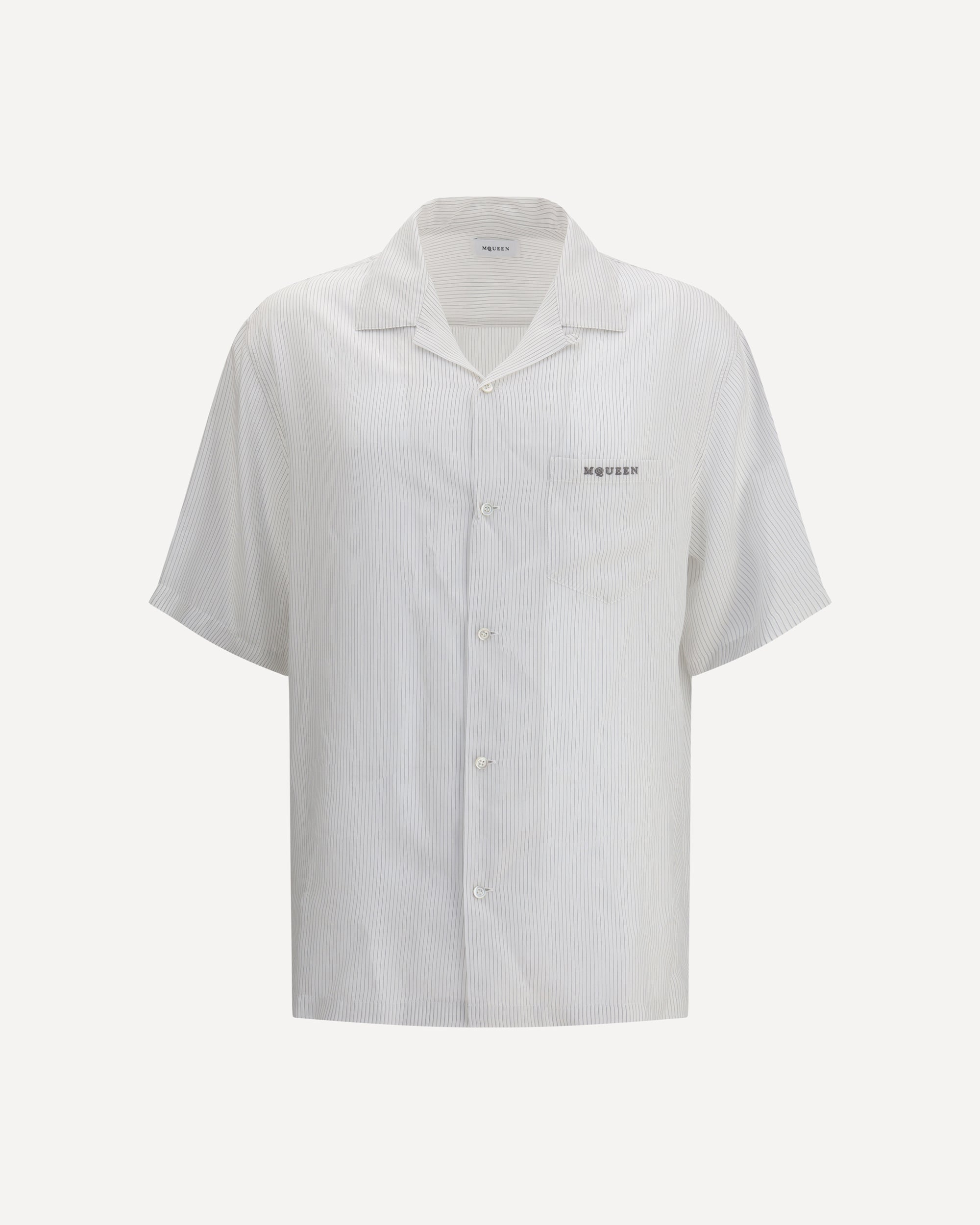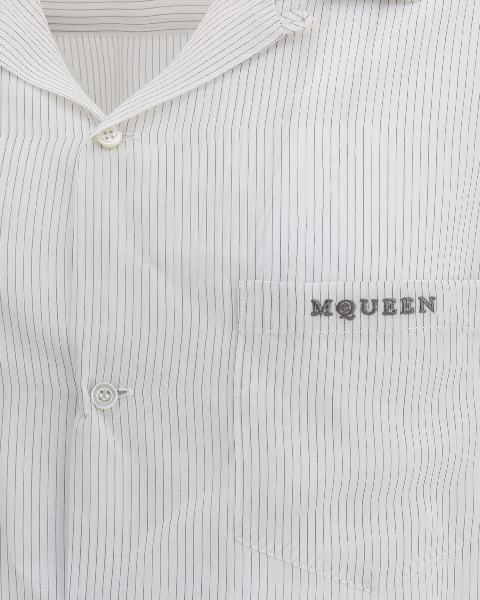 Alexander McQueen's thin striped Shirt reinterprets the classic Hawaiian pattern with elegance and attention to detail. Featuring a front button closure and a patch pocket on the chest, it is embellished with the embroidered logo that signs the garment with discreet sophistication. A perfect blend of relaxed fit and sophistication.