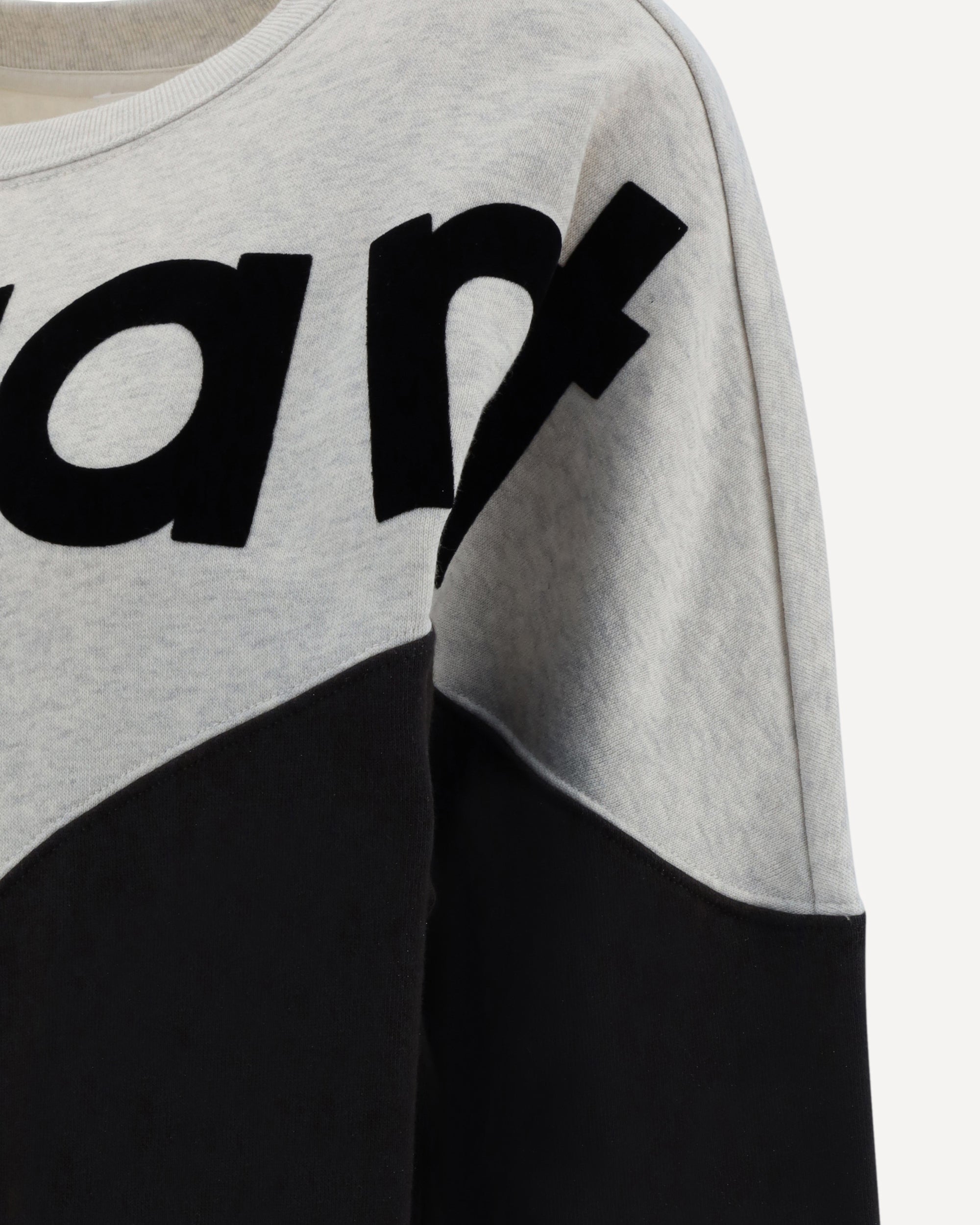 The Cotton Sweatshirt by Marant Étoile is a casual and comfortable piece, featuring a ribbed crew neck and ribbed cuffs and hem, ensuring a comfortable and practical fit. The iconic monogram