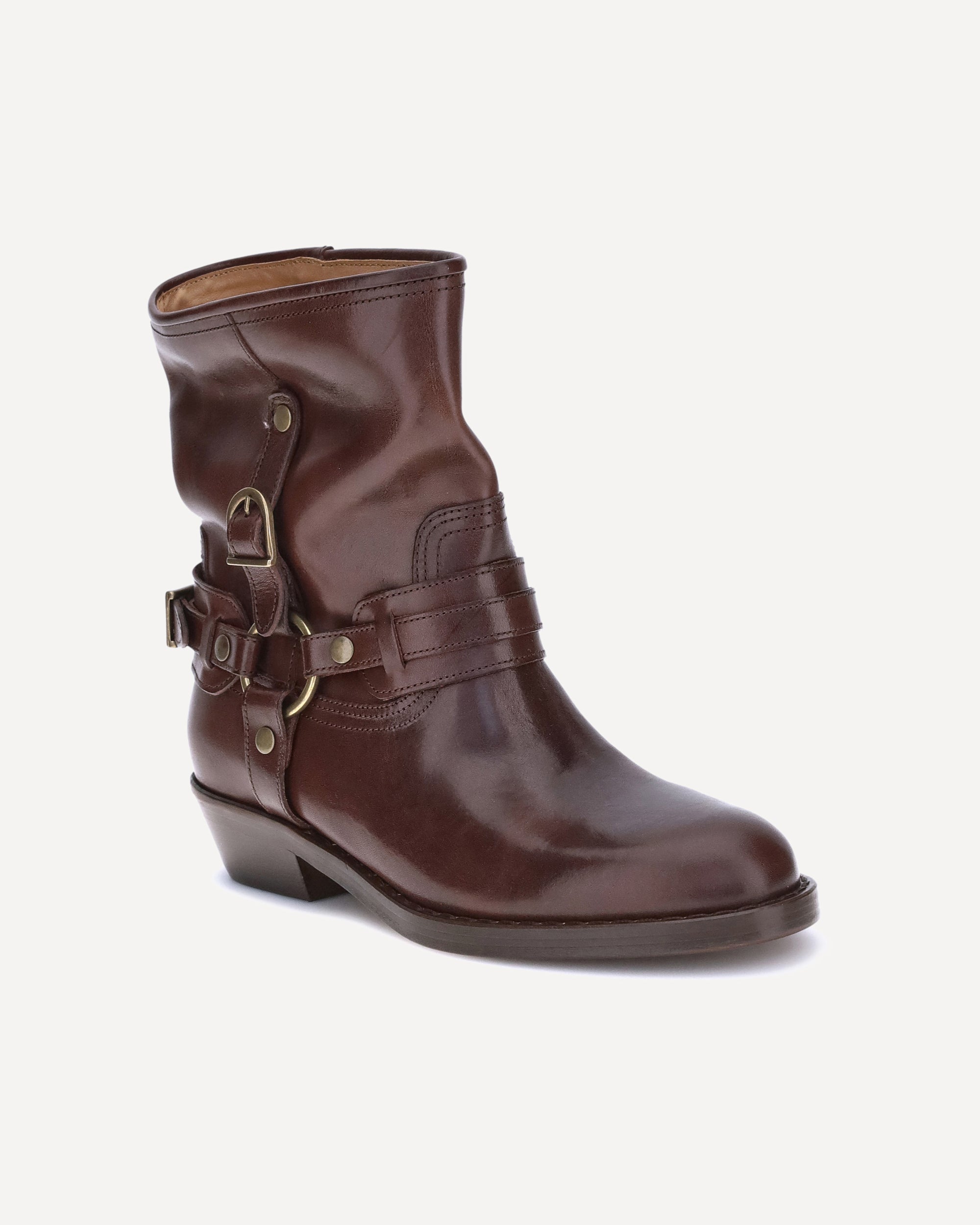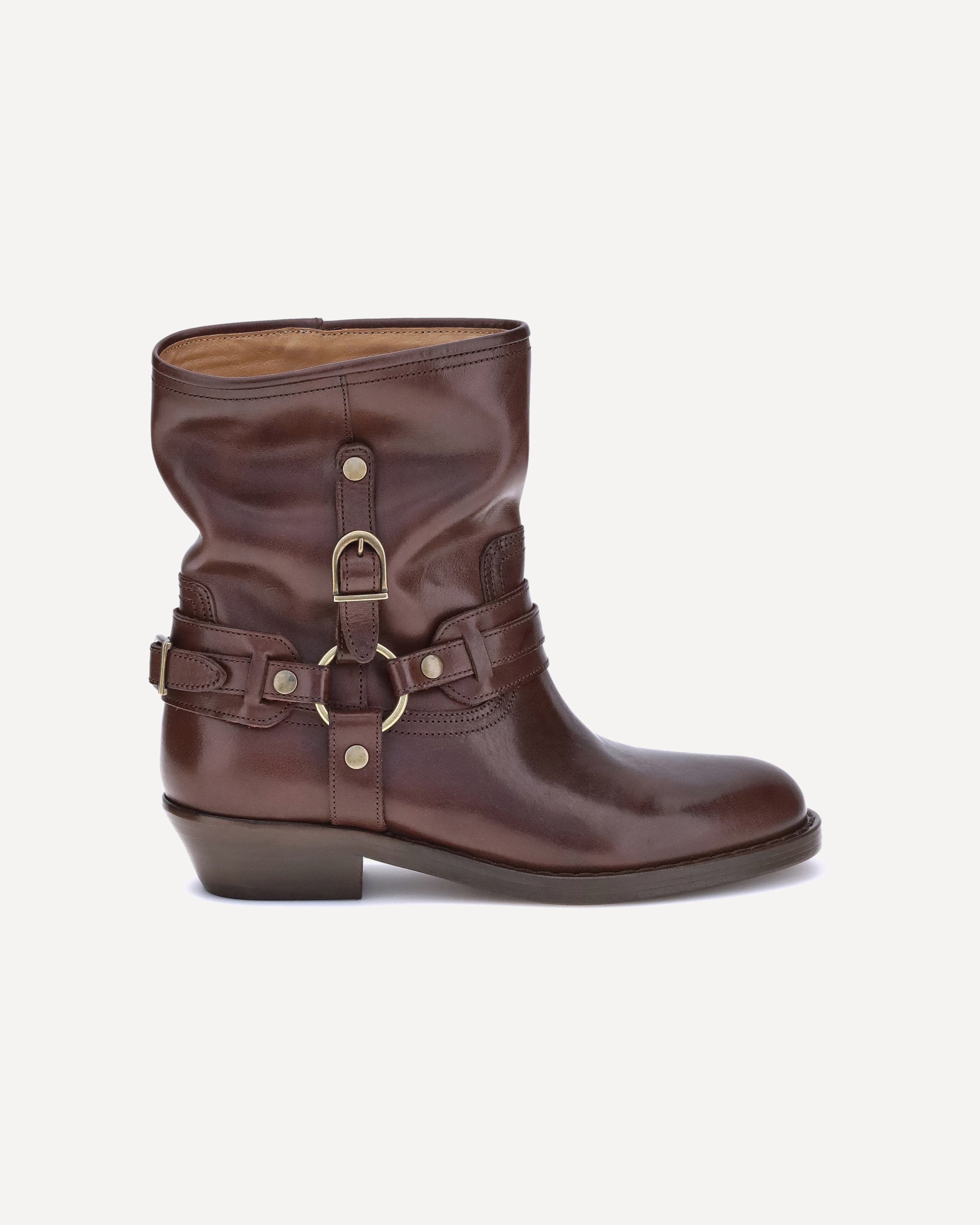 Isabel Marant's Heiko leather Ankle Boots are a sleek slip-on style with a round toe and a leather block heel that adds stability and style. The decorative buckle detail around the ankle adds a distinctive touch, making these boots a versatile and sophisticated accessory, perfect for any occasion.