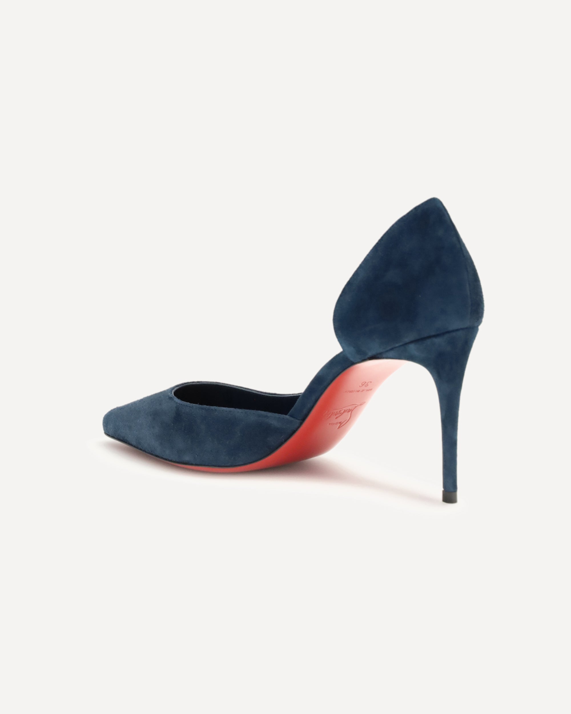The Iriza Pumps by Christian Louboutin are an icon of elegance and femininity. Characterized by a refined stiletto heel that slims the silhouette, they feature an almond toe that lends a sophisticated and timeless touch. The asymmetrical silhouette slightly uncovers the inner side of the foot, adding sensuality to the shoe. The brand's unmistakable signature red sole makes each step recognizable, while the insole is embellished with the golden logo, a symbol of exclusivity and craftsmanship.