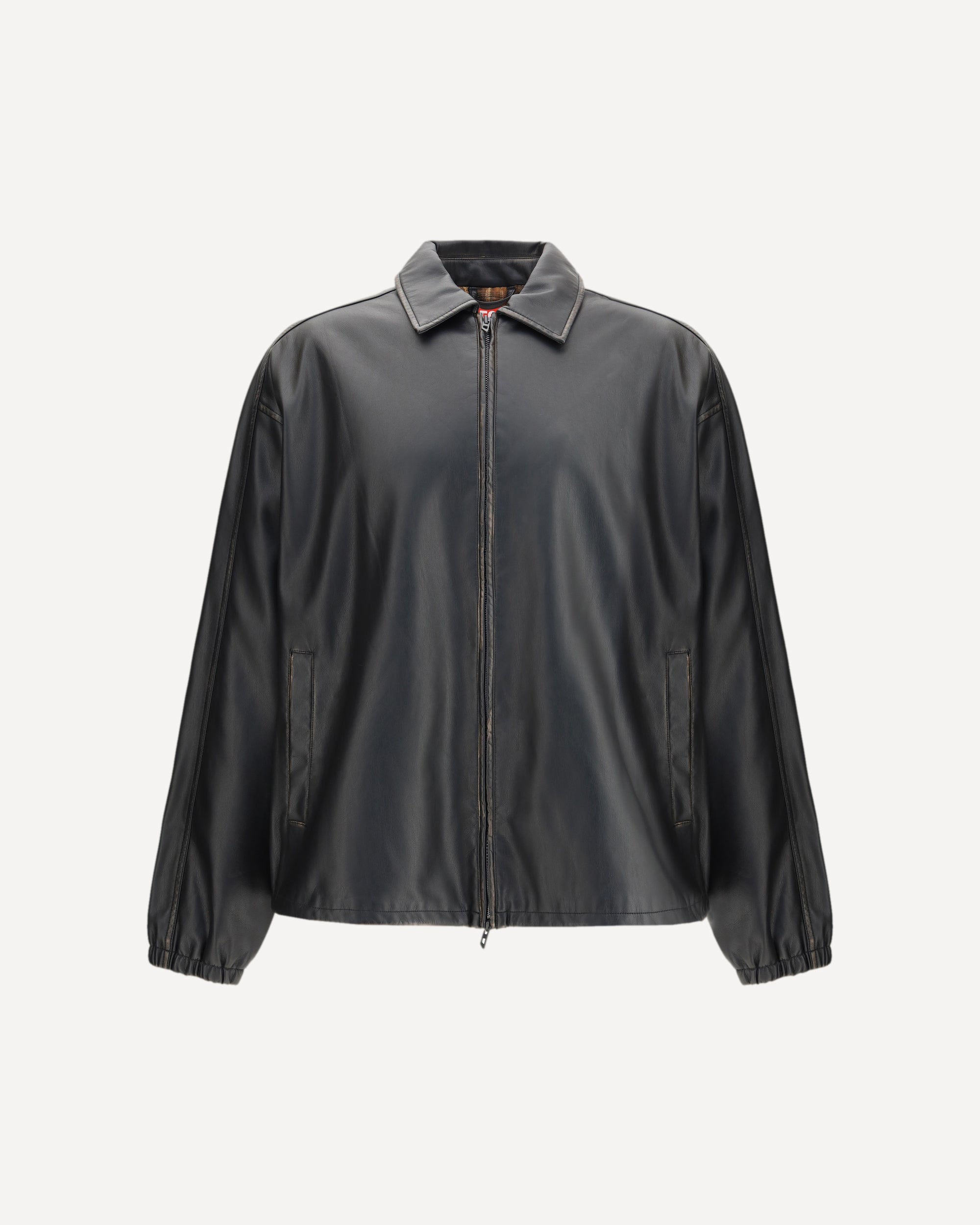 The J-Ake Jacket by Diesel is crafted from black technical fabric featuring a hand-brushed treatment that lightens the edges, creating an authentic lived-in look. Its relaxed fit can be adjusted with an elastic drawstring hem, while the contrast plaid flannel lining adds a bold, signature touch. Finished with an invisible zip closure, welt pockets, and elastic cuffs, it blends urban attitude with functional design.