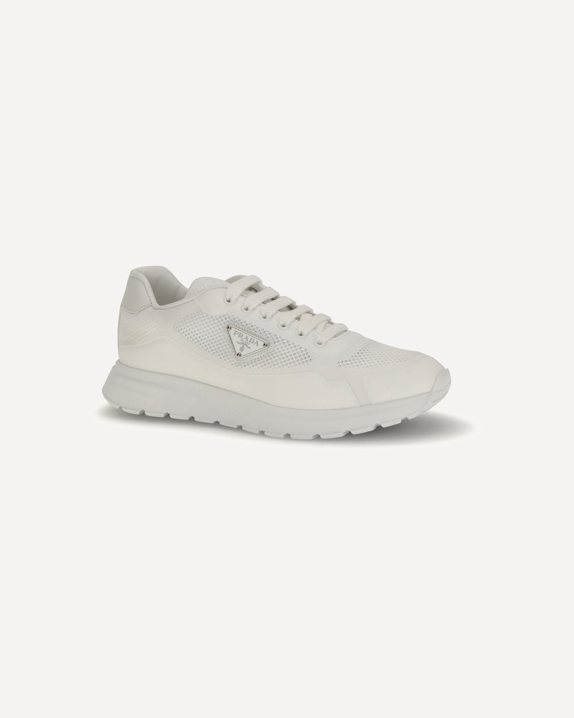 The Prax 2.0 Sneakers by Prada combine contemporary design and iconic details. Made of technical fabric and mesh, they are embellished with the unmistakable enameled metal triangle logo. The polyester lace-up closure ensures a secure fit, while the removable leather-covered footbed ensures comfort and breathability. An urban style, signed Prada.