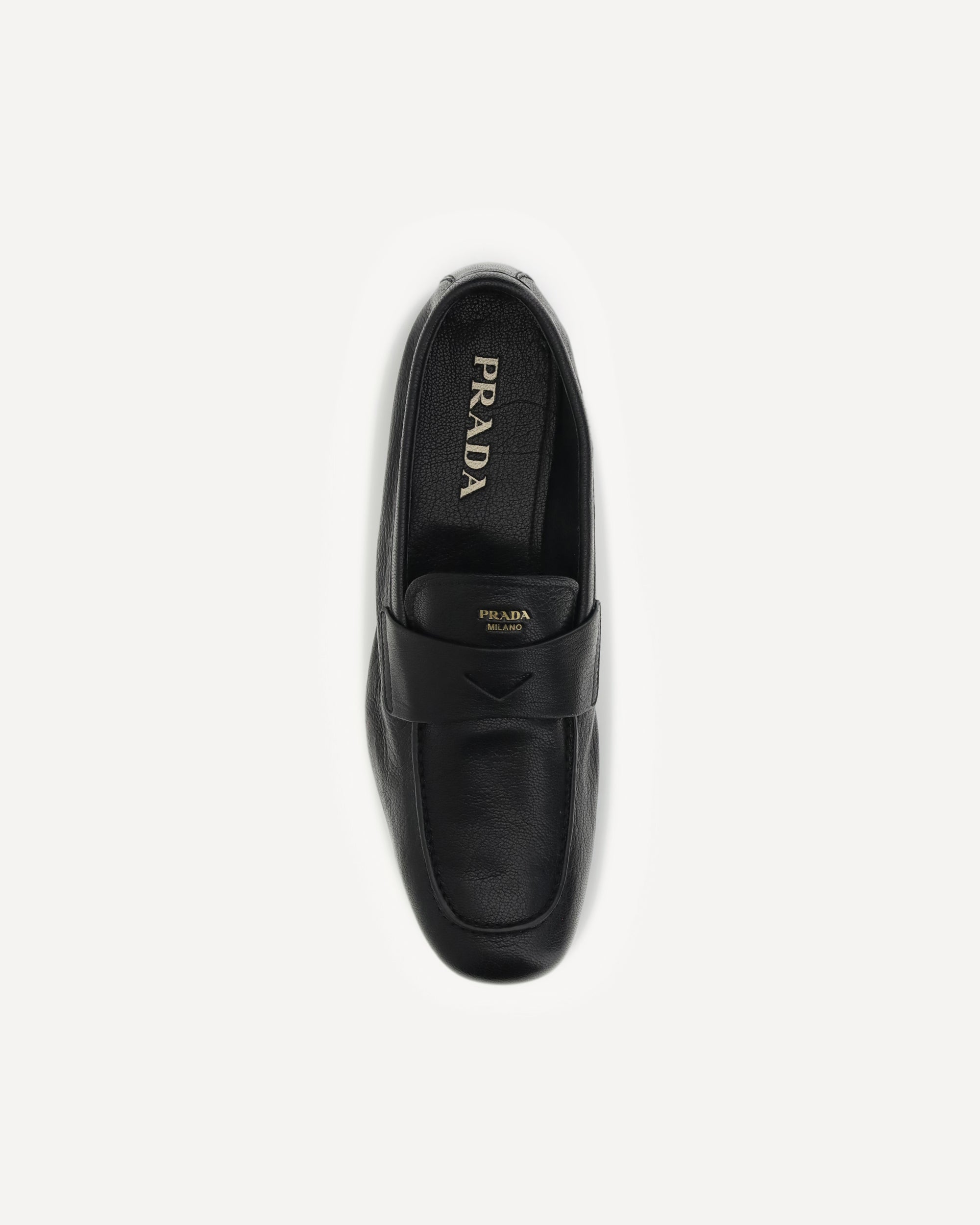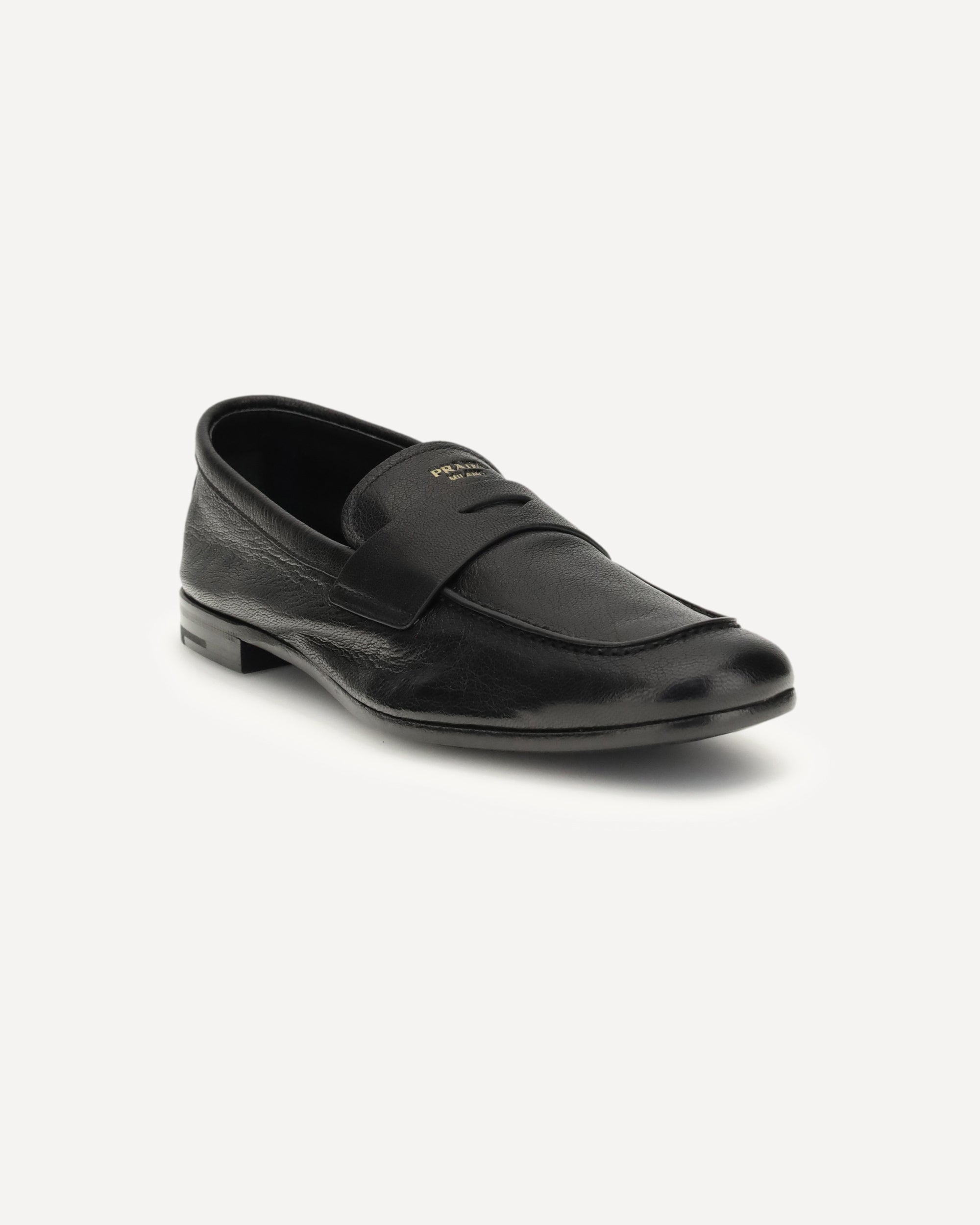 The leather Loafers by Prada are distinguished by pure and essential lines, embellished by the leather band and screen-printed logo on the tongue. The leather sole, with rubber sole and heel guard, ensures a perfect balance between elegance and everyday comfort.