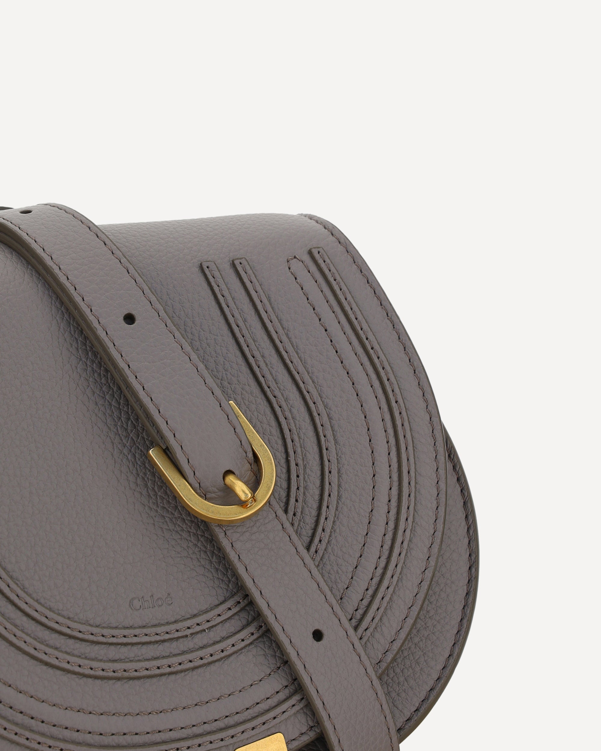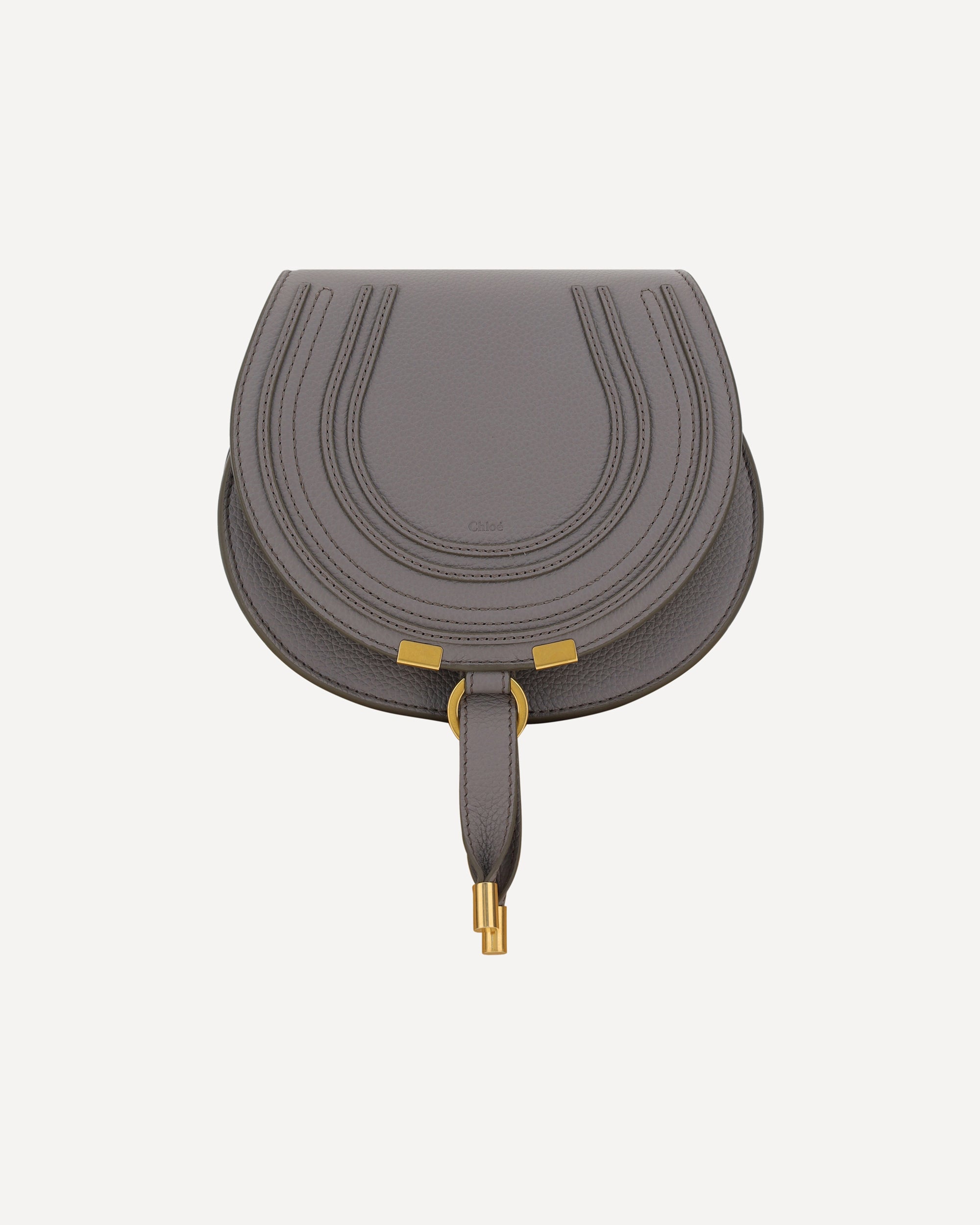 Calfskin Marcie Shoulder Bag by Chloé, iconic brand monogram press-stamped on front, adjustable flat shoulder strap, front flap closure with magnetic button, iconic leather tassel with antiqued brass charm embellishes closure, fabric-lined interior, interior compartment with welt pocket.