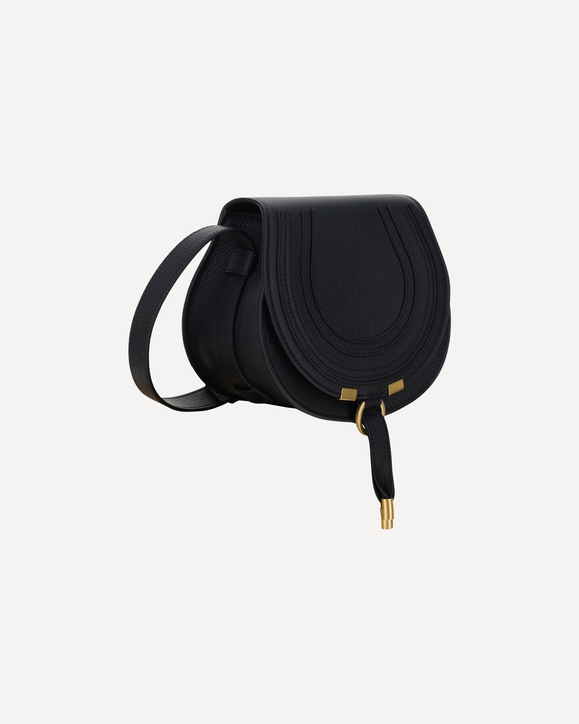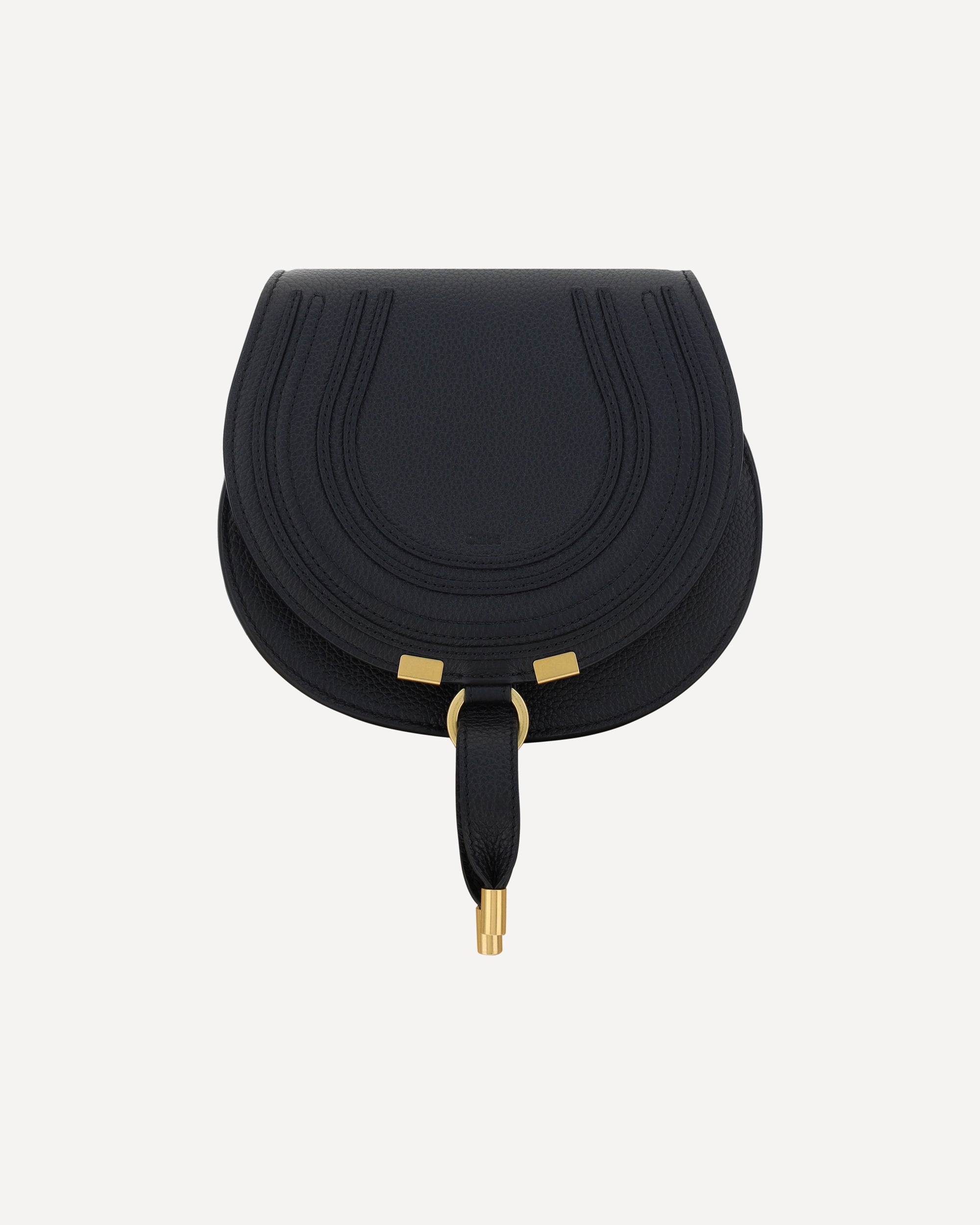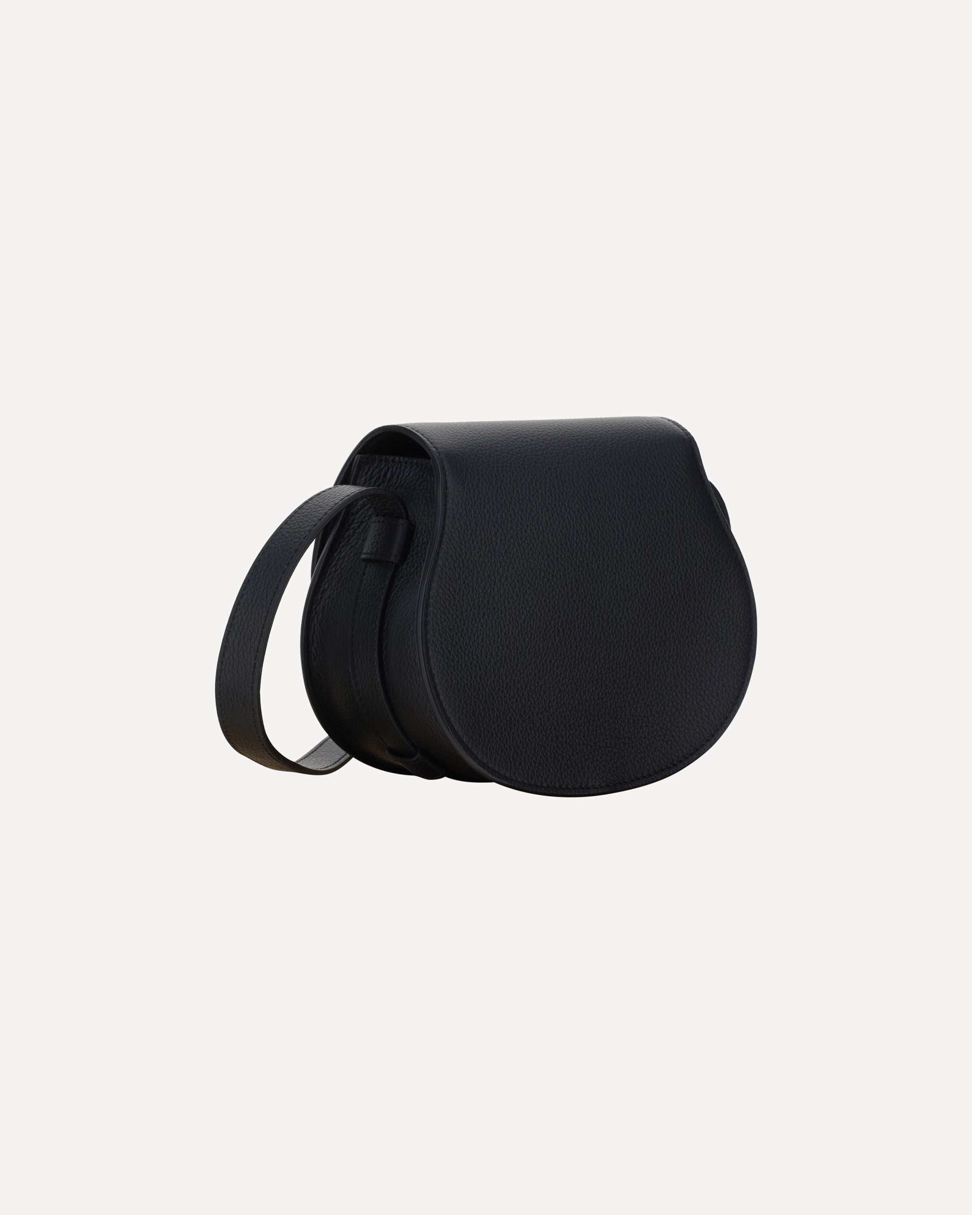 Calfskin Marcie Shoulder Bag by Chloé, iconic brand monogram press-stamped on front, adjustable flat shoulder strap, front flap closure with magnetic button, iconic leather tassel with antiqued brass charm embellishes closure, fabric-lined interior, interior compartment with welt pocket.