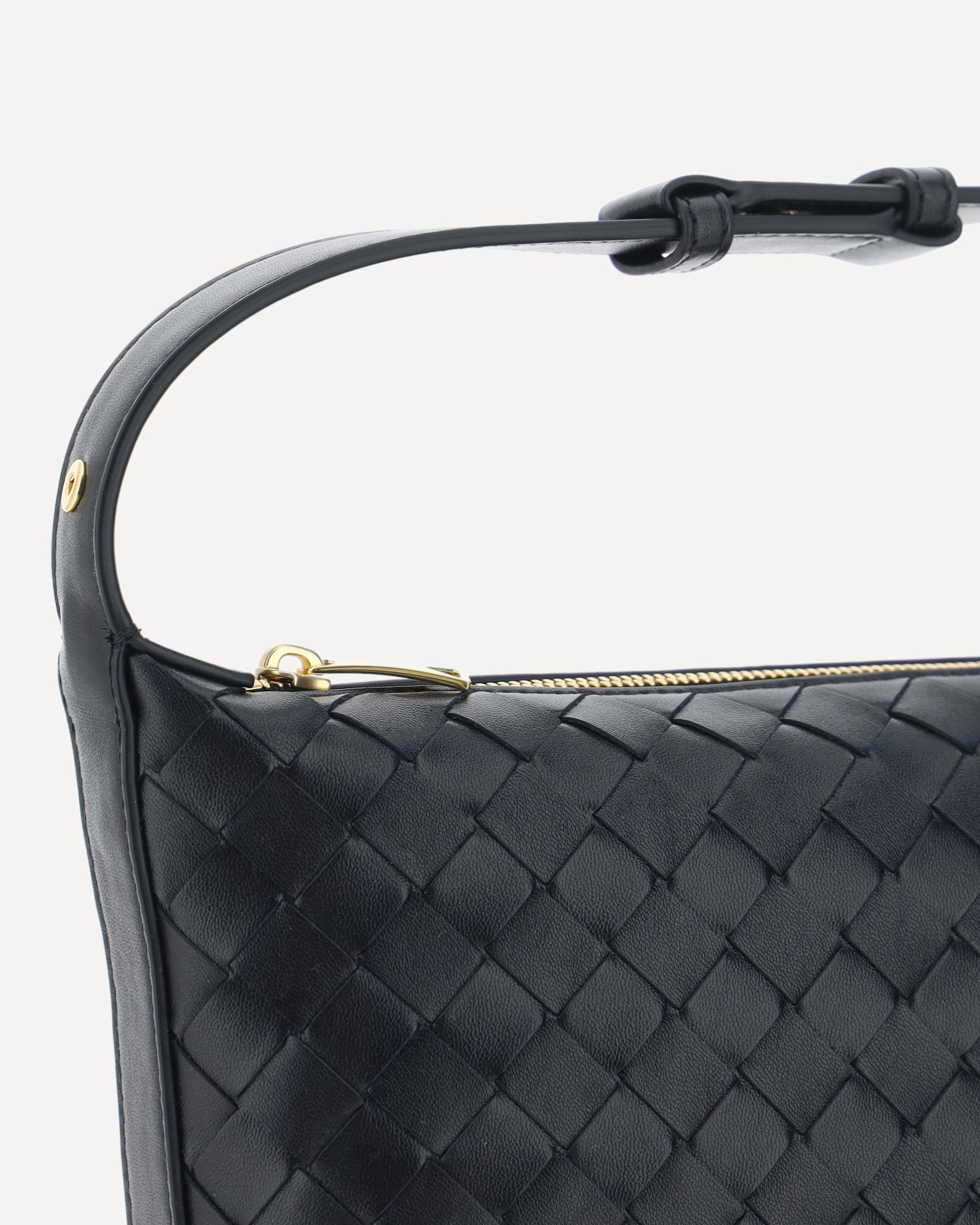 The Wallace Mini Leather Hand Bag by Bottega Veneta is a masterpiece of elegance and practicality. The flat handle, adjustable via snap buttons, allows you to easily adapt it to your needs. The zipper closure provides security, while the brand's iconic all-over repeated woven design lends a distinctive and refined character. With a single interior compartment and metal support feet attached to the base, this bag combines functionality and luxury in a compact and sophisticated format.